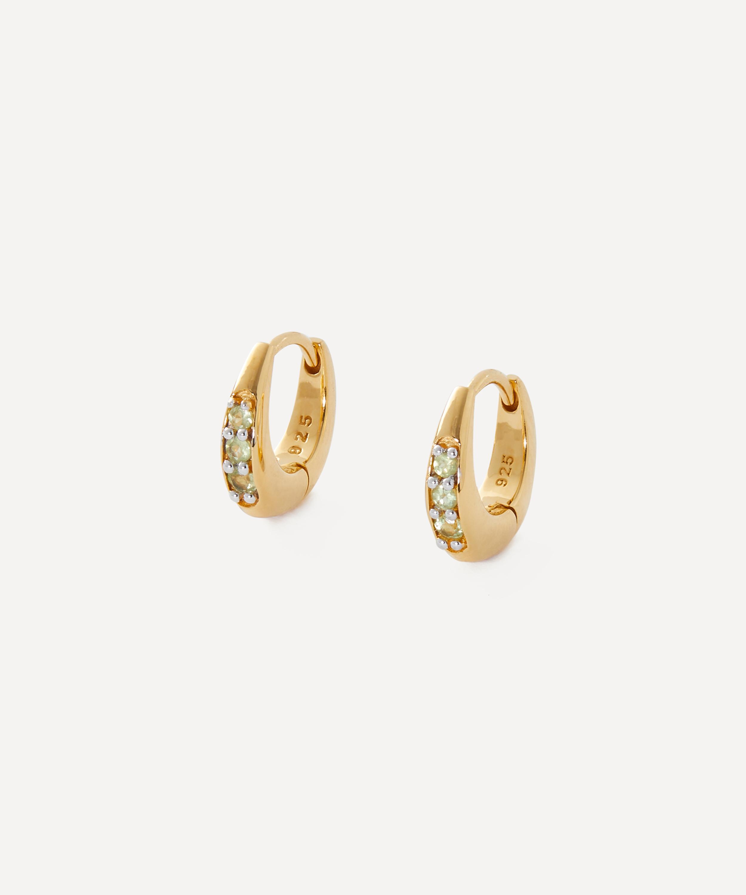 Crafted from 22ct gold-plated silver, each earring features a tapered, dome silhouette adorned with three graduating peridot stones – an August birthstone, thought to bring the wearer balance and clarity. Style them solo, or team with other pieces from the brand for a head-turning edit.
