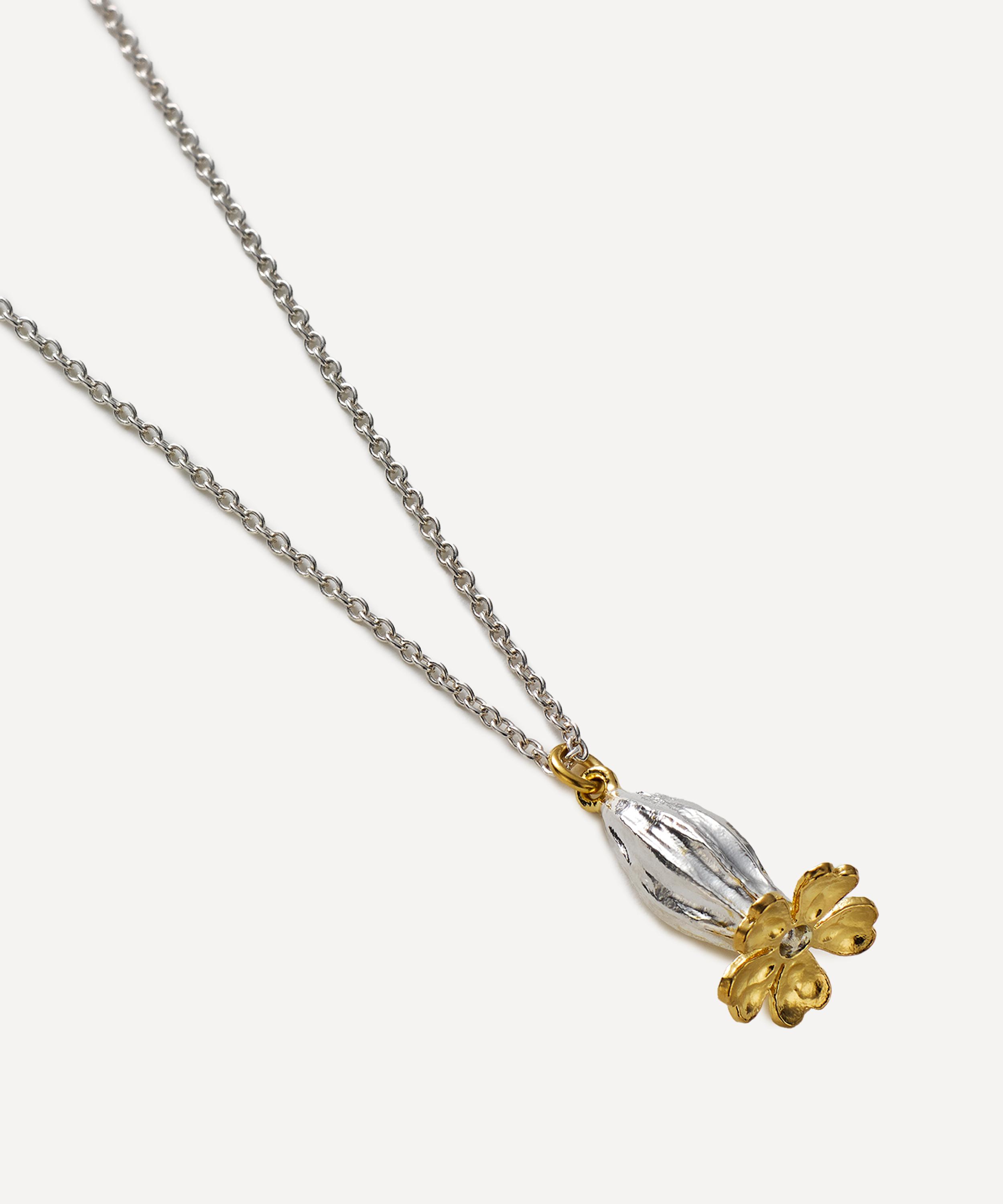 This pendant necklace from Alex Monroe perfectly captures the designer’s unwavering appreciation for natural motifs. Handcrafted in the brand's London studio, it features a fine link chain and a bell-shaped cowslip flower in sterling silver, forming a basal rosette of 22ct gold-plated leaves. Pair it with other accompanying pieces from the brand for a wearable representation of the elegance and delicacy of the natural world.