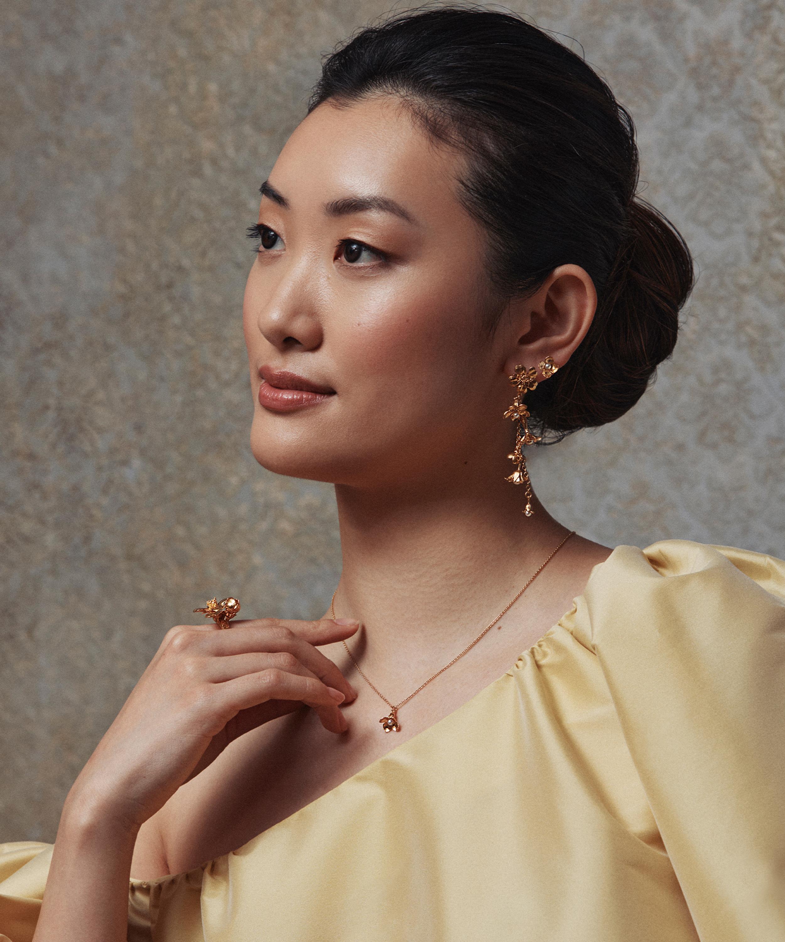Alex Monroe’s jewellery is known for its wonderfully natural touch – its feather necklace looks like it was plucked out of the wind and sealed with gold – but the English designer and his studio bring something else to their craft too: imagination. It’s what makes their rose earrings so quietly different to others, and what gives their now-iconic bumble motif its hints of movement. And it’s why we’ve been one of Alex’s longest-standing partners.