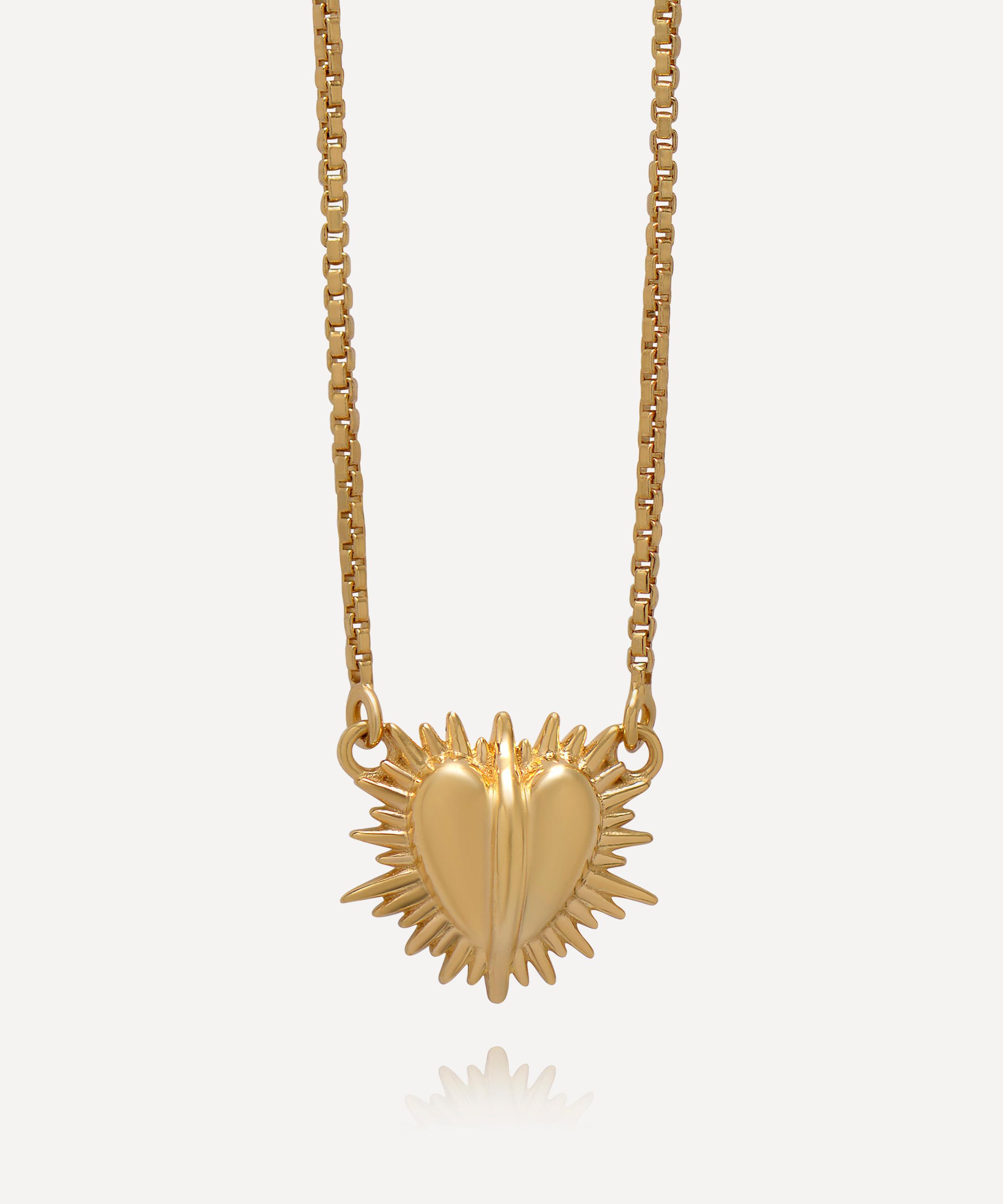 The Electric Love Mini Heart pendant necklace is part of Rachel Jackson’s Electric Goddess collection – a mesmerising compilation of glowing, Art Deco-inspired sun motifs. Crafted from 22ct gold-plated silver, this necklace features a classic rolo chain adorned with a bursting heart pendant. Style it with the matching bracelet, or team it with other pieces from the brand for a head-turning curation.