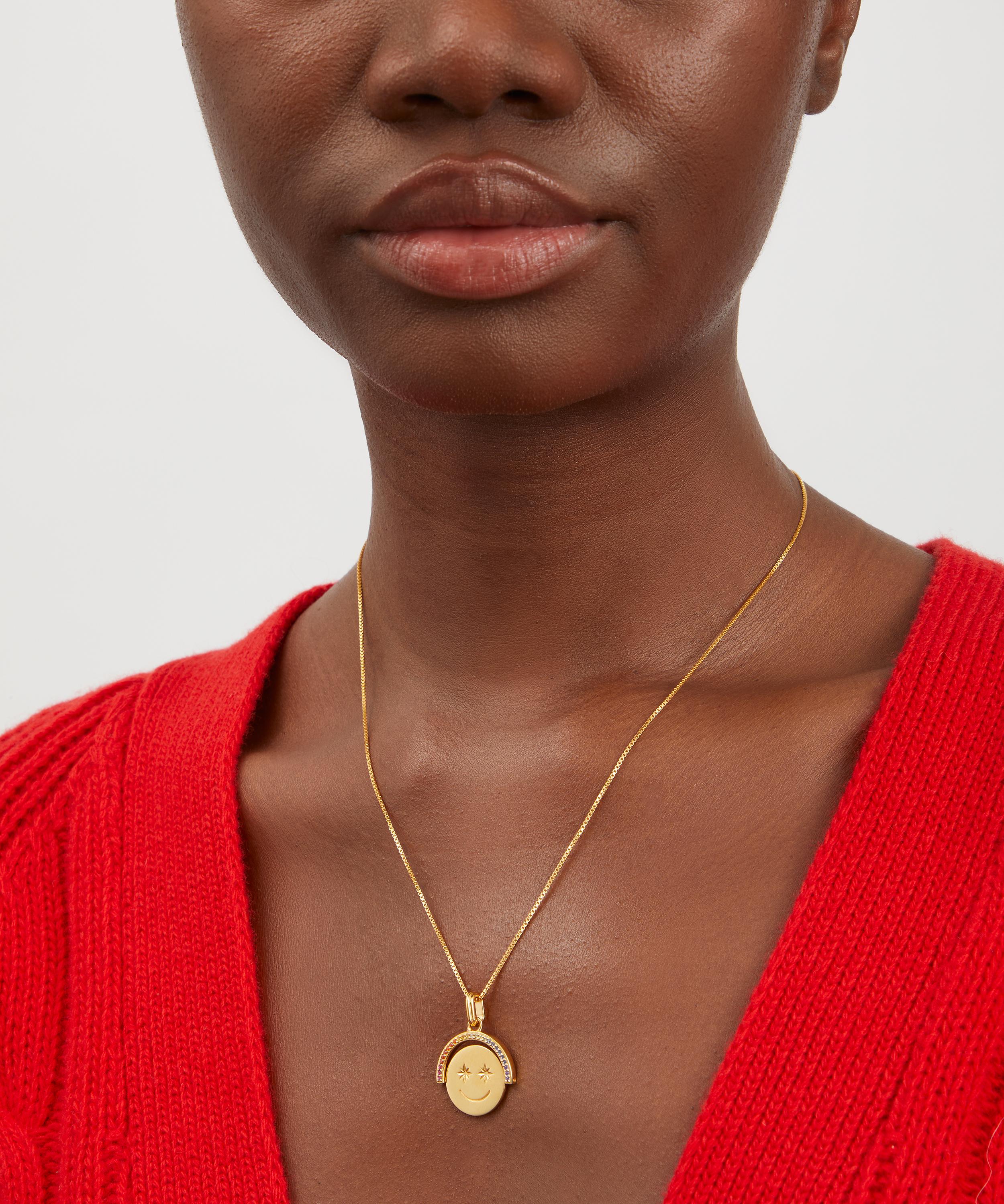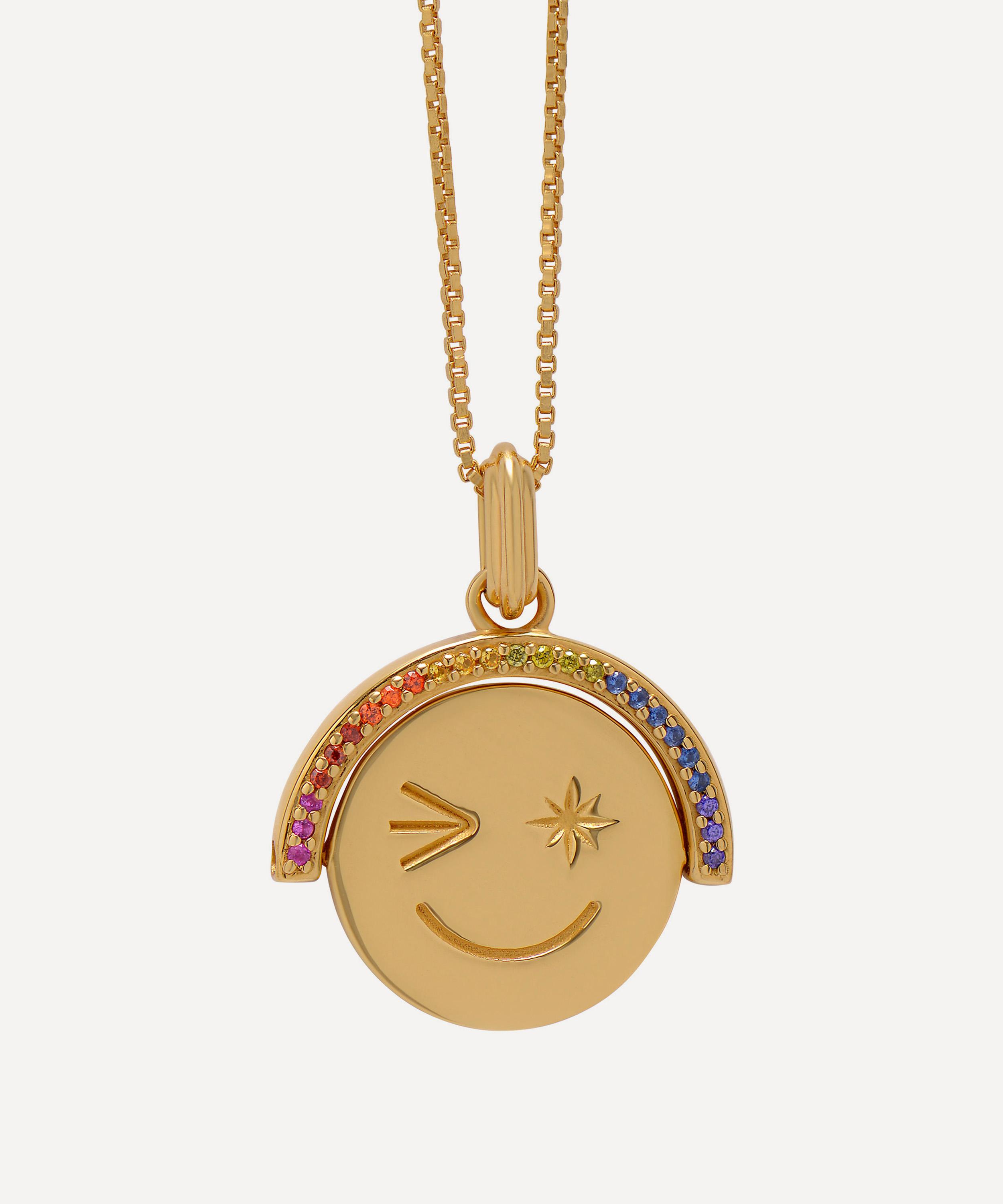 Boasting a light-hearted addition to your collection, the Rainbow Happy Face spinning pendant necklace from Rachel Jackson instantly brings an element of fun to your edit. Crafted from 22ct gold-plated silver, this necklace features a spinning happy face pendant adorned with a cubic zirconia-set eye and assorted rainbow gemstones. Try layering yours with other delicately playful pieces for a contemporary approach.