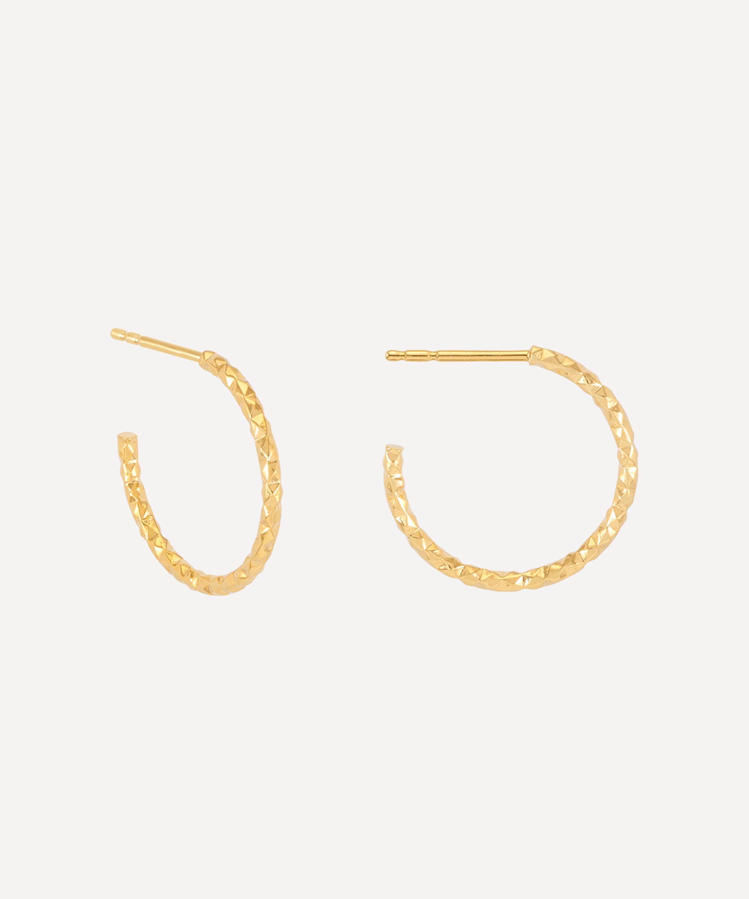 Take your outfit to the next level with these hoop earrings from Rachel Jackson. Crafted from 22ct gold-plated silver, each earring features a half hoop adorned with faceted detailing, catching the light from every angle. Style them solo or stack with other earrings.