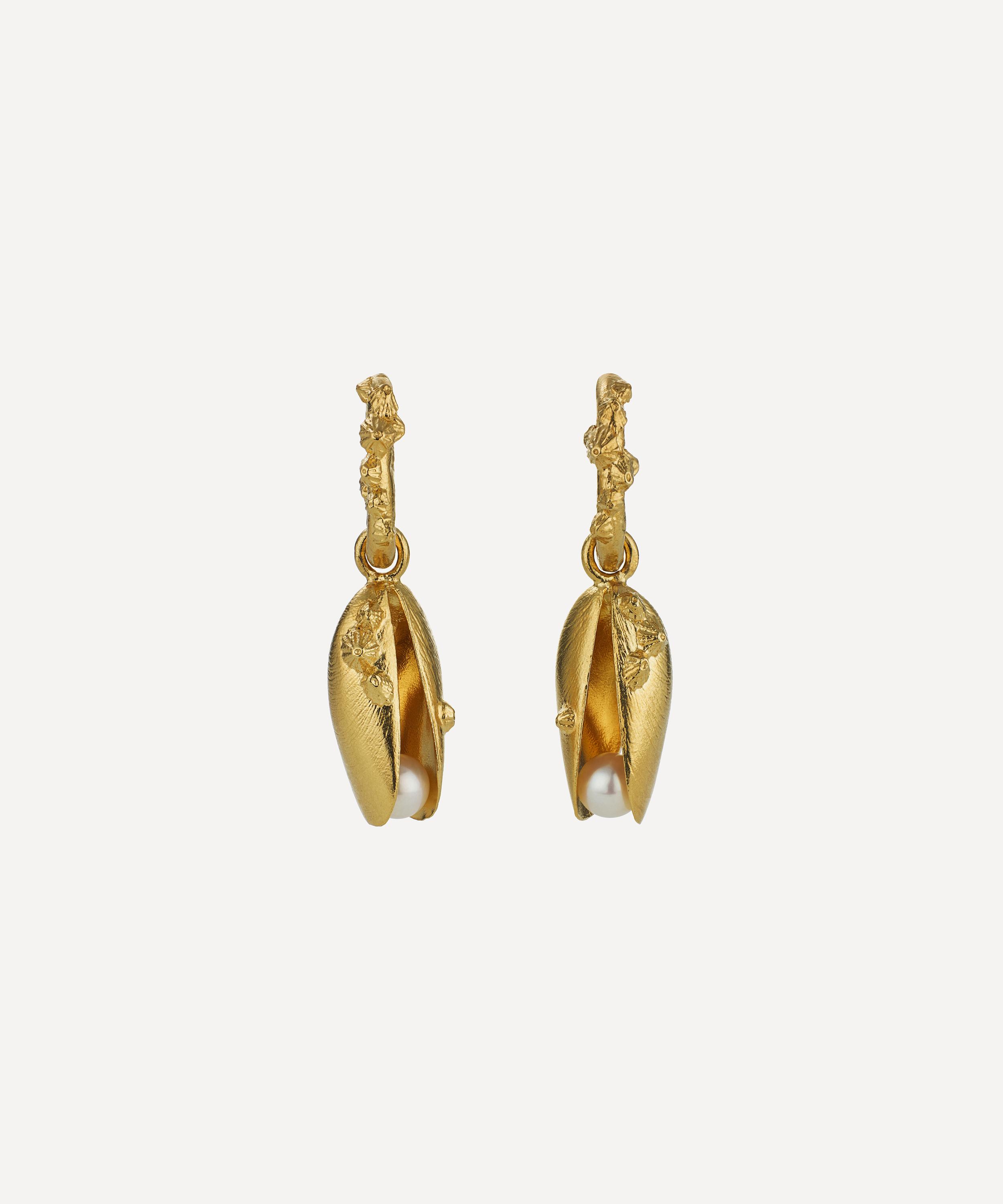 Inspired by nature and the waterways of Great Britain, these Statement Mussel & Pearl Drop Earrings from Alex Monroe perfectly capture the designer’s use of charming motifs. Handcrafted in London from 22ct gold-plated sterling silver in the form of a mussel shell, each earring houses a freshwater pearl that moves subtly with the wearer. Style them solo or mix and match with other jewellery from the brand's collections.