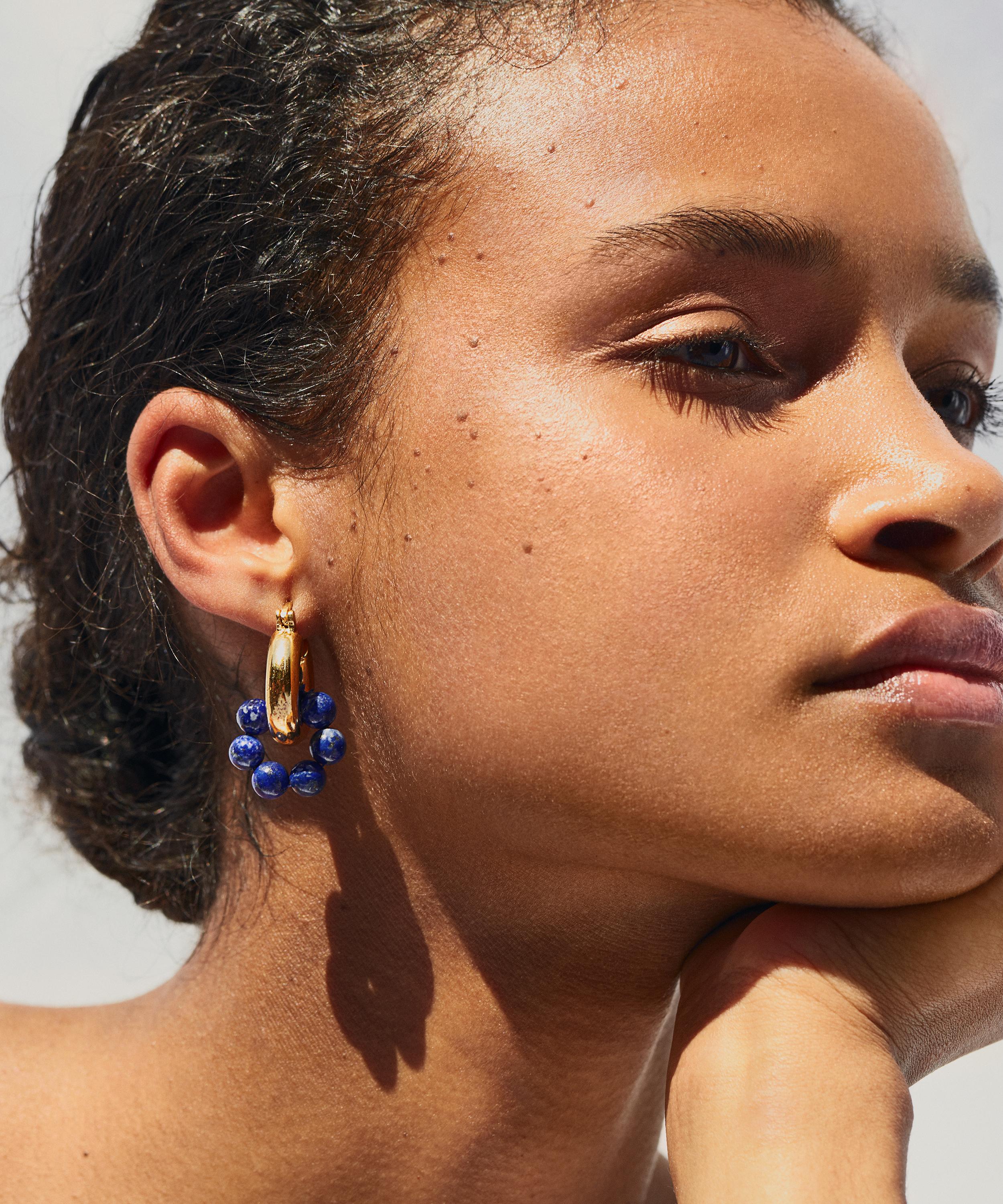 22ct Gold-Plated Sura Lapis Lazuli Beaded Hoop Earrings