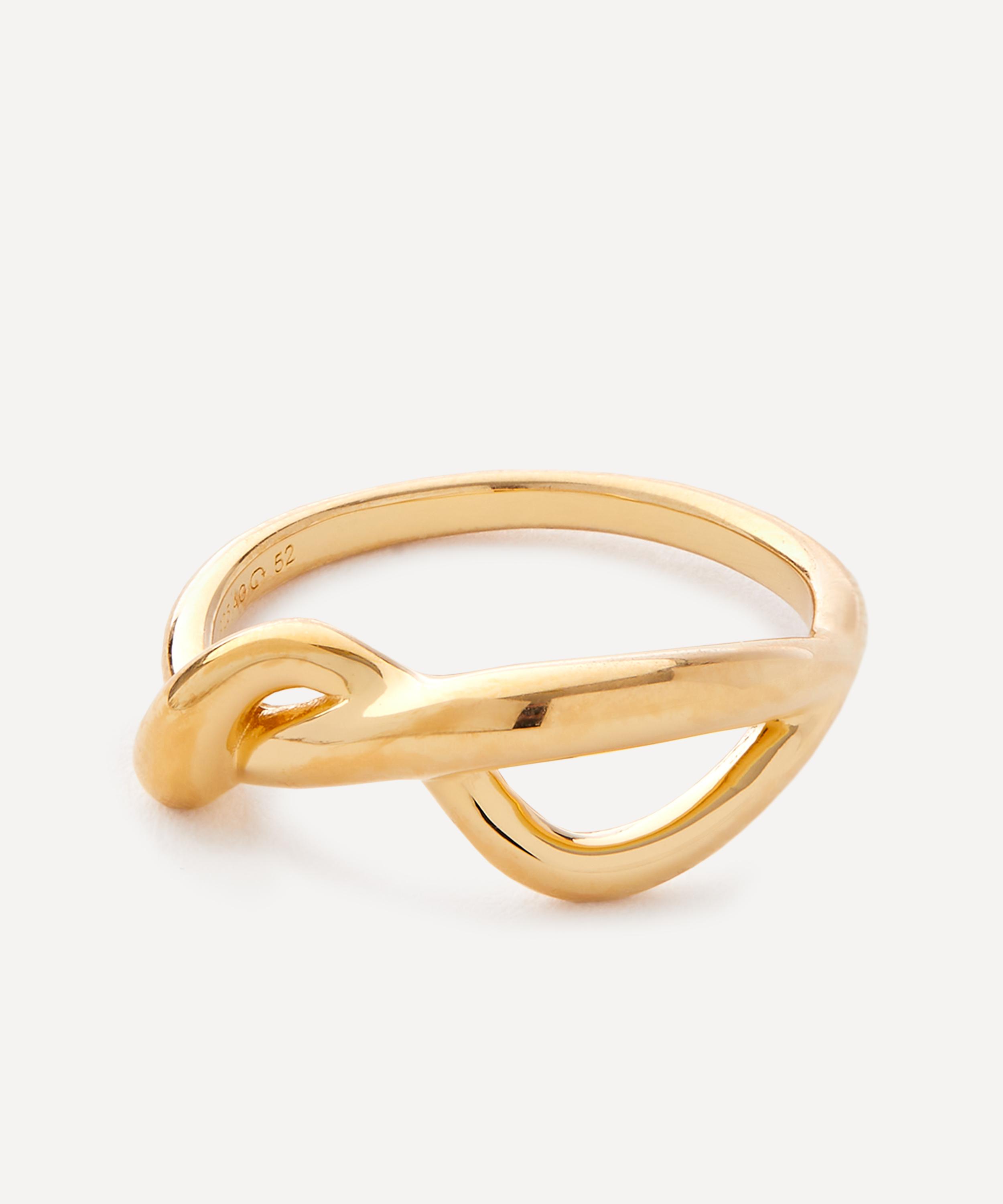 Maria Black's Twisted Deceiver ring is endlessly versatile, offering a seamless addition to any ring stack. Crafted from 22ct gold-plated silver, it’s characterised by a curved design and split in the middle, allowing the ring to flow around your finger.