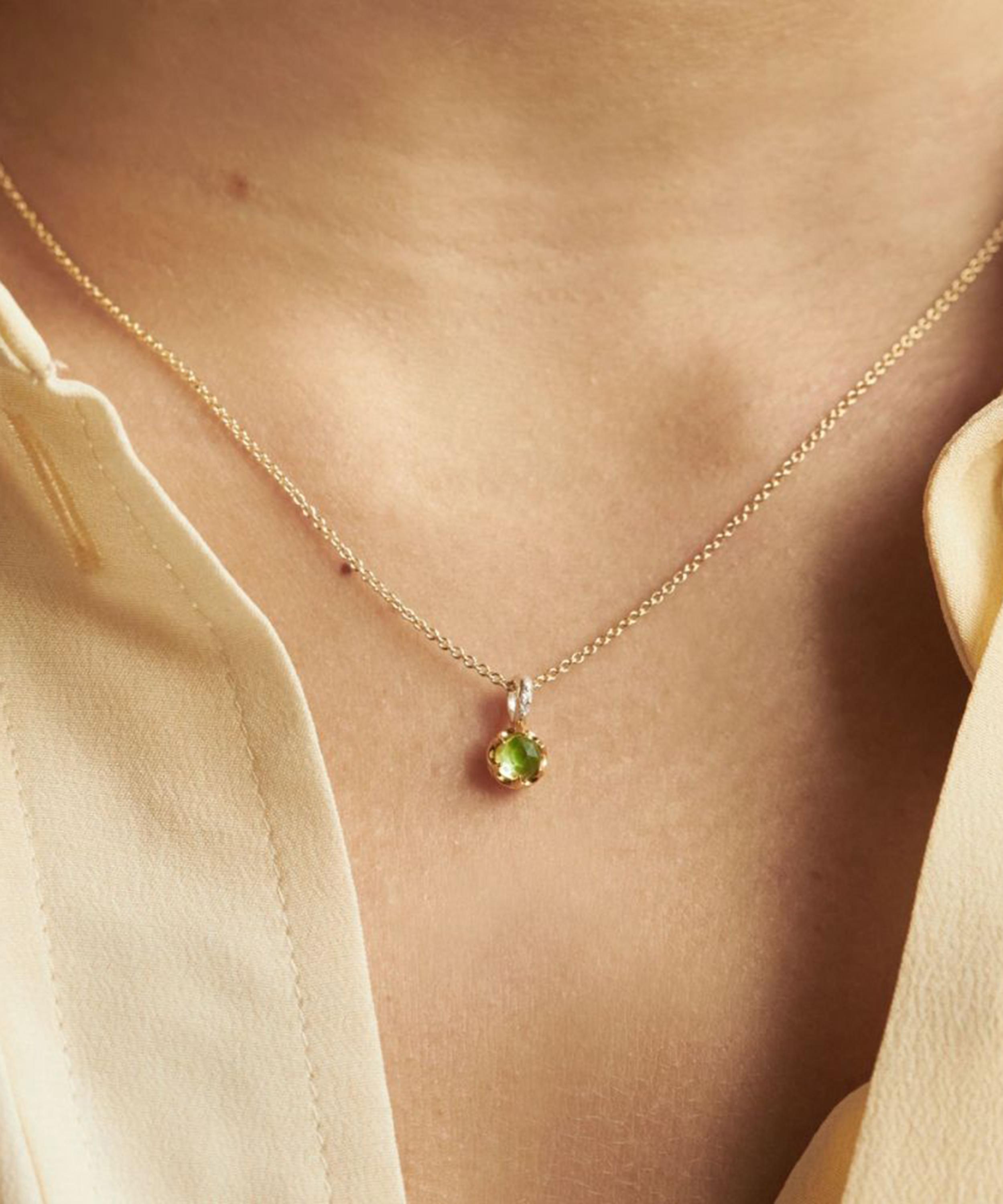 Designed to travel through life with you, Dinny Hall’s birthstone pendant necklace will add a sweet personal touch to your edit. This beautiful piece features a rose-cut peridot mounted in a silver orb, adorned with a scalloped setting plated in 22ct gold vermeil. Suspended from a fine trace chain in 9ct gold, it’s perfect to commemorate a special birthday either for yourself or as a gift to others.