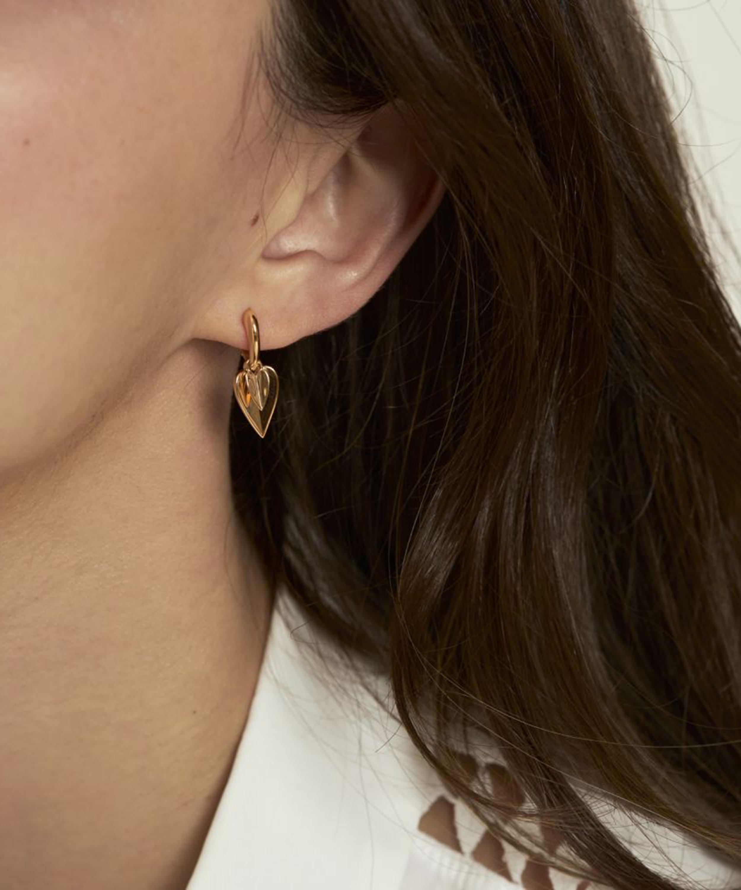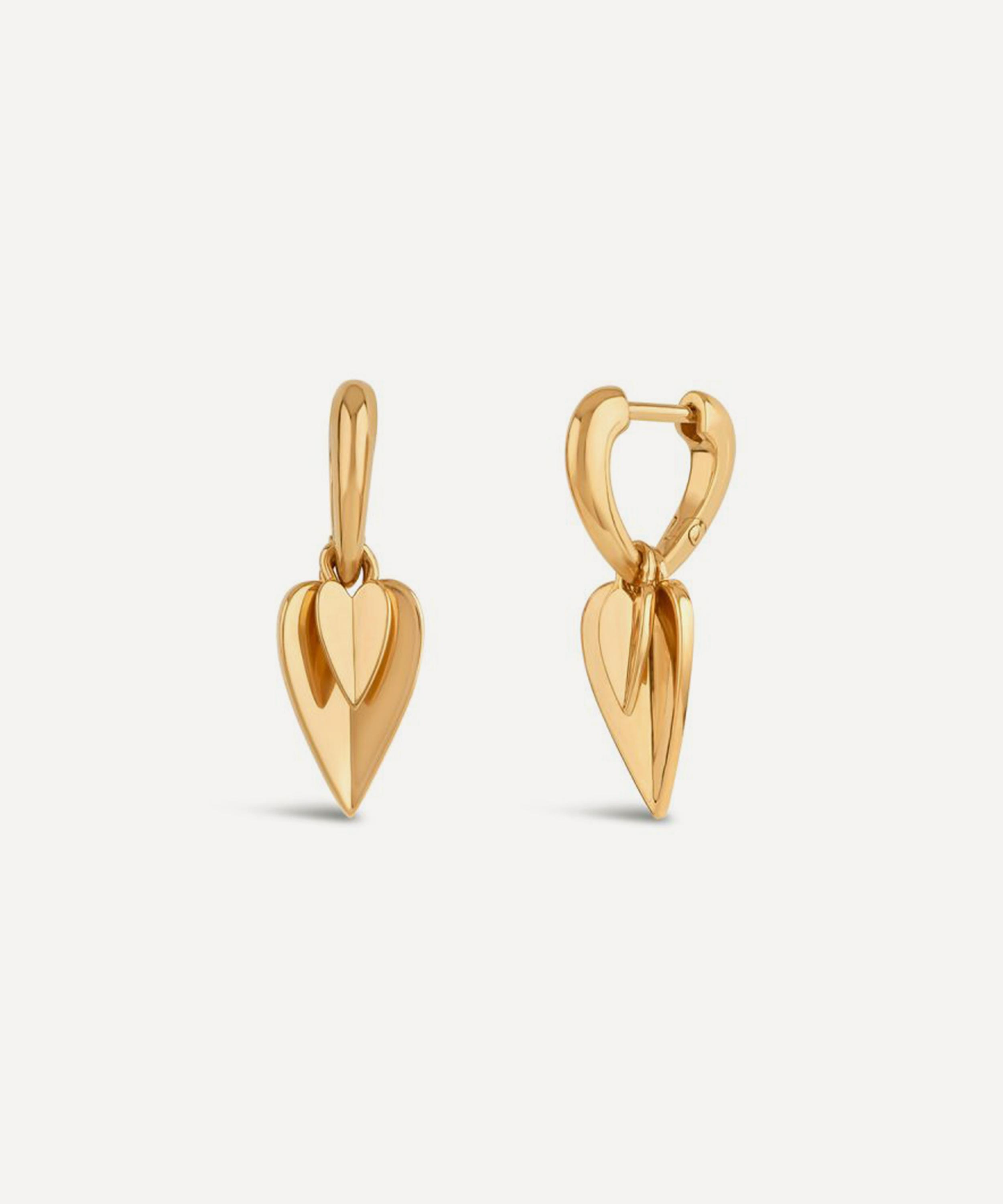 Crafted from sterling silver plated in 22ct gold vermeil, this pair combines sophisticated luxury with playful design, featuring a heart-shaped hoop set with two fluttering heart drops that allow the earrings to sway gracefully. Made to be treasured and cherished for generations to come, they are ideal for both casual and formal looks – try pairing them with other pieces from the collection for a coordinated finish.