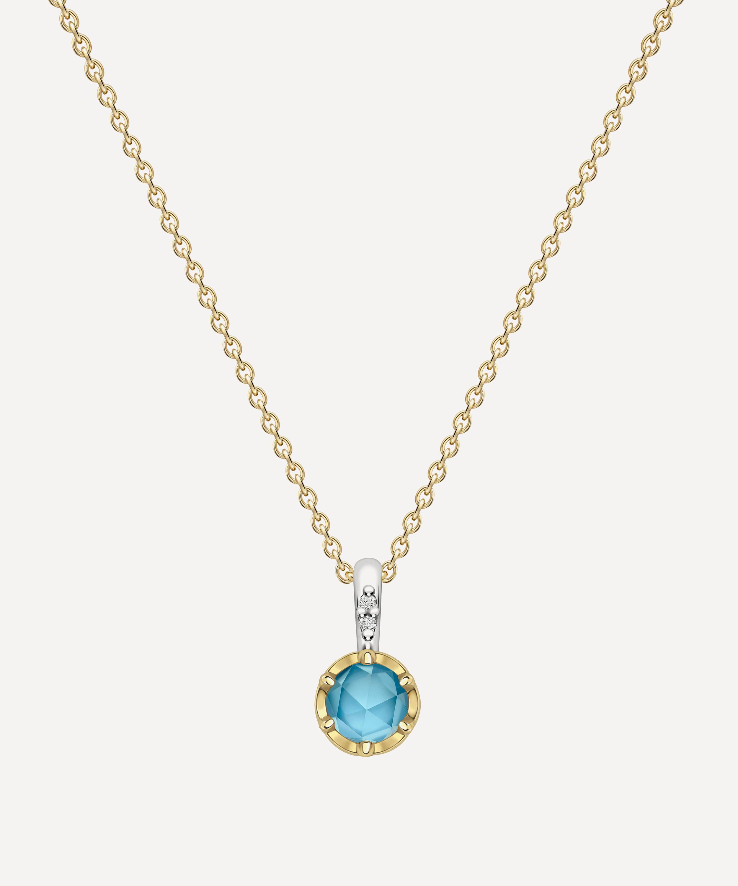 22ct Gold-Plated Vermeil Silver March Aquamarine Birthstone Pendant Necklace