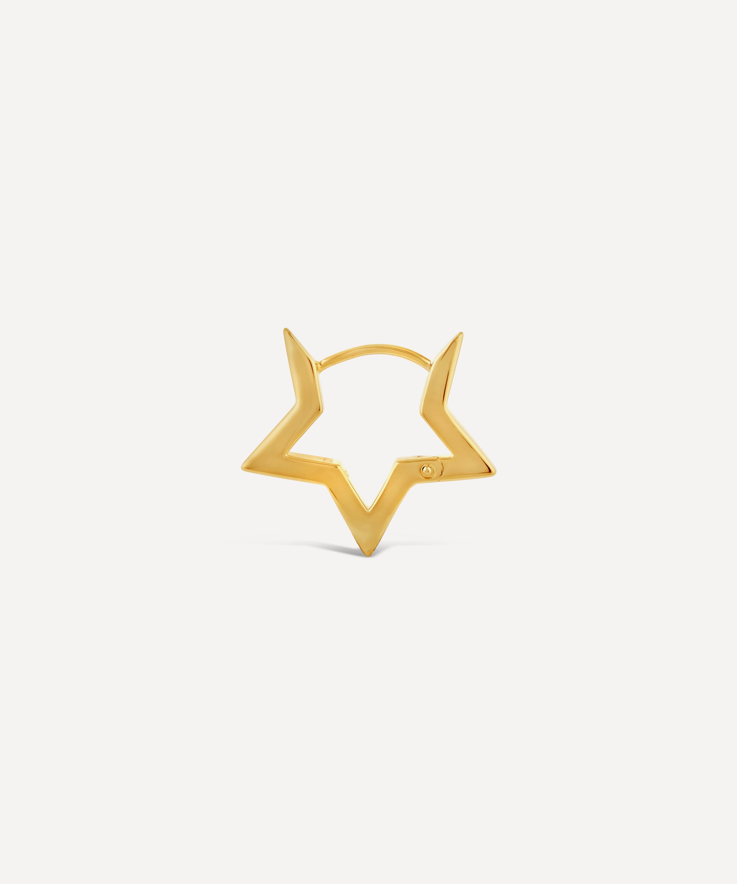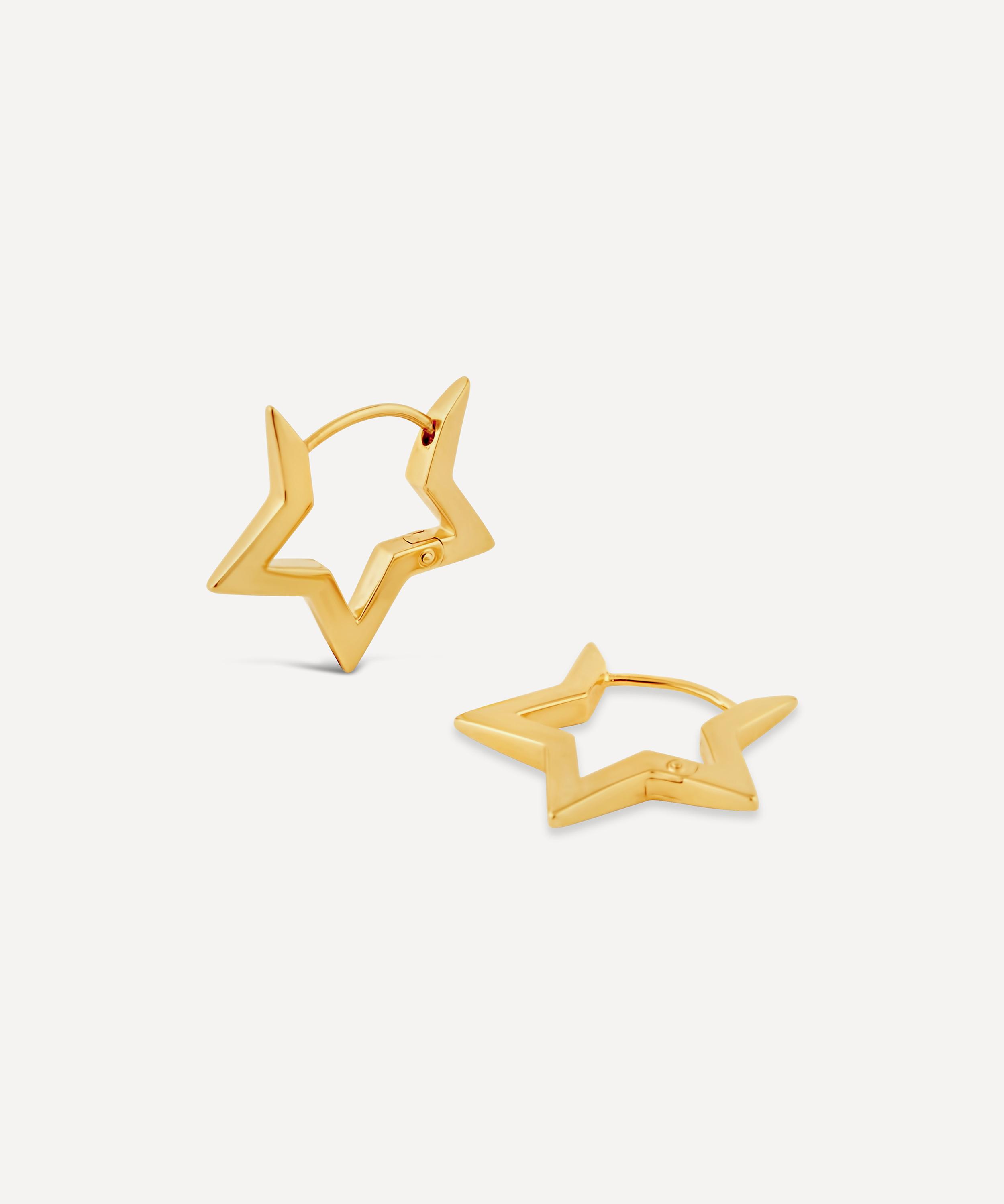 These hoop earrings are part of Dinny Hall’s Stargazer collection – a cosmic series inspired by teenage hopes and dreams, and the glamorous shape of the star. Crafted in sterling silver plated in 22ct gold vermeil, each earring features five-pointed star hoop in a high-polished finish. Ideal for stacking, pair these earrings with additional studs and hoops to achieve a trend-led, layered effect.