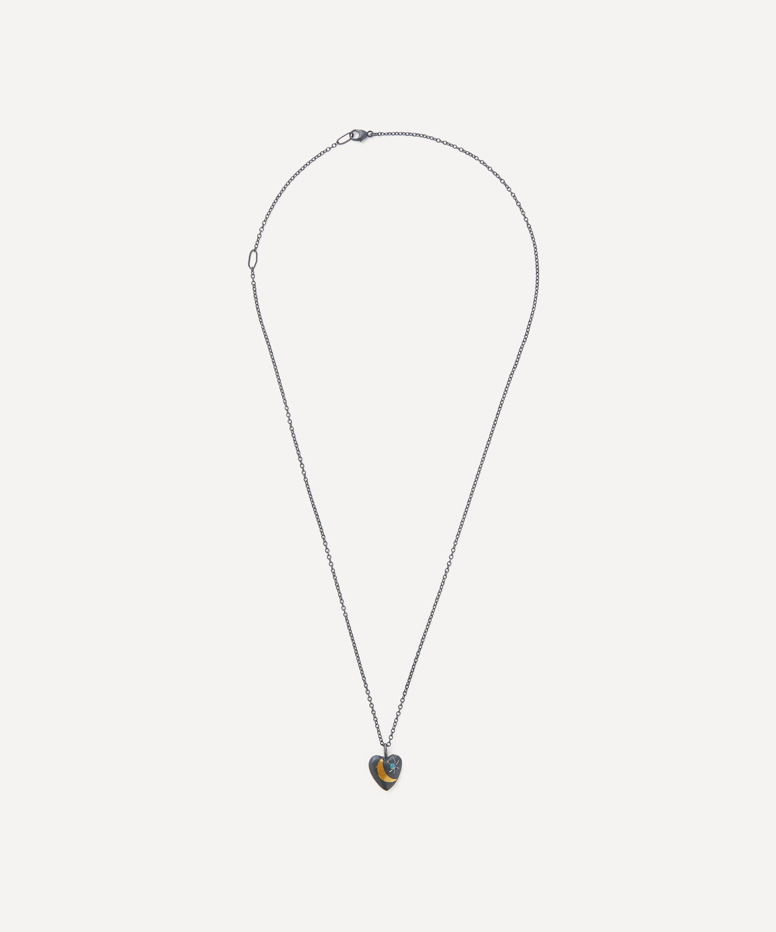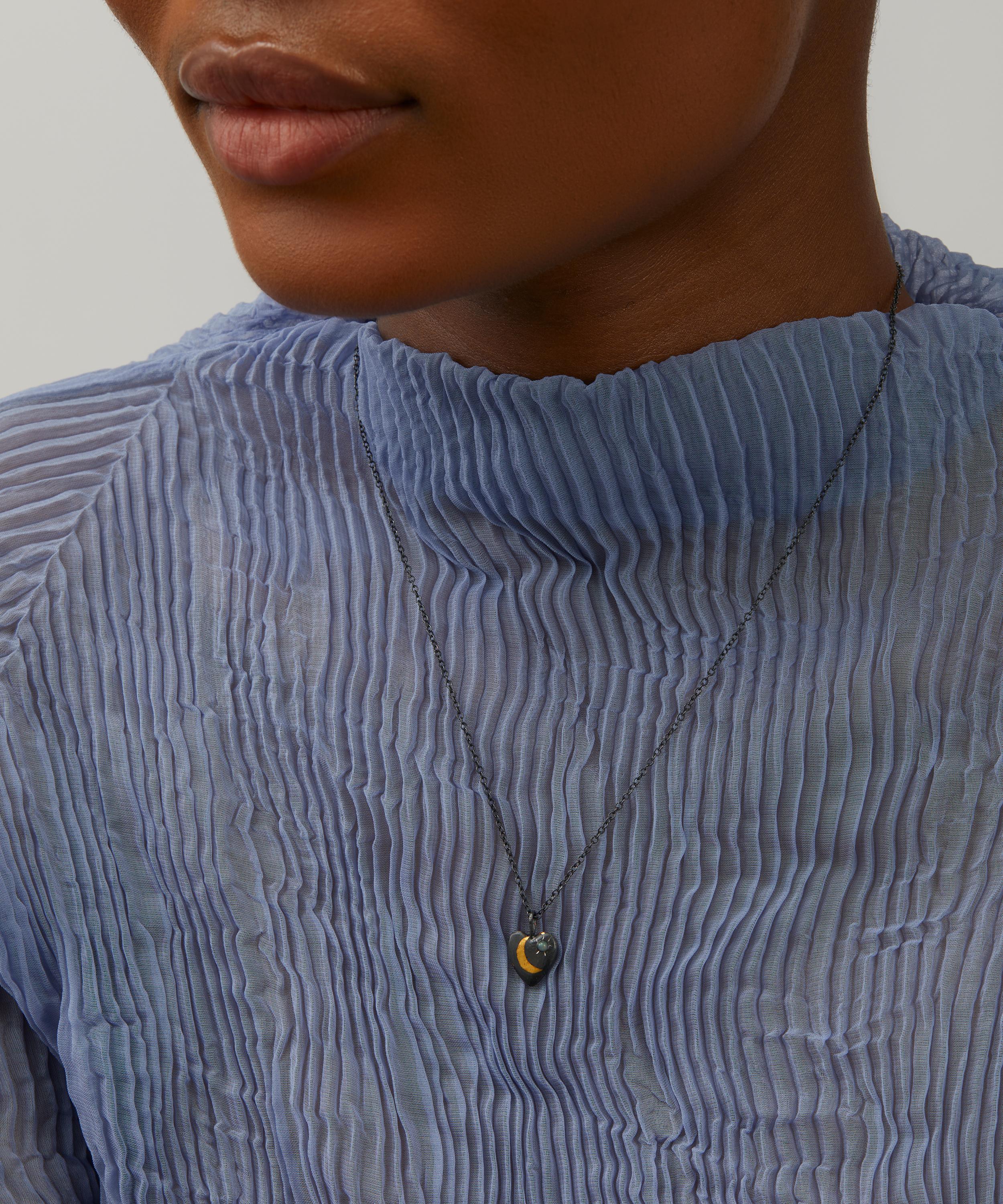 Each piece from Acanthus carries a sense of history, influenced by medieval and ancient objects that have been reimagined into timeless jewels. This necklace features a heart-shaped pendant with a reversable design – one side is cast in oxidised silver with a 24ct gold crescent moon and opal, whilst the other side is cast in 24ct gold with an oxidised silver crescent moon and opal accent. Try pairing it with other pieces from the brand for a truly talismanic finish.