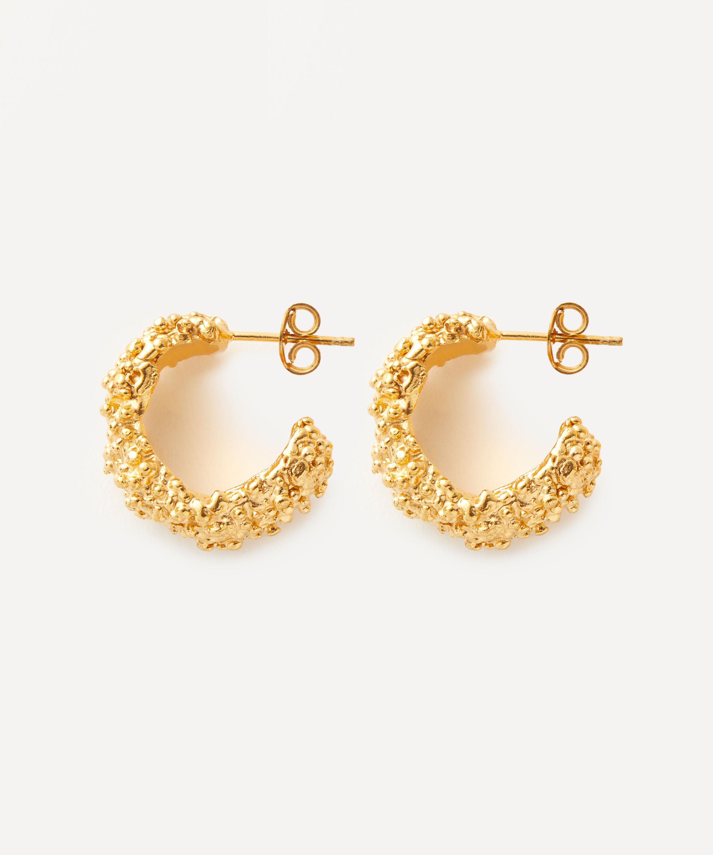 The Rocky Road hoop earrings are a signature design from Alighieri - the London-based jewellery brand named after the renowned Italian poet, Dante. Crafted from 24ct gold-plated silver, each earring features a half hoop embellished with granulated ‘rocky’ detailing – a symbol of overcoming life’s sometimes rocky path. This modern heirloom is an ultra-wearable statement piece that can be passed from generation to generation.