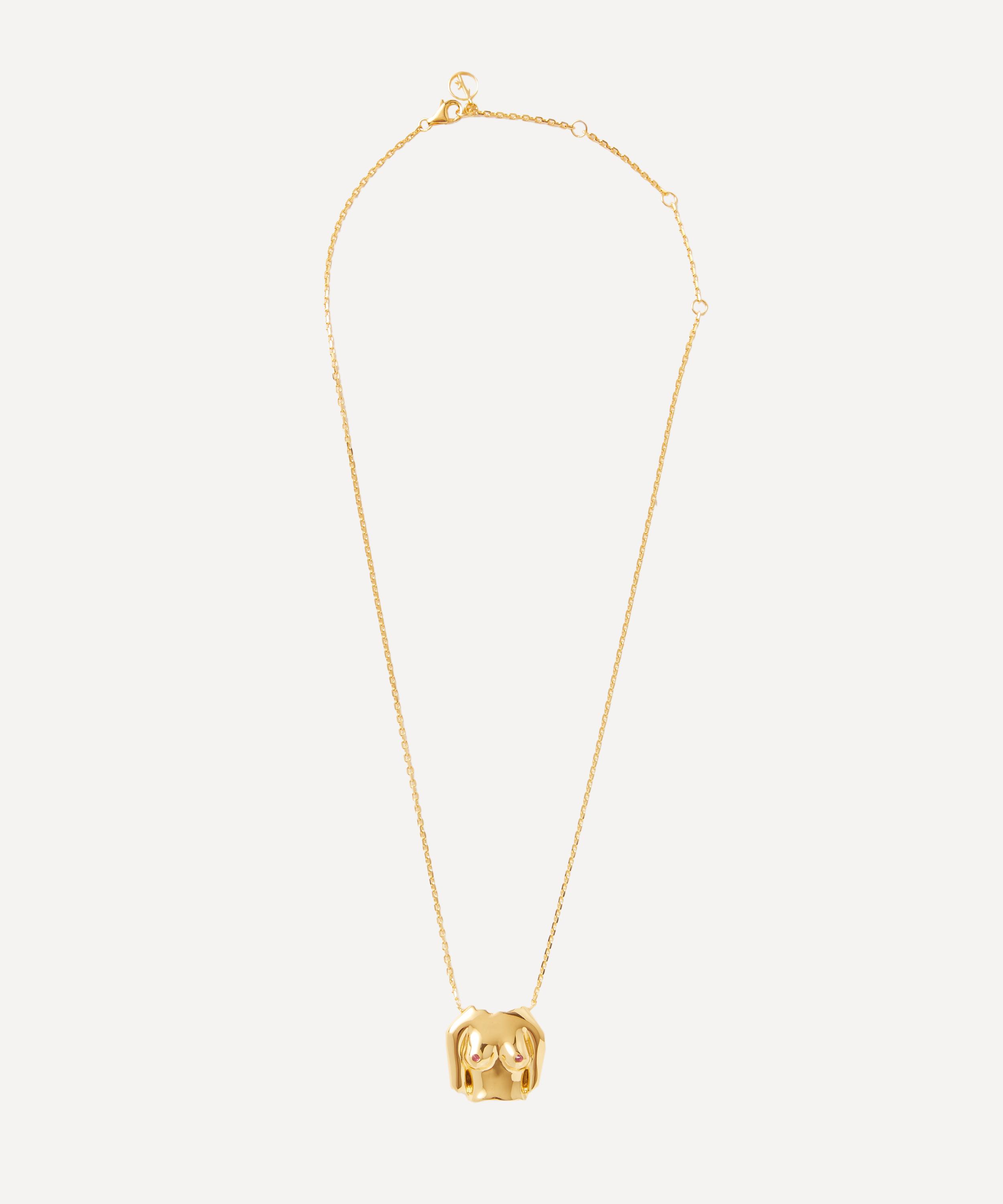 Anissa Kermiche 24ct Gold-Plated Rubies Boobies Pendant Necklace