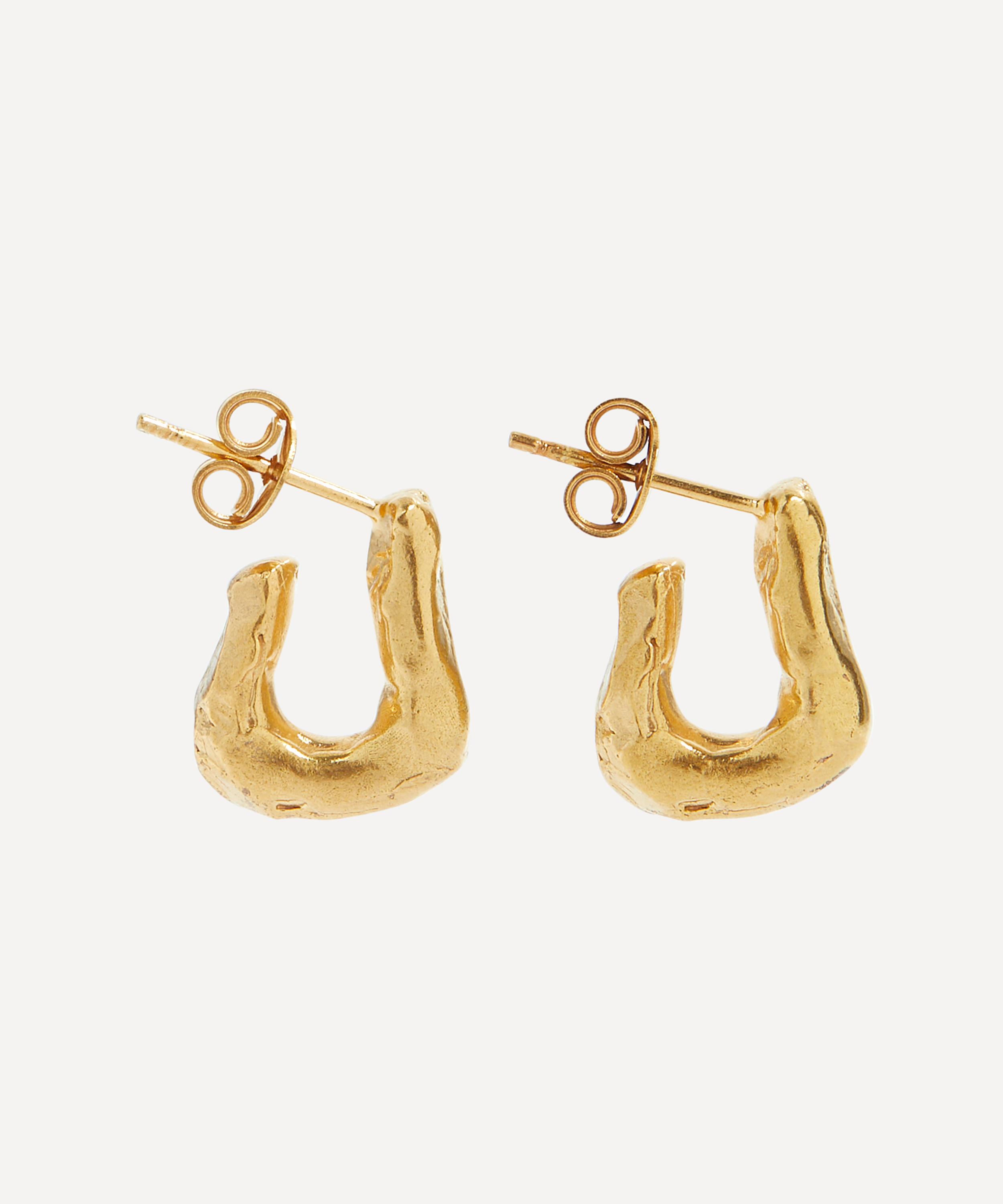 The Mini Link of Wanderlust hoop earrings are a signature design from Alighieri - the London-based jewellery brand named after the renowned Italian poet, Dante. Crafted from 24ct gold-plated bronze, each earring features an organic silhouette with a textured finish. Complete with classic post backings, style them alone, or layer with additional mix-sized hoops from the brand for a graduating curation.