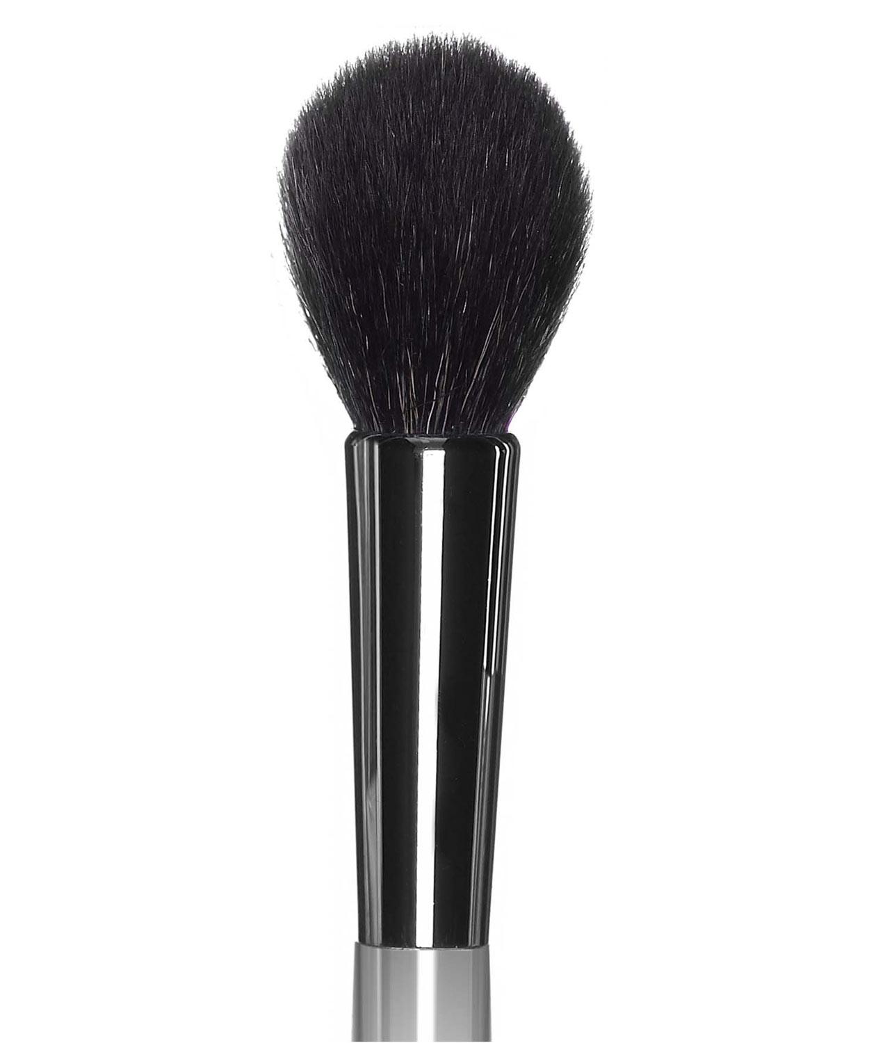 Blending brush shaped to precisely apply and blend bronzer, blush and highlighter for technically perfect results.