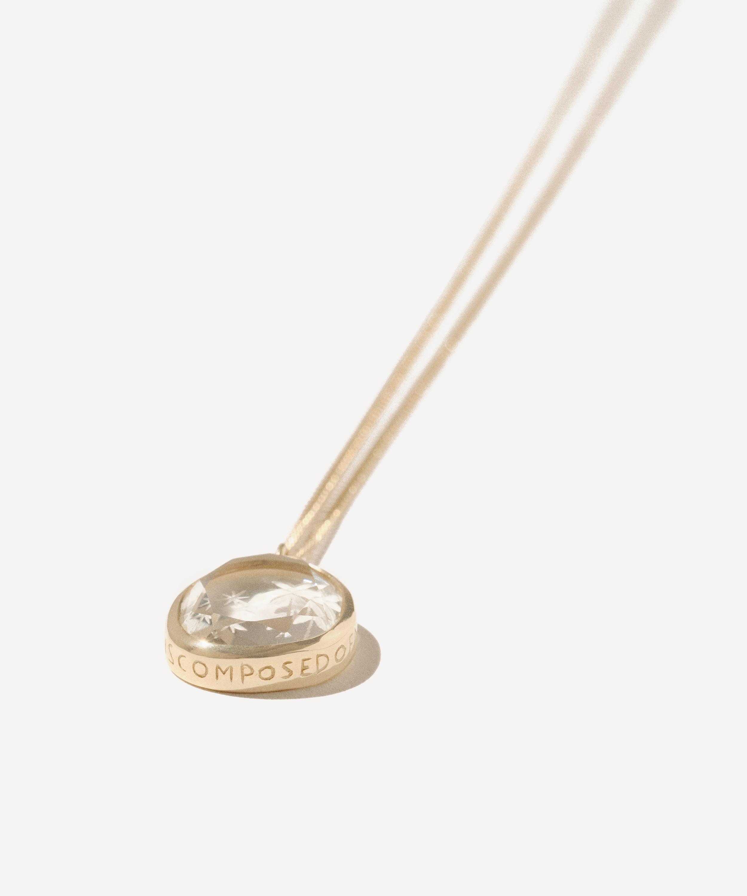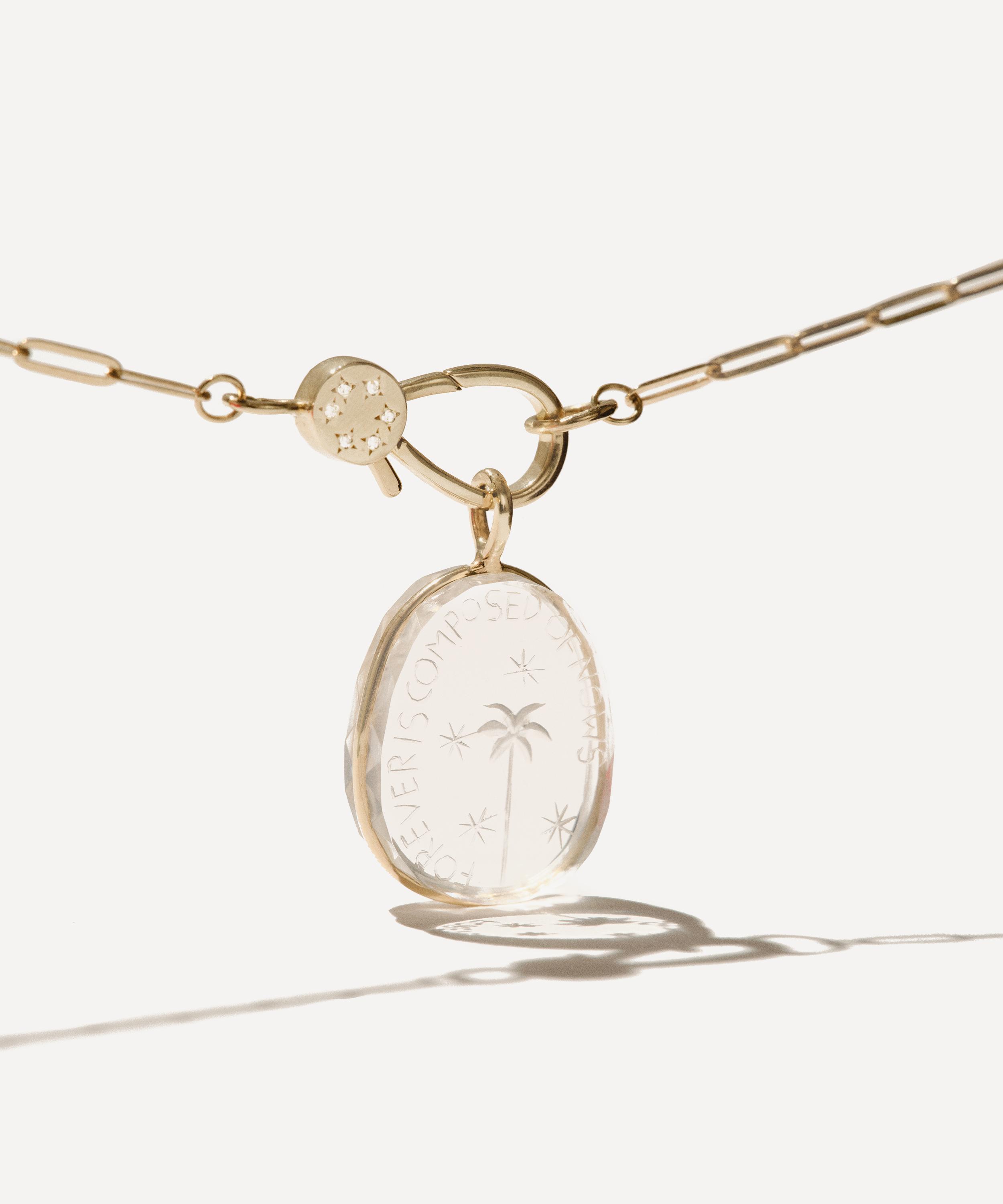 Refine your jewellery collection and infuse any outfit with the subtle elegance emanating from Pascale Monvoisin’s Alba N°2 pendant necklace. Crafted from 9ct gold, it features a classic paperclip chain and rock crystal medallion pendant, intricately hand-engraved, bearing the lettering ‘ Forever is composed of nows’. Wear this precious talisman alone for statement appeal or stack yours with other gold necklaces from the designer's extensive collections.