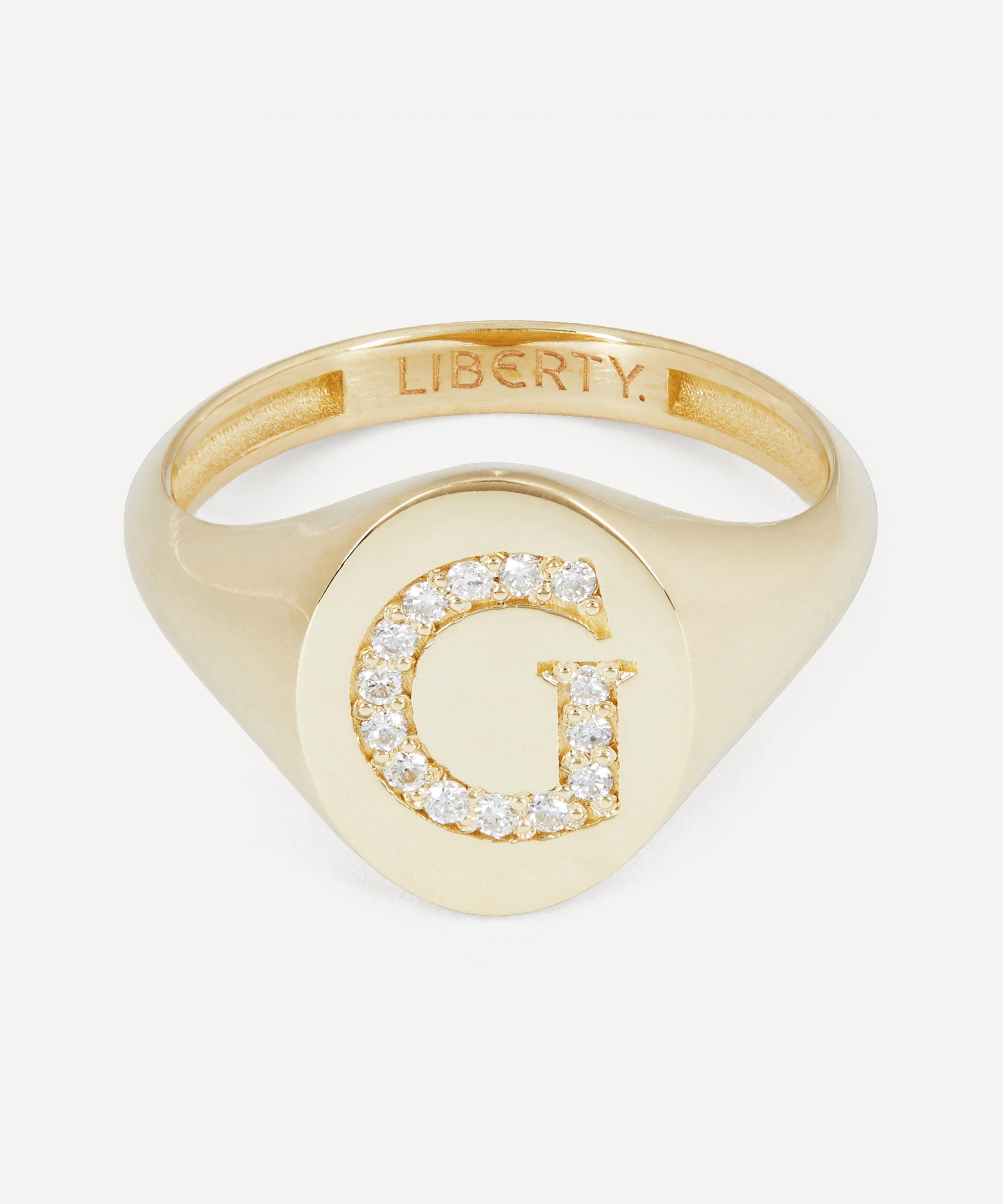 9ct Gold and Diamond Initial Liberty Signet Ring - G