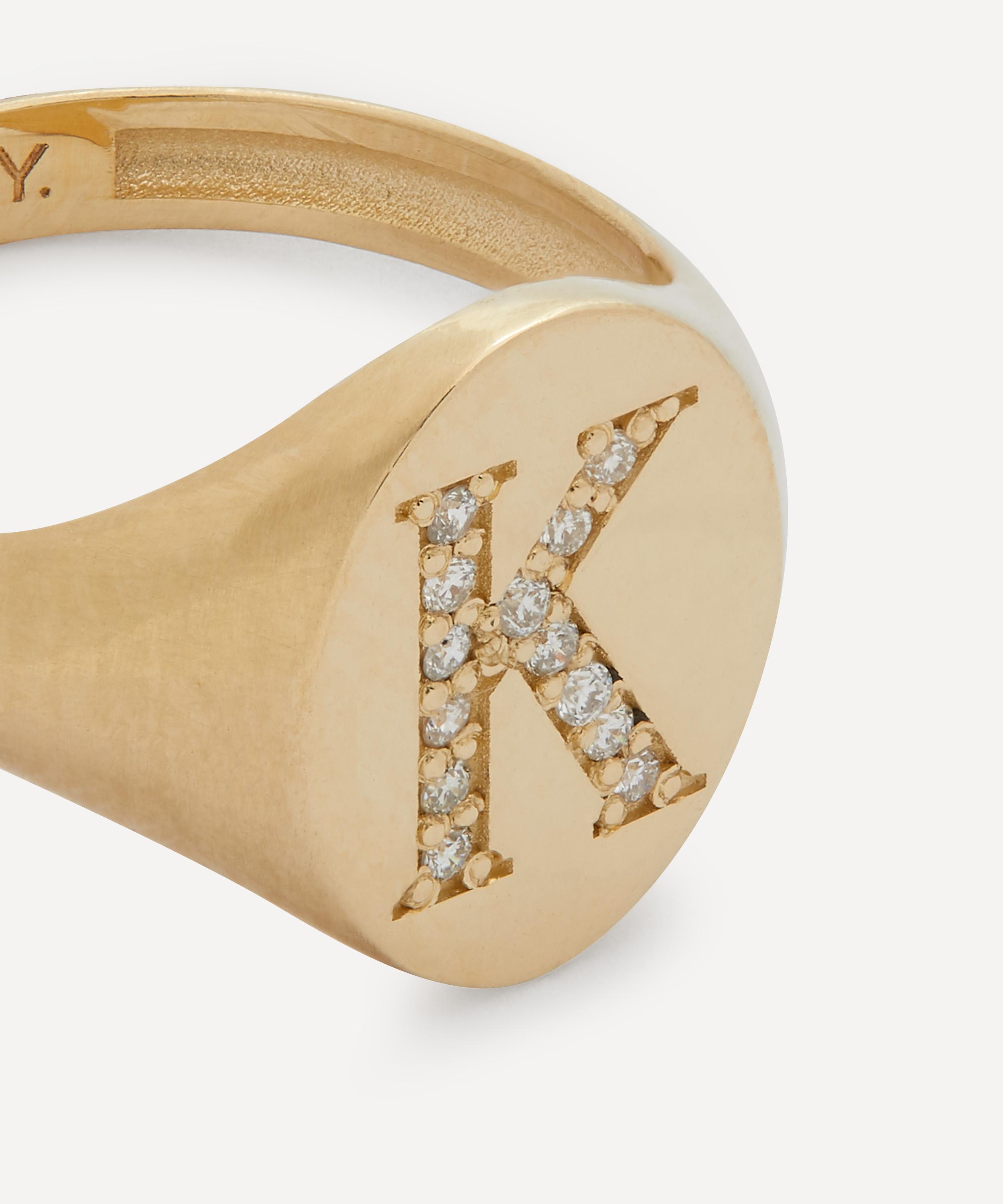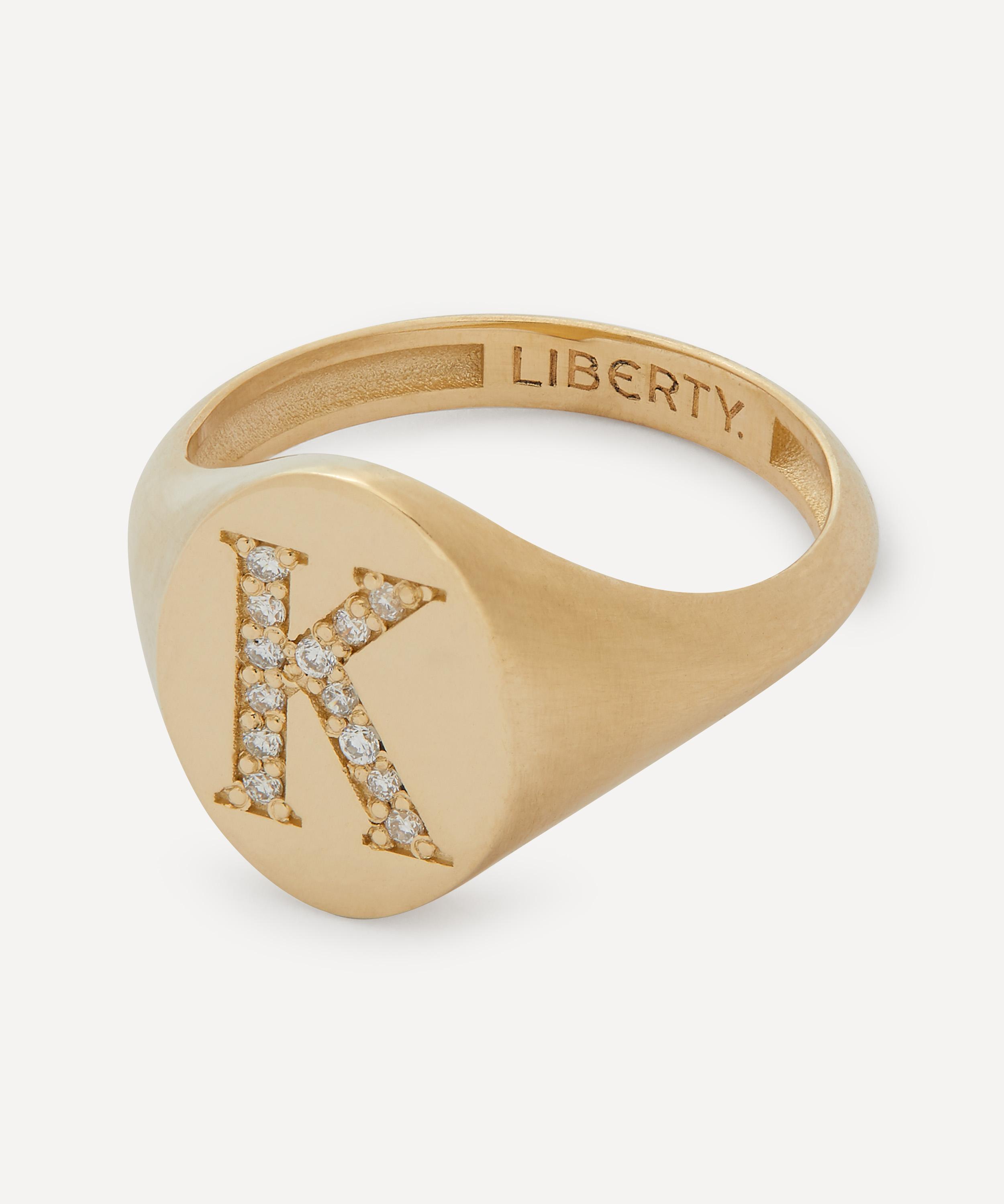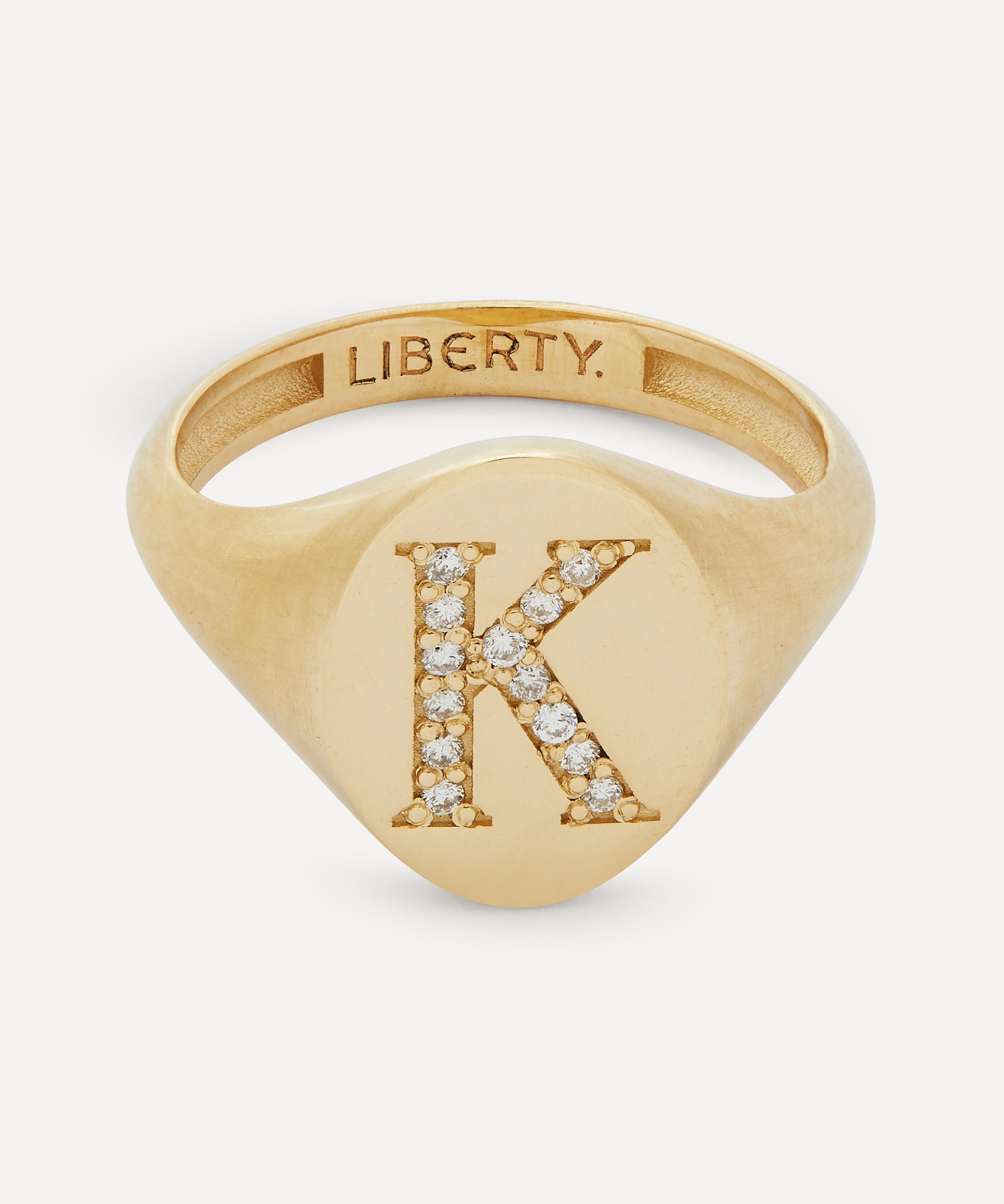 9ct Gold and Diamond Initial Liberty Signet Ring - K
