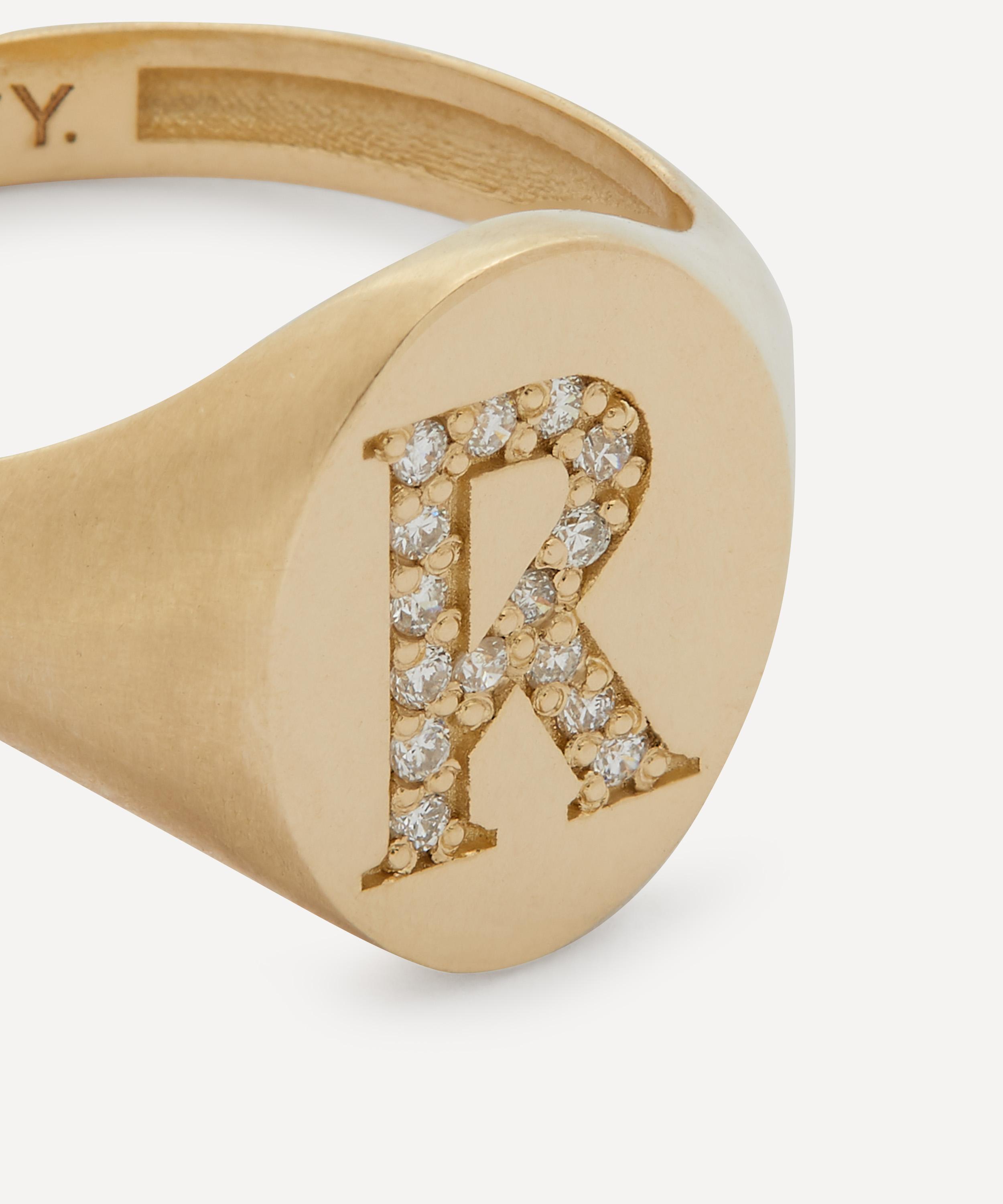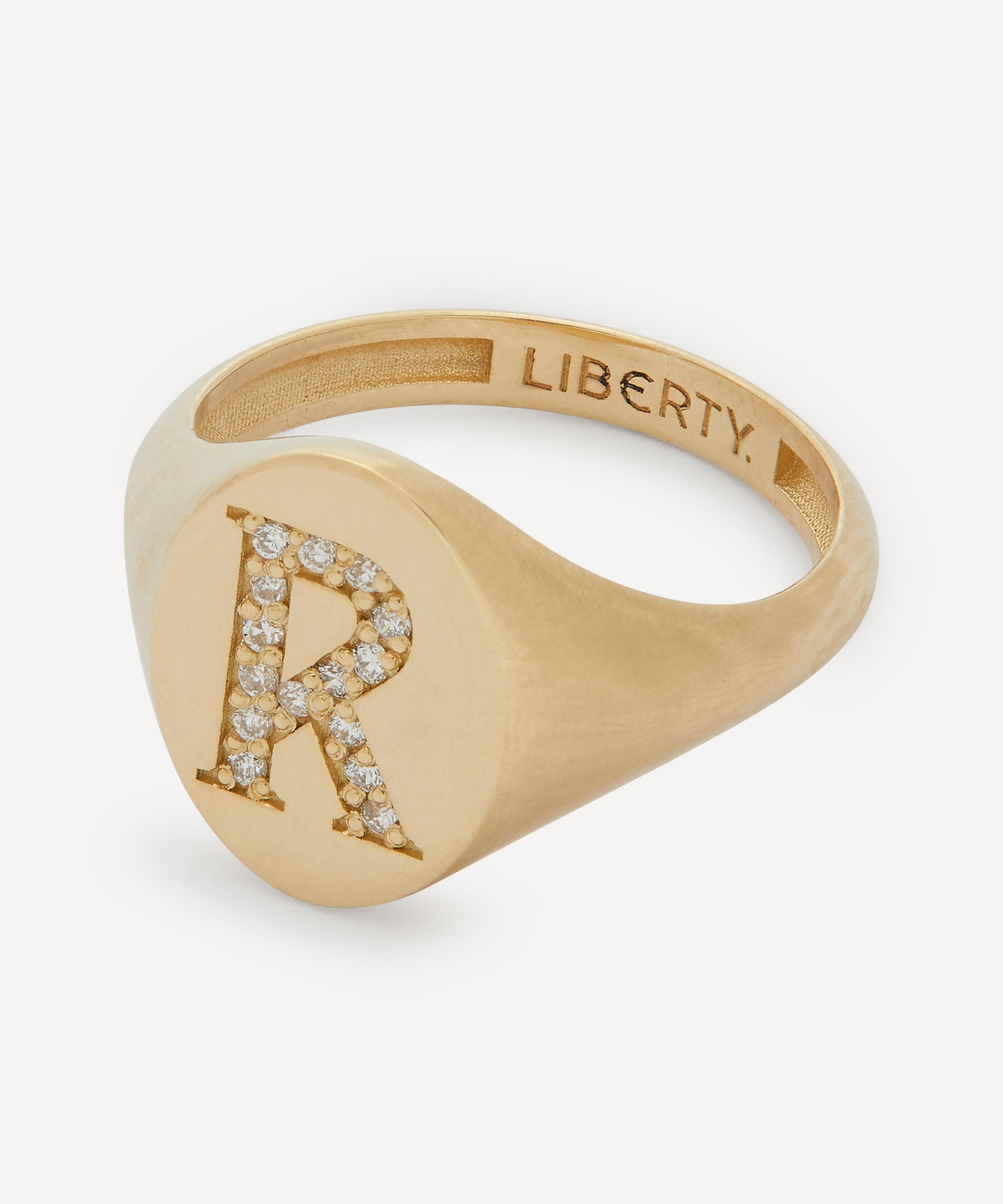 9ct Gold and Diamond Initial Liberty Signet Ring - R