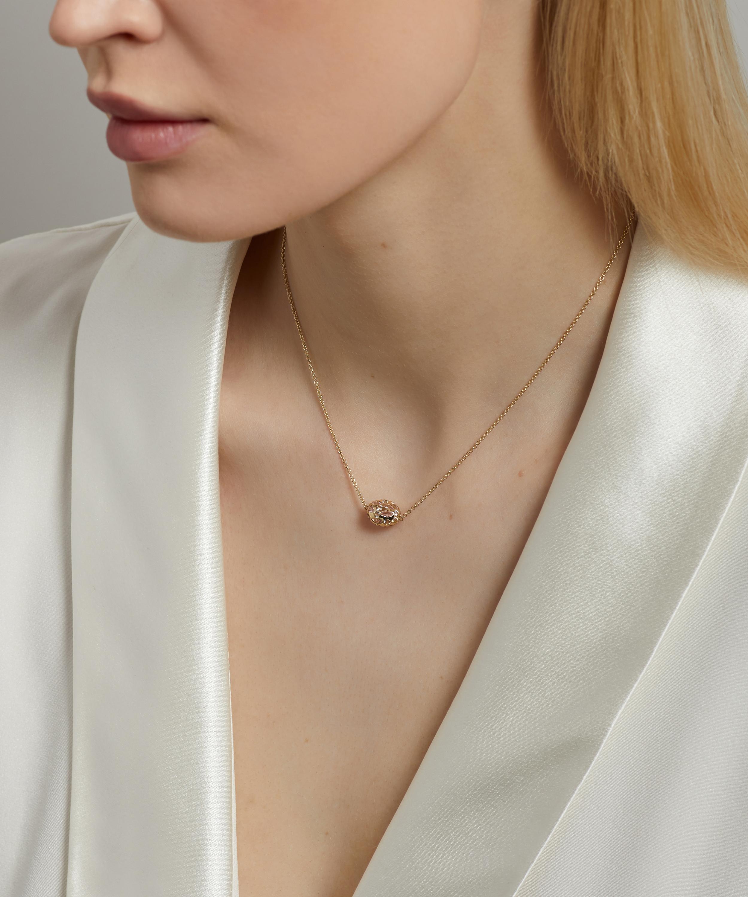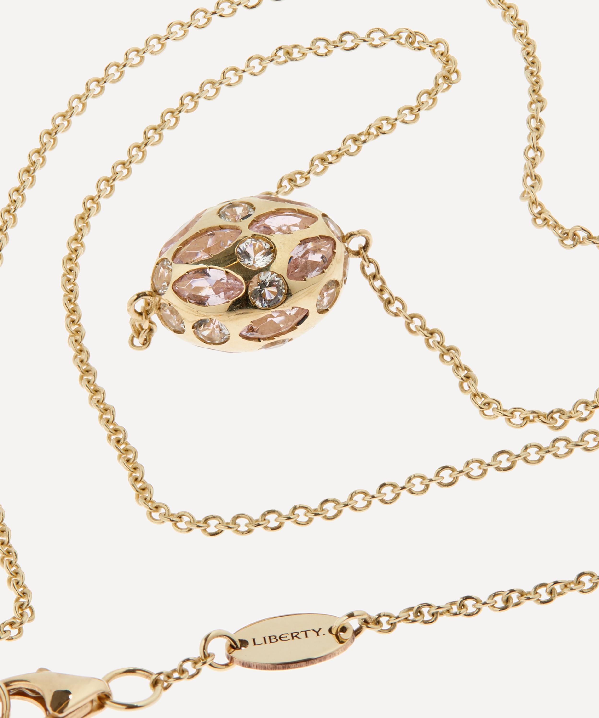 A modern heirloom that pays tribute to Liberty’s collector spirit, this statement Aragon pendant necklace has been encrusted with lab-grown pink and clear opal gemstones for a sparkling finish.