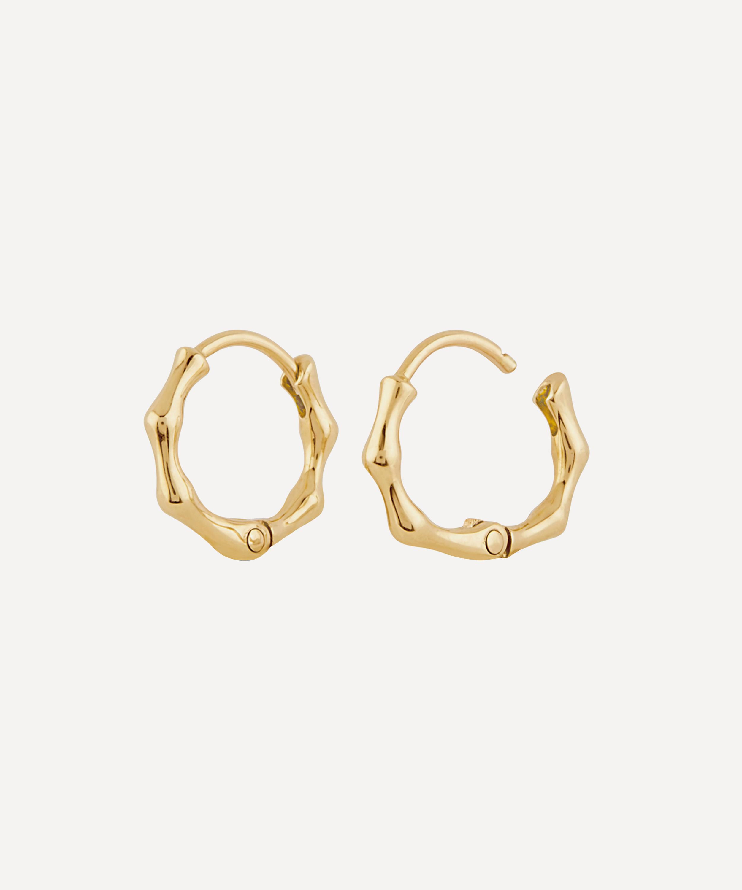 A symbol of luck, durability and wealth, bamboo is the central motif of this Dinny Hall collection - originally inspired by a Gucci handbag with bamboo handles. These mini, bamboo-inspired click hoop earrings are handcrafted from recycled 9 carat gold - a strong, demi-fine metal that is 41.7% pure gold and will never scratch or lose its colour when handled with care. Try stacking them with several of the designer's larger Bamboo hoops for an eye-catching, graduated effect.