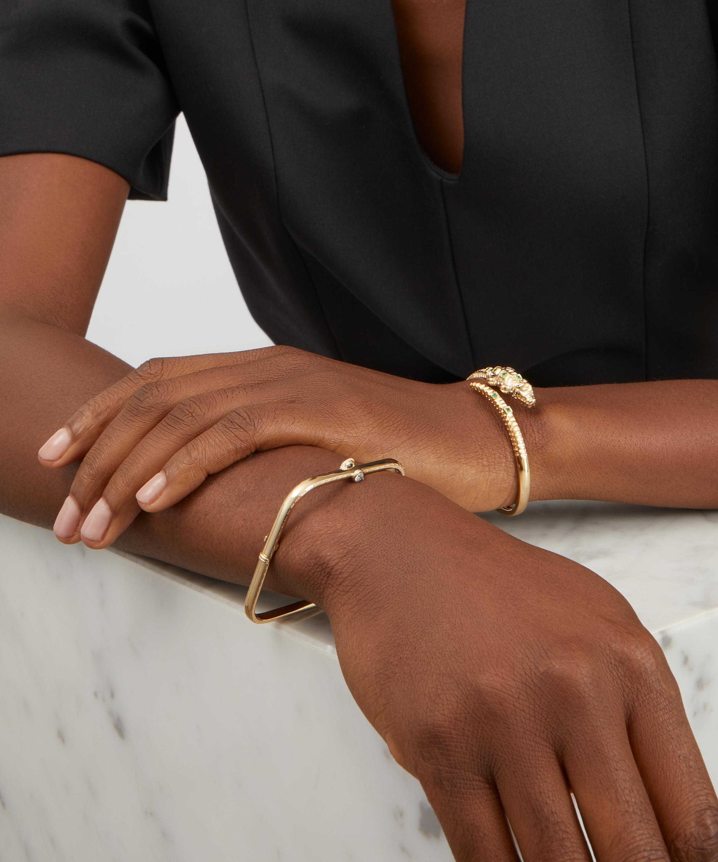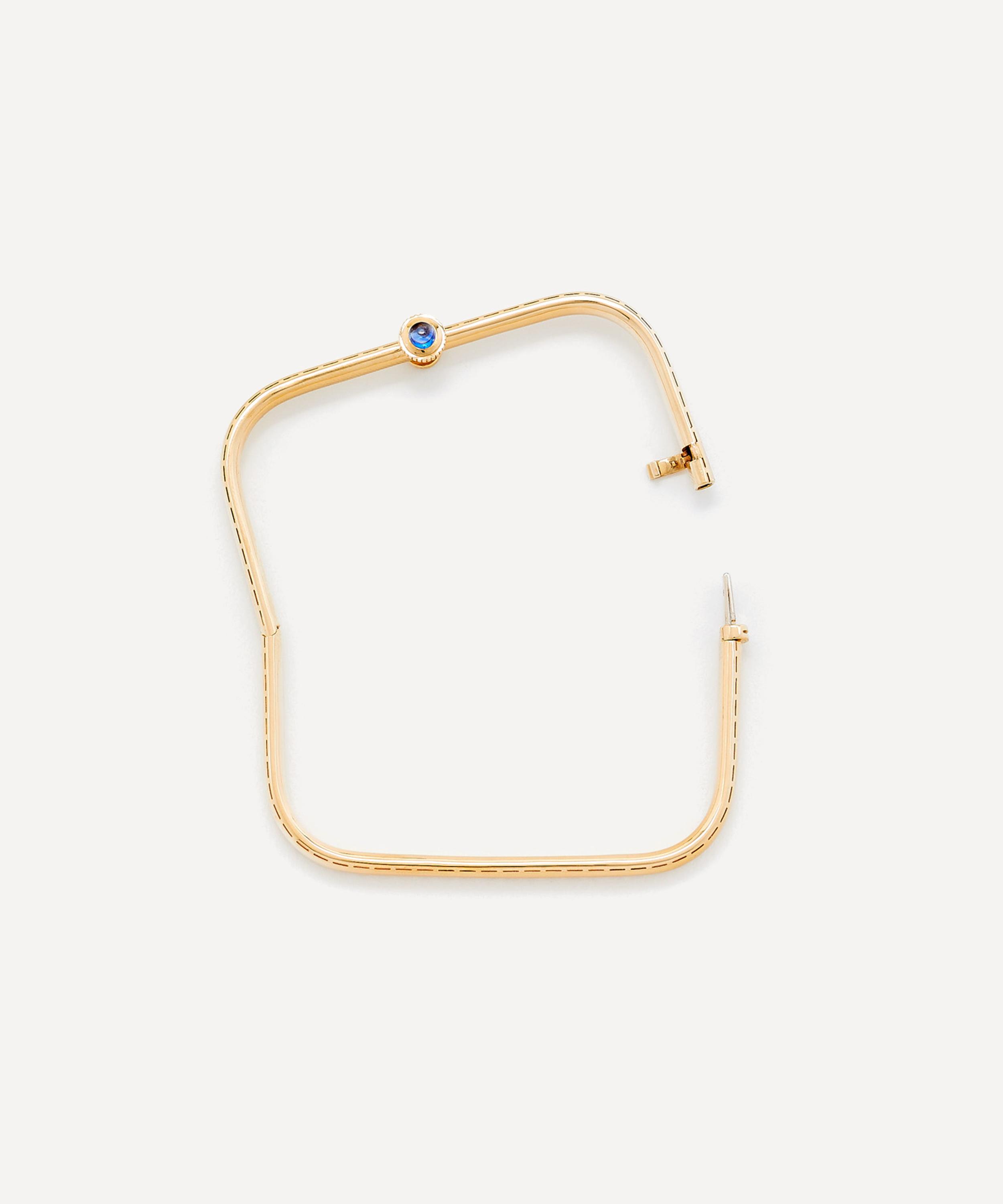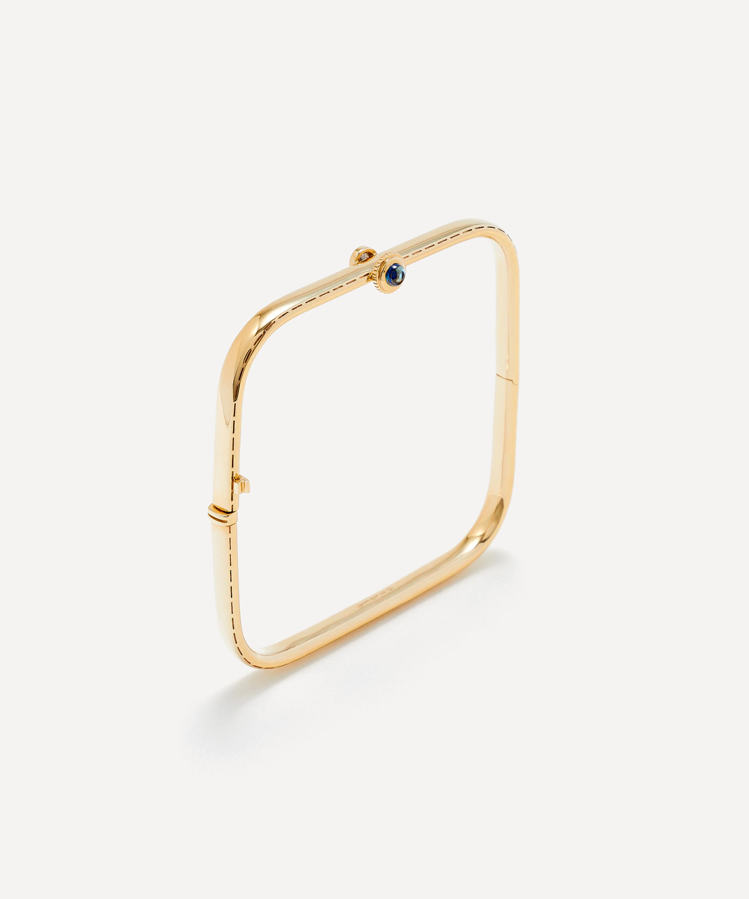 Delve into a world of vintage classics and tie your whole look together with this bangle bracelet from Yvonne Léon. Crafted from 9ct gold, the designer beautifully unites vintage charm with a modern reinvention in this piece – featuring a polished, square-shaped silhouette adorned with a blue sapphire and grey diamond. Wear it on its own, incorporate into a wrist stack, or mix and match with other pieces from the brand.