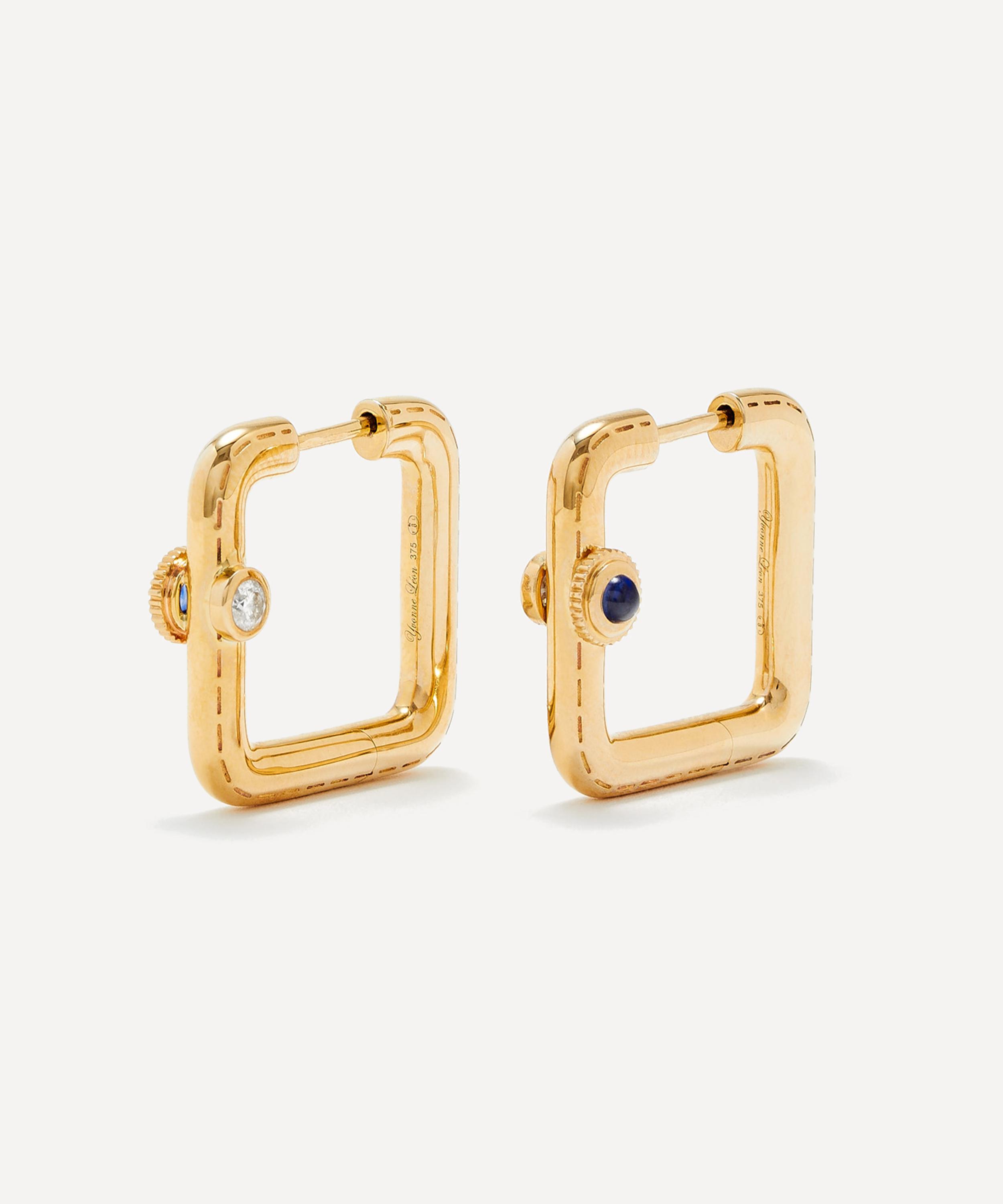 Delve into a world of vintage classics and tie your whole look together with these hoop earrings from Yvonne Léon. Crafted from 9ct gold, the designer beautifully unites vintage charm with a modern reinvention in this piece – featuring a polished, square-shaped design adorned with a blue sapphire and grey diamond. Wear them on their own, incorporate into an ear stack, or mix and match with other pieces from the brand.