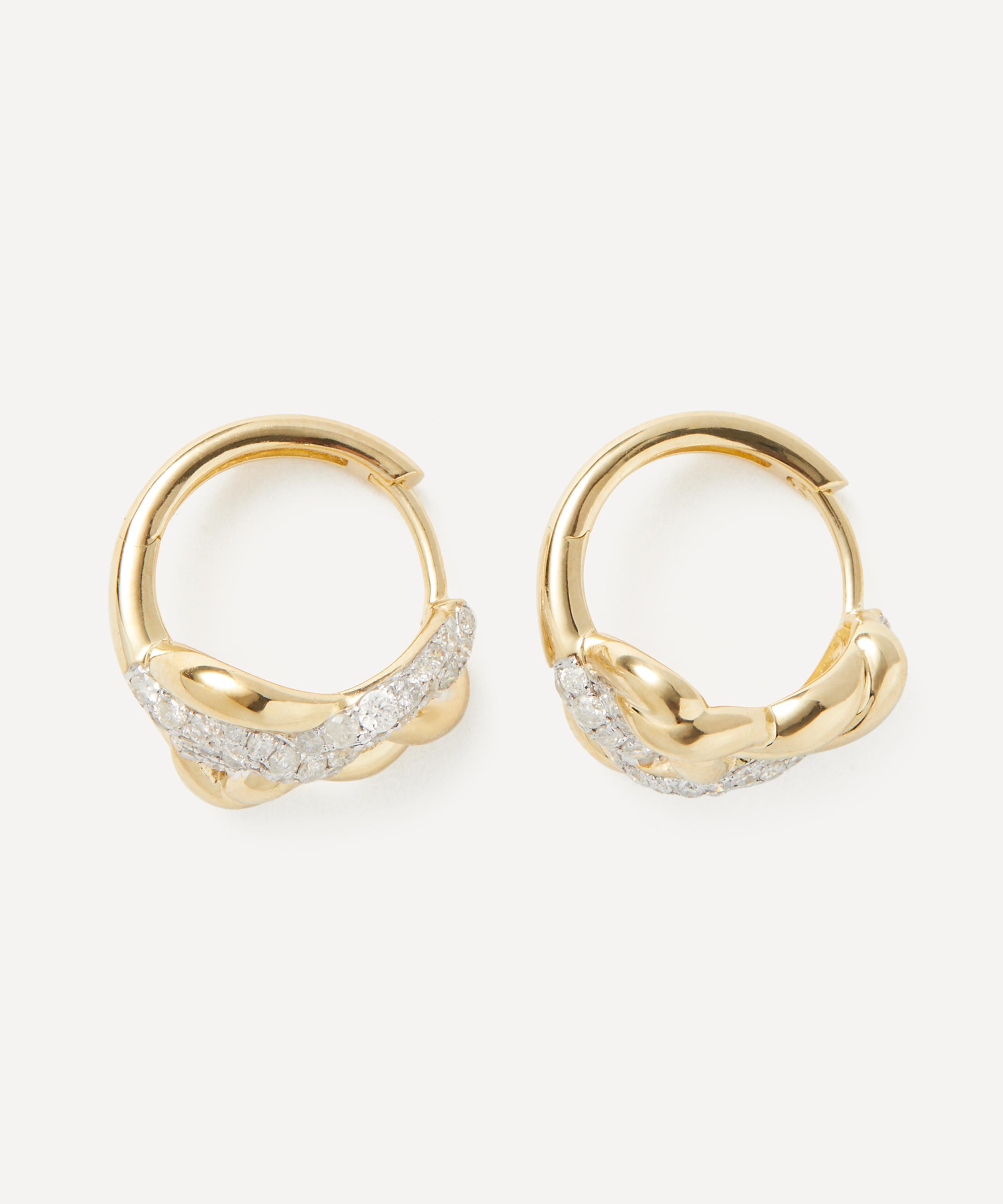 Delve into a world of vintage classics, with a modern twist – Yvonne Léon's affinity for mixing styles is illustrated in her endlessly elegant Braided Hoop earrings. Crafted from 9ct gold, this sophisticated pair are characterised by their woven design, accented with an array of sparkling grey diamonds for an eye-catching finish - style with other piercings, studs and drops for a trend-led curation.