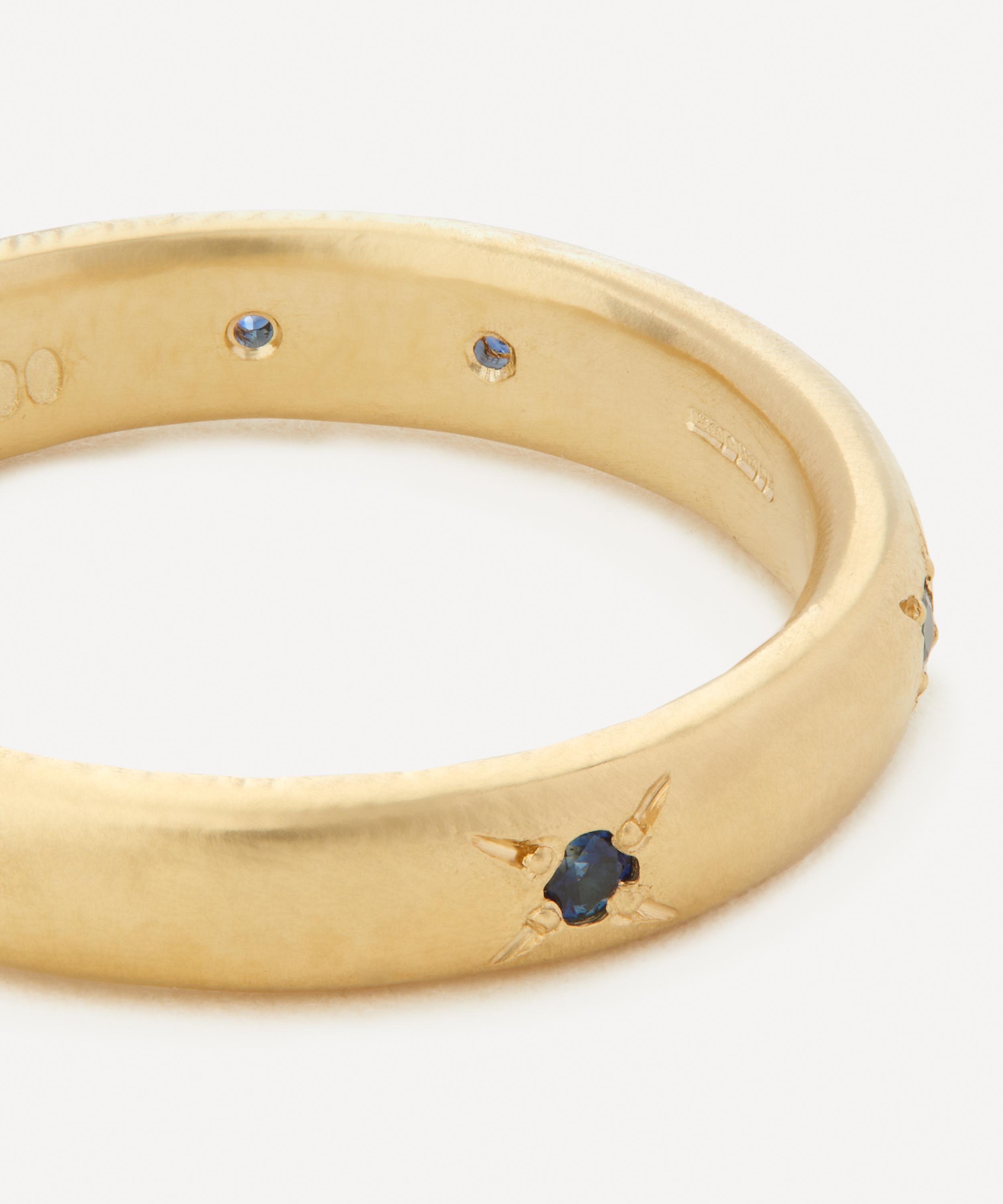 Handmade in Melbourne, it features a brushed 9ct gold band adorned with a scattering of Australian blue sapphires – perfect for injecting a burst of individuality into your everyday jewellery line-up.