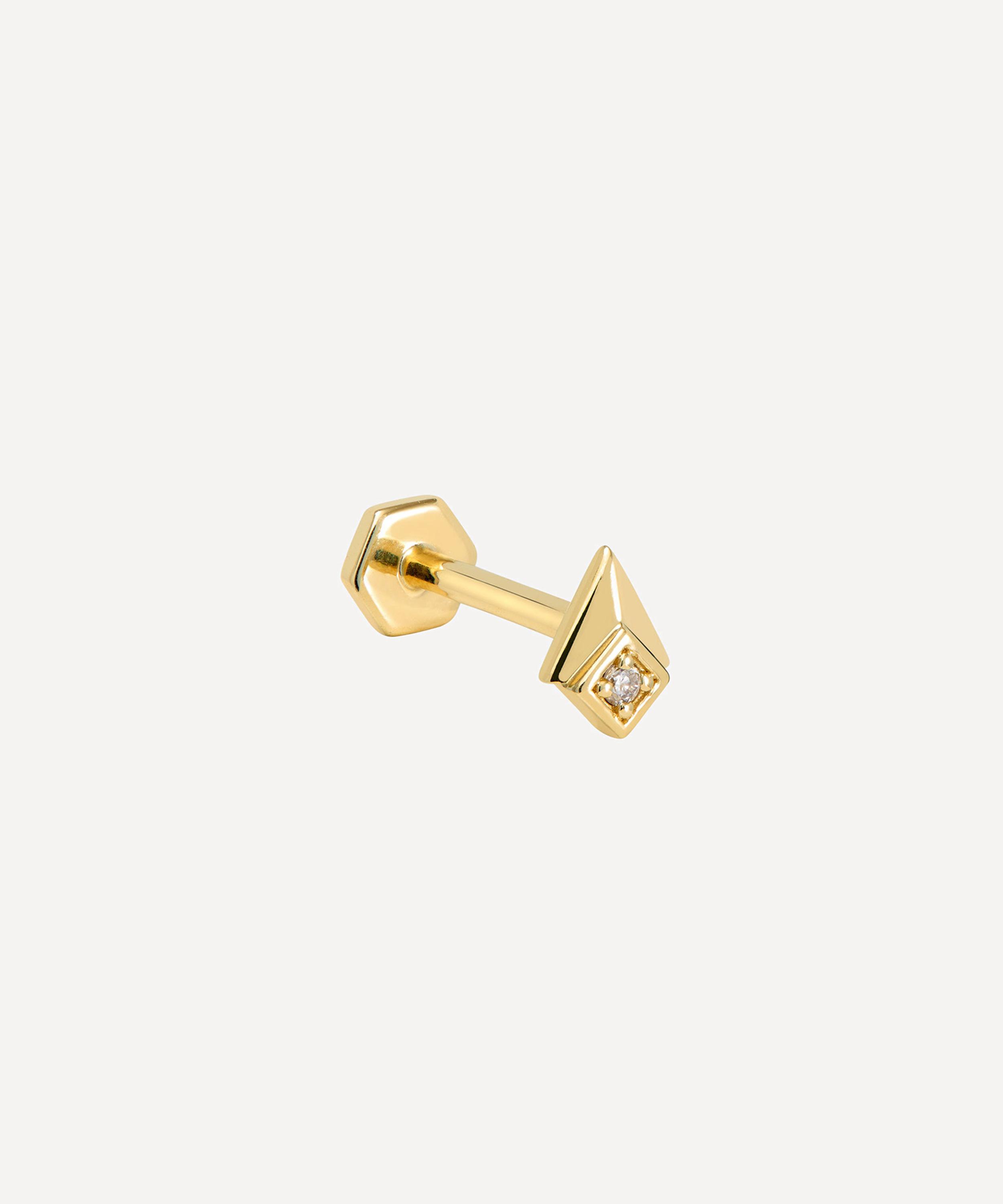 Handcrafted from solid 9ct gold, it features a diamond set Art Deco arrow spike, representing the arrows of a compass - a reminder to tune in to our intuition and remember what really matters. Designed as a symbol of guidance, stack it with additional piercings and earrings, team with coordinating styles from the collection or get two for a matching pair.