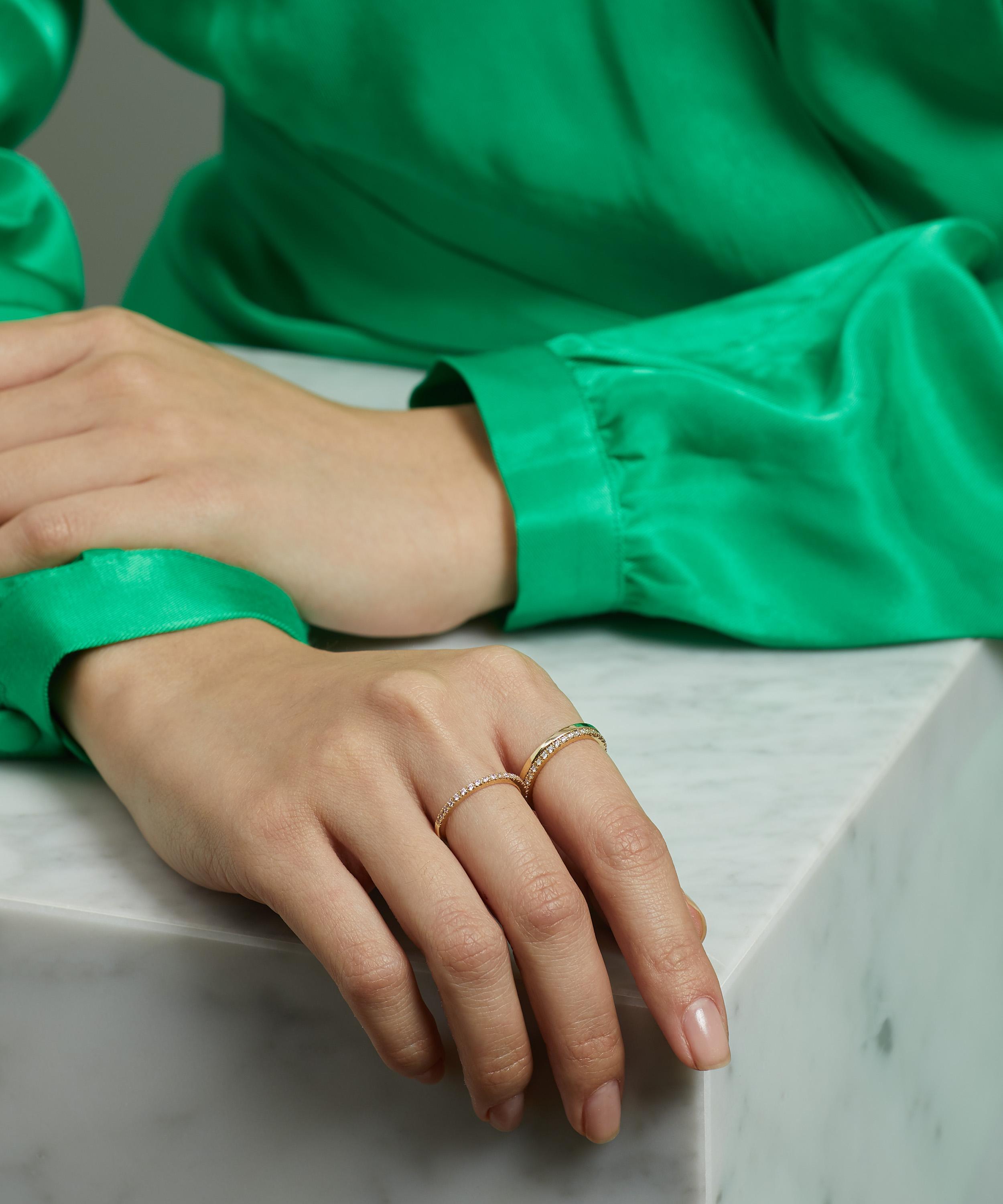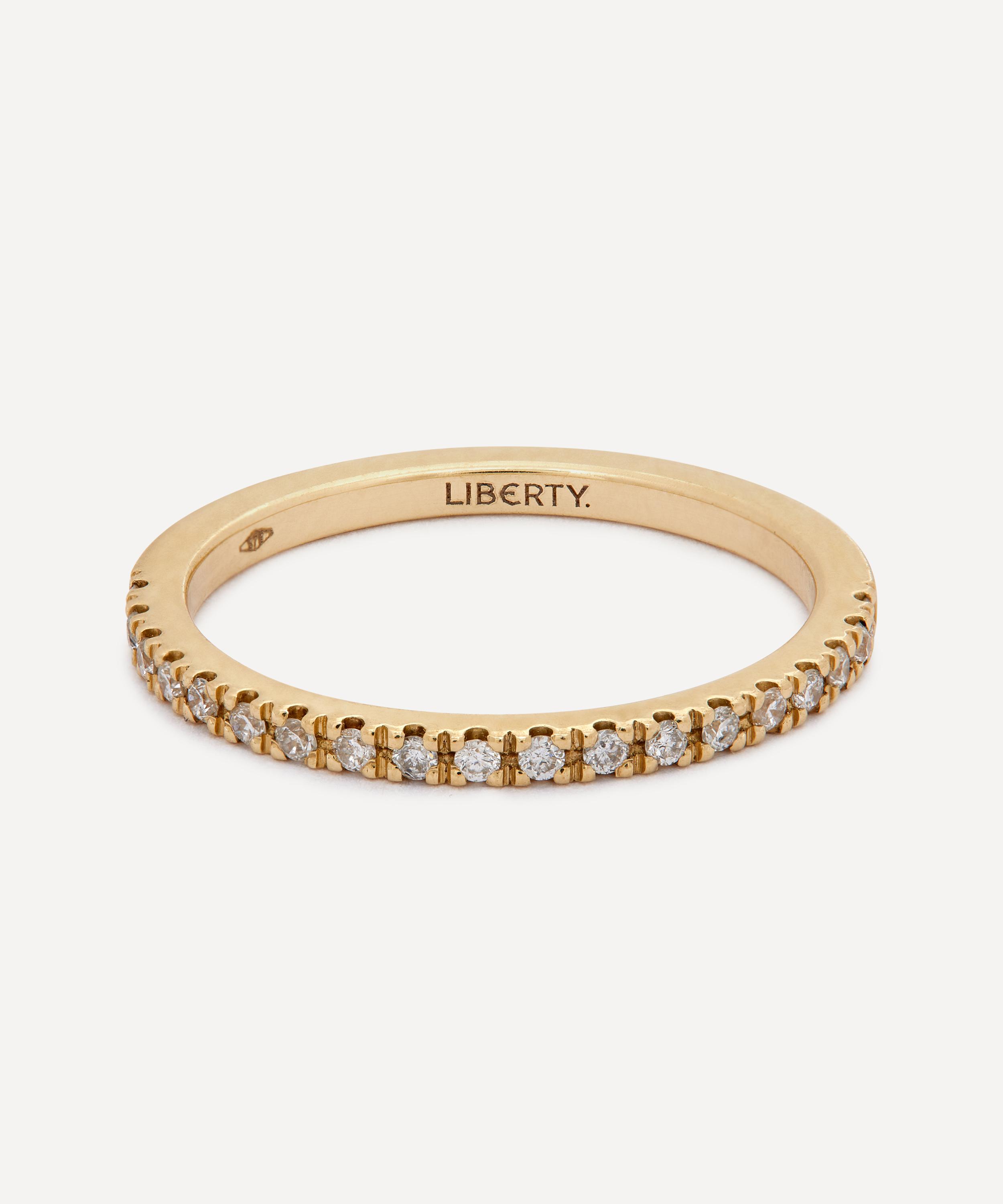 Encrusted around the band with lab-grown diamond stones, this versatile ring features a high-polish finish and is engraved on the inside with our branded Liberty logo. Each ring is made in a small batch, crafted by hand in Italy – a modern heirloom that pays tribute to Liberty’s collector spirit.