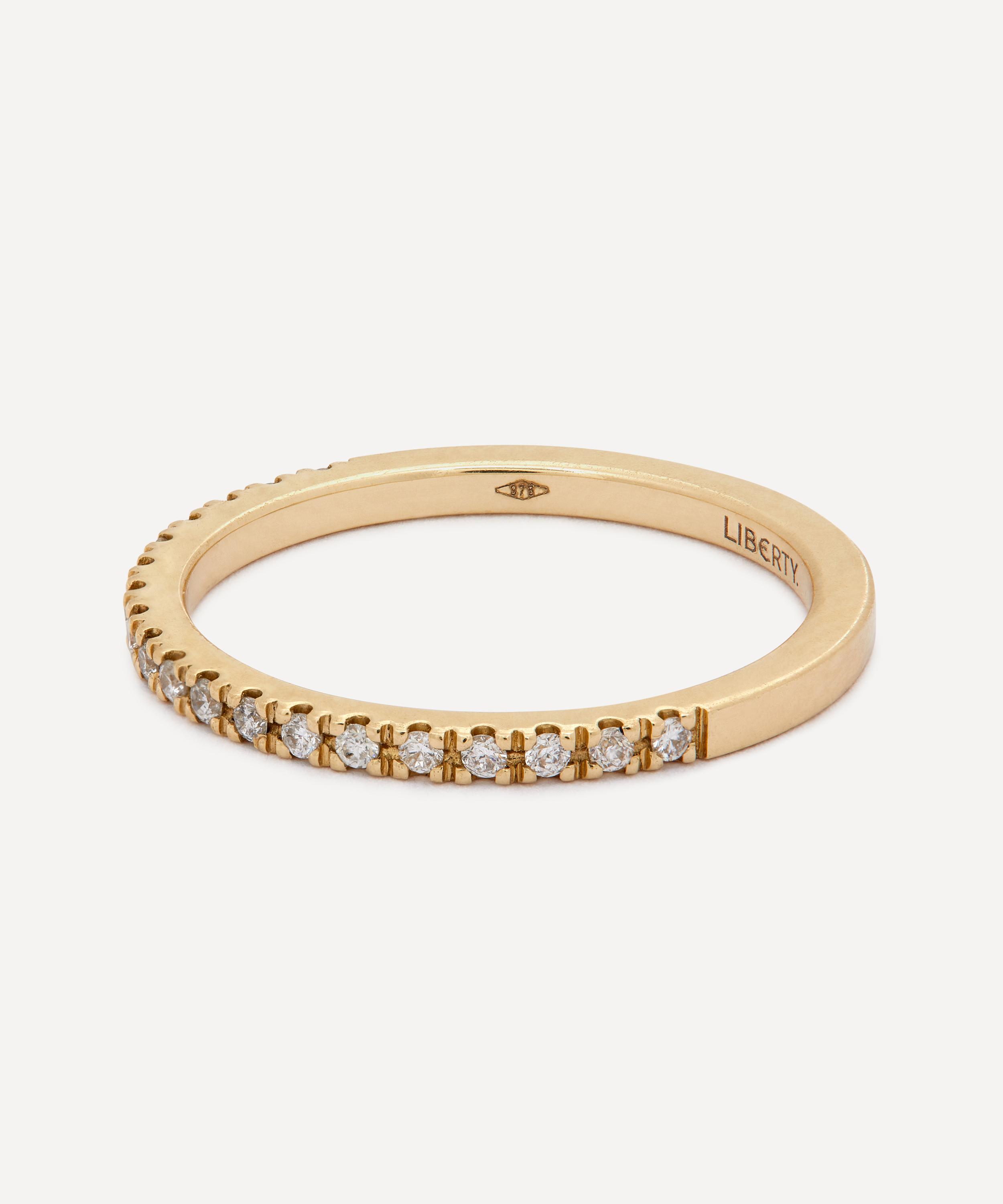 Elevate your everyday jewellery curation with the Rainbow ring from Liberty, beautifully crafted by hand in Italy from 9 carat gold and set with glittering lab-grown diamond stones.