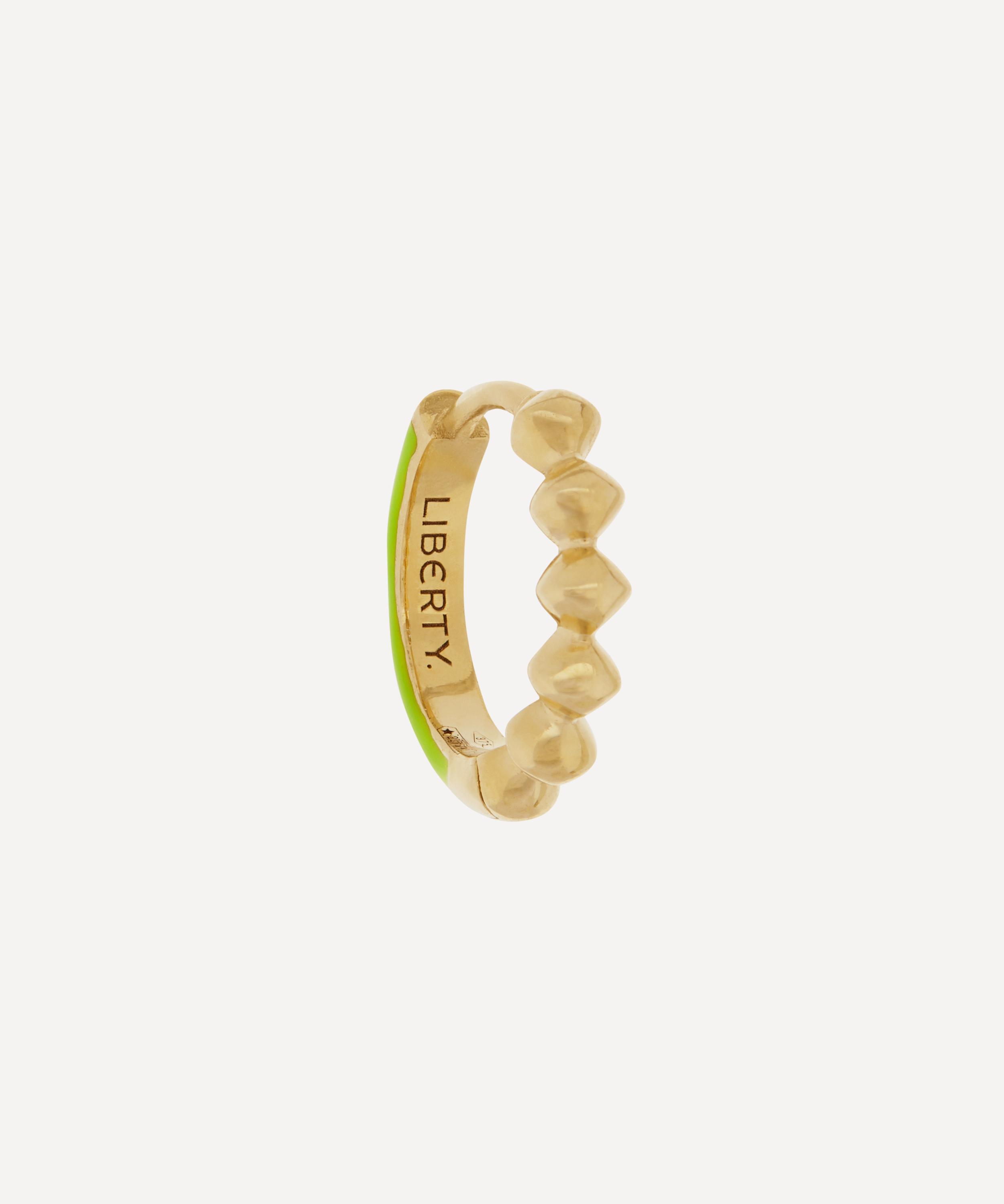 Elevate your everyday jewellery curation with the Eclipse Creole Enamel mini hoop earring from Liberty, beautifully crafted by hand in Italy from 9 carat gold. This unique and contemporary earring combines tiny, polished rhombus shapes to one side, with a smooth yellow enamel coating to the other. Each earring is made in a small batch – a modern heirloom that pays tribute to Liberty’s collector spirit. Try wearing it as a pair or mix and match with other Creole hoops from the Eclipse collection.