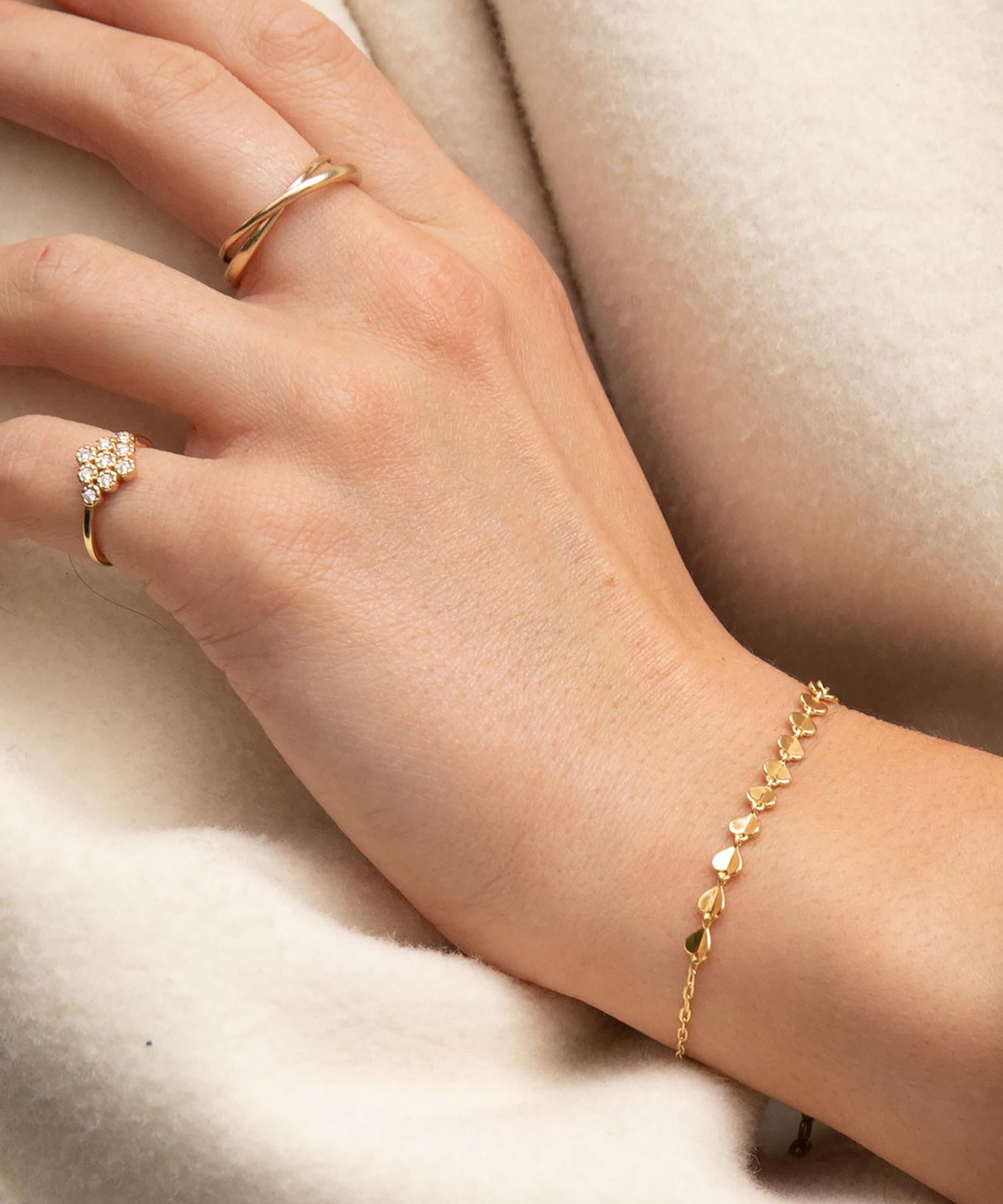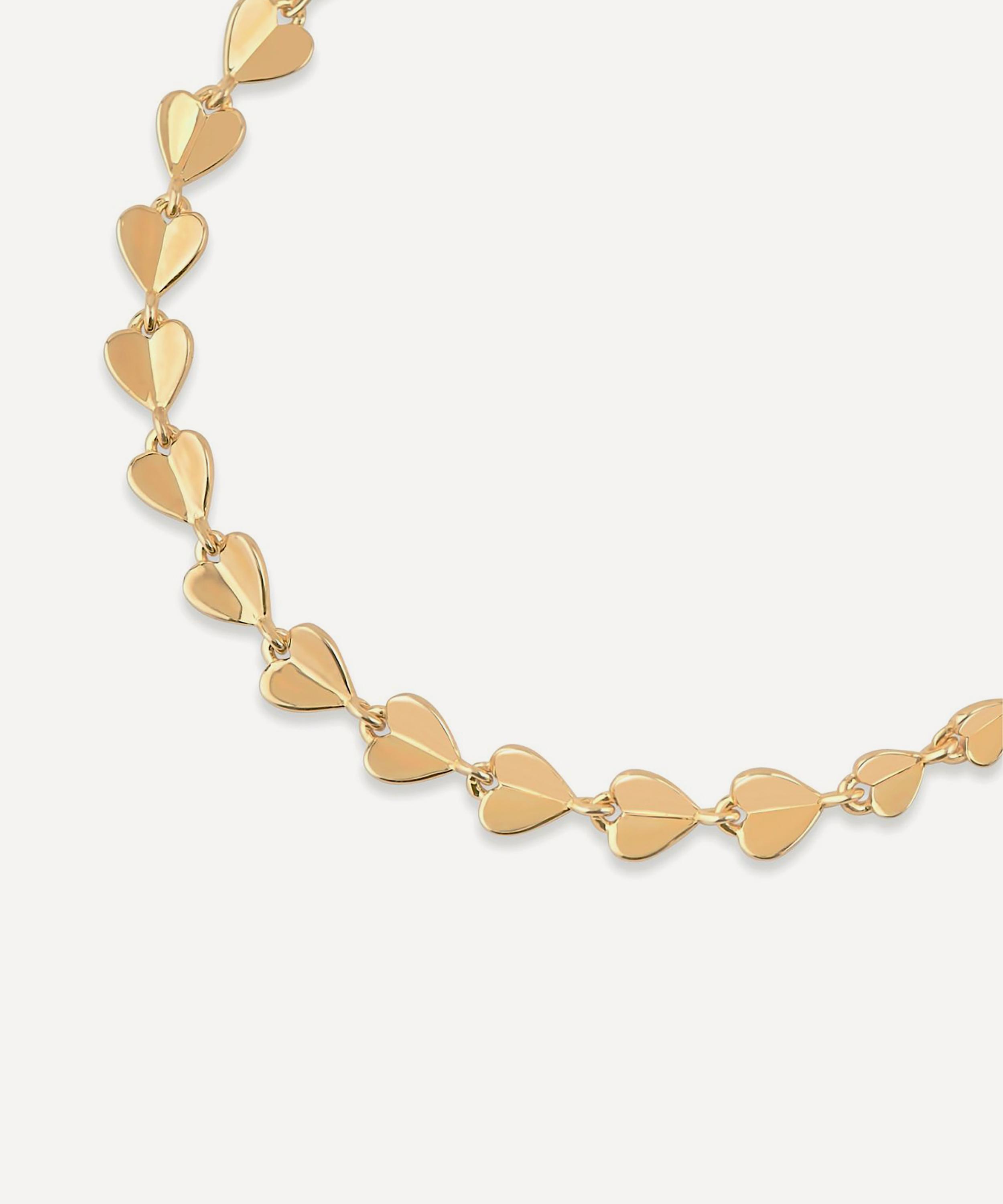 Crafted from 9ct gold, it combines sophisticated luxury with playful design, featuring a hammered trace chain adorned with fluttering, folded heart charms. Made to be treasured and cherished for generations to come, it’s ideal for both casual and formal looks – try pairing it with other pieces from the collection for a coordinated finish.