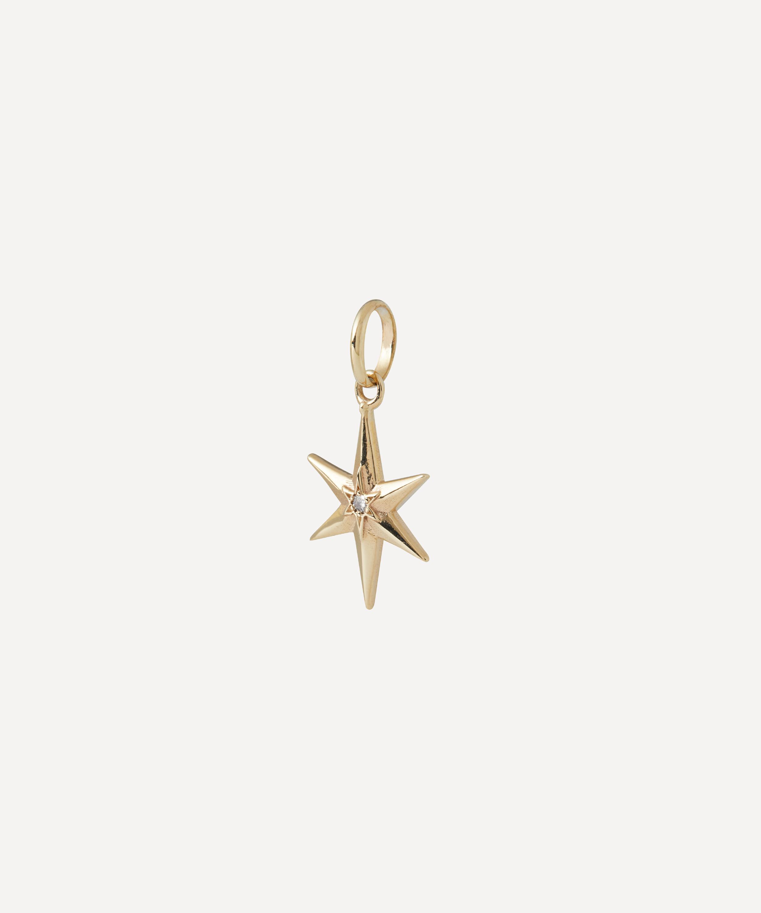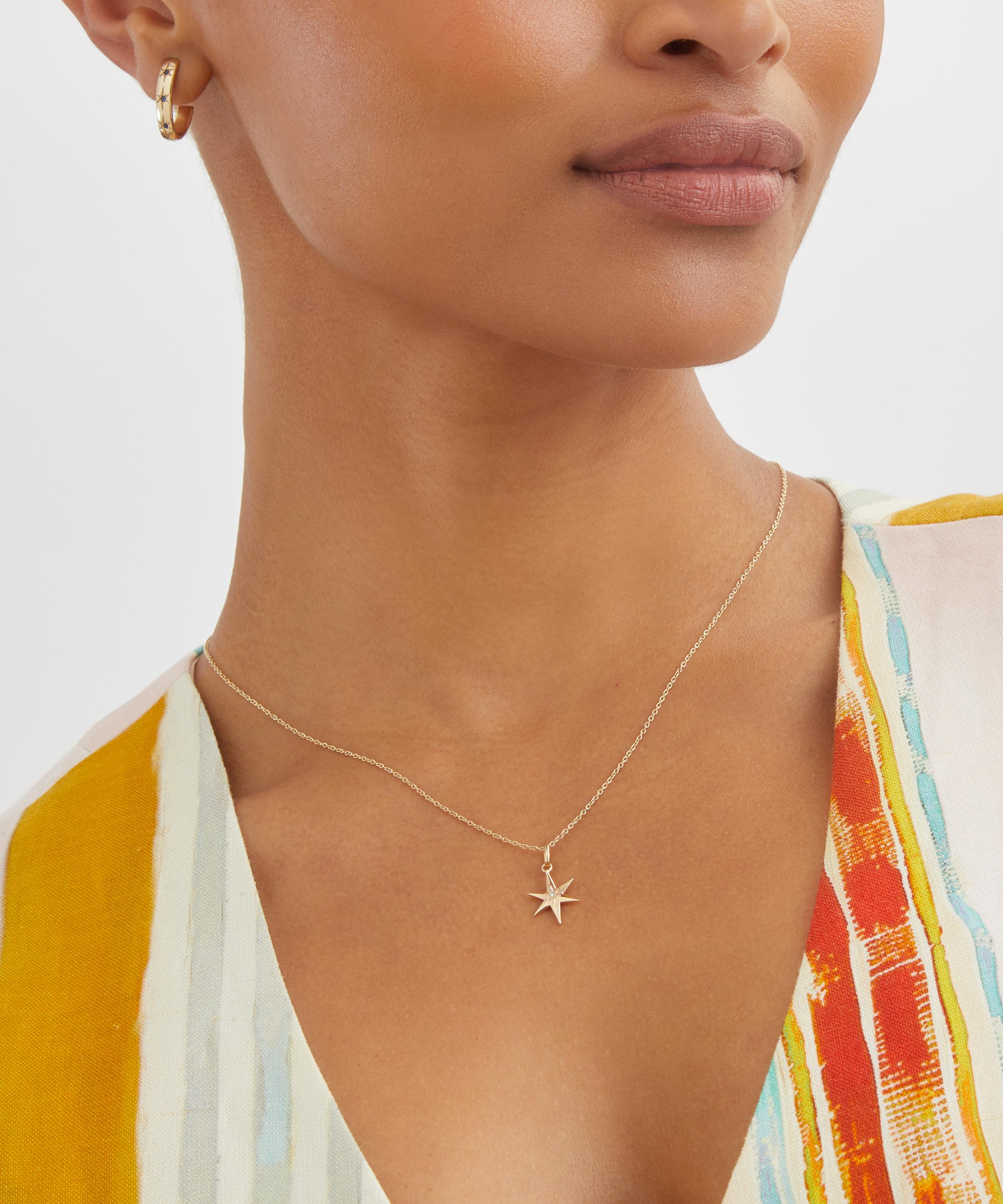 Translating print details and vintage shapes into luxuriously jewelled textures, the Ianthe Star pendant captures our studio’s historic passion for artists and artisans. Crafted from 9ct gold, it features a polished, 6-point star, intricately decorated with a central star set diamond – boasting a twinkling modern heirloom that pays tribute to Liberty’s collector spirit. Style it on one of Liberty’s plain chains and mix and match with other pieces from the Ianthe Star collection.