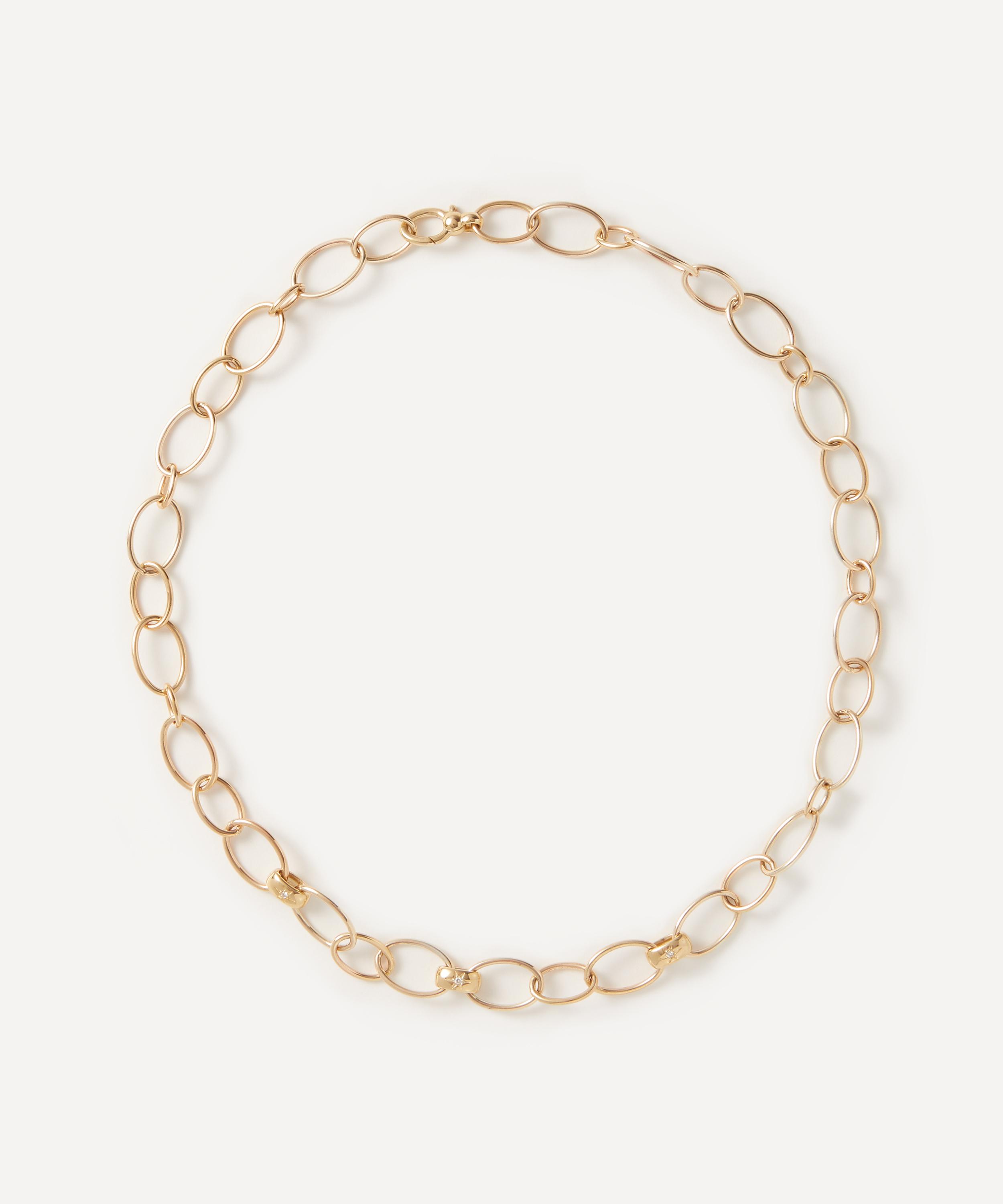 The Ianthe Star Three Link Diamond necklace by Liberty is crafted by hand in Italy from 9 carat gold – a modern homage to Liberty’s Art Nouveau heritage.