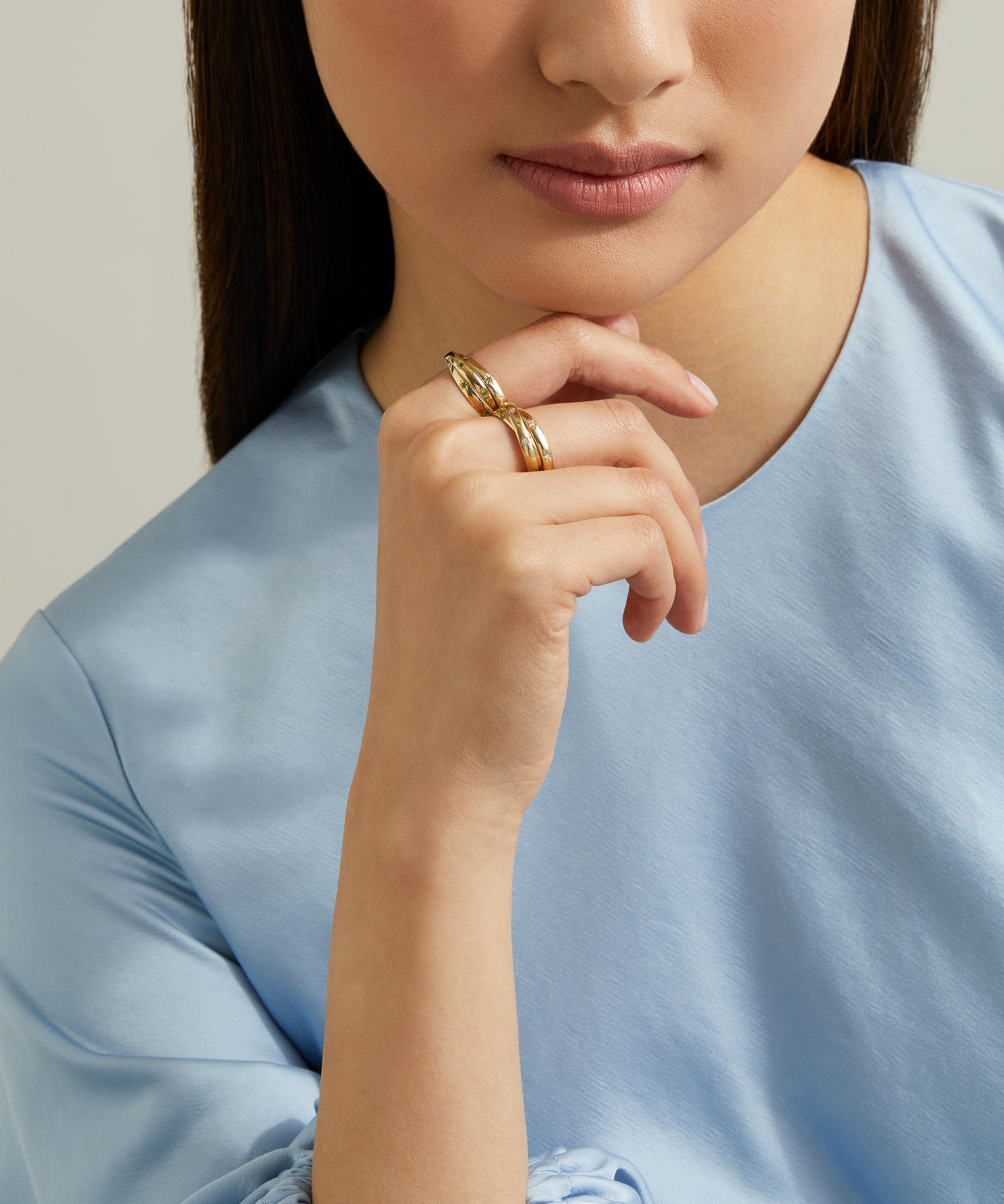 Translating print details and vintage shapes into luxuriously jewelled textures, the Ianthe Star Trilogy ring captures our studio’s historic passion for artists and artisans. Crafted from 9ct gold, it features three interconnected bands in a polished finish, skilfully decorated with star set diamond accents – boasting a twinkling modern heirloom that pays tribute to Liberty’s collector spirit.