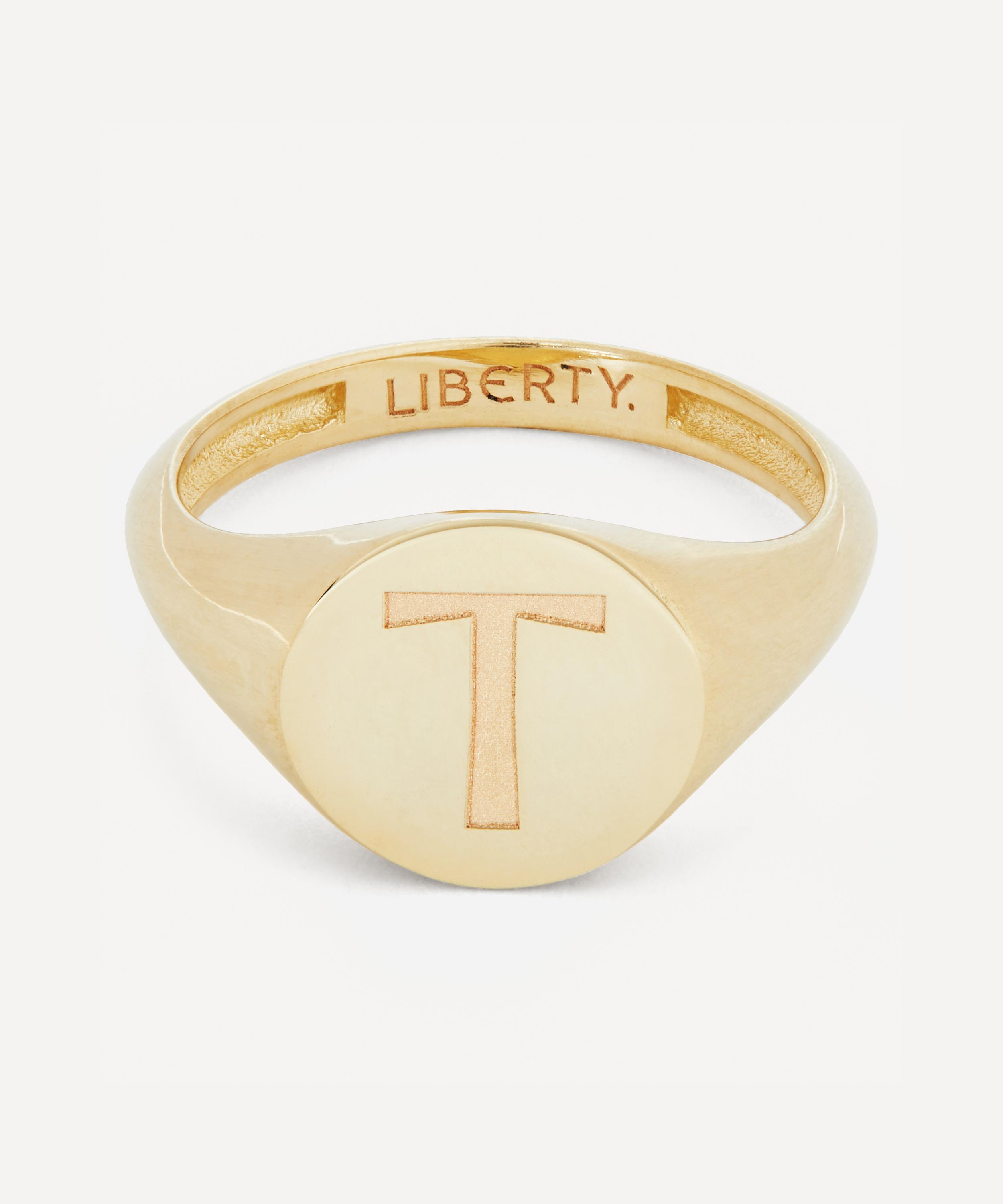 The signet ring is customisable with a single letter initial, in a celebratory modern reimagining of our iconic emporium’s distinctive Arts and Crafts typography. Engraved on the inside with our branded Liberty logo, each signet ring is small batch crafted by hand in Italy – a modern heirloom that pays tribute to Liberty’s collector spirit.
