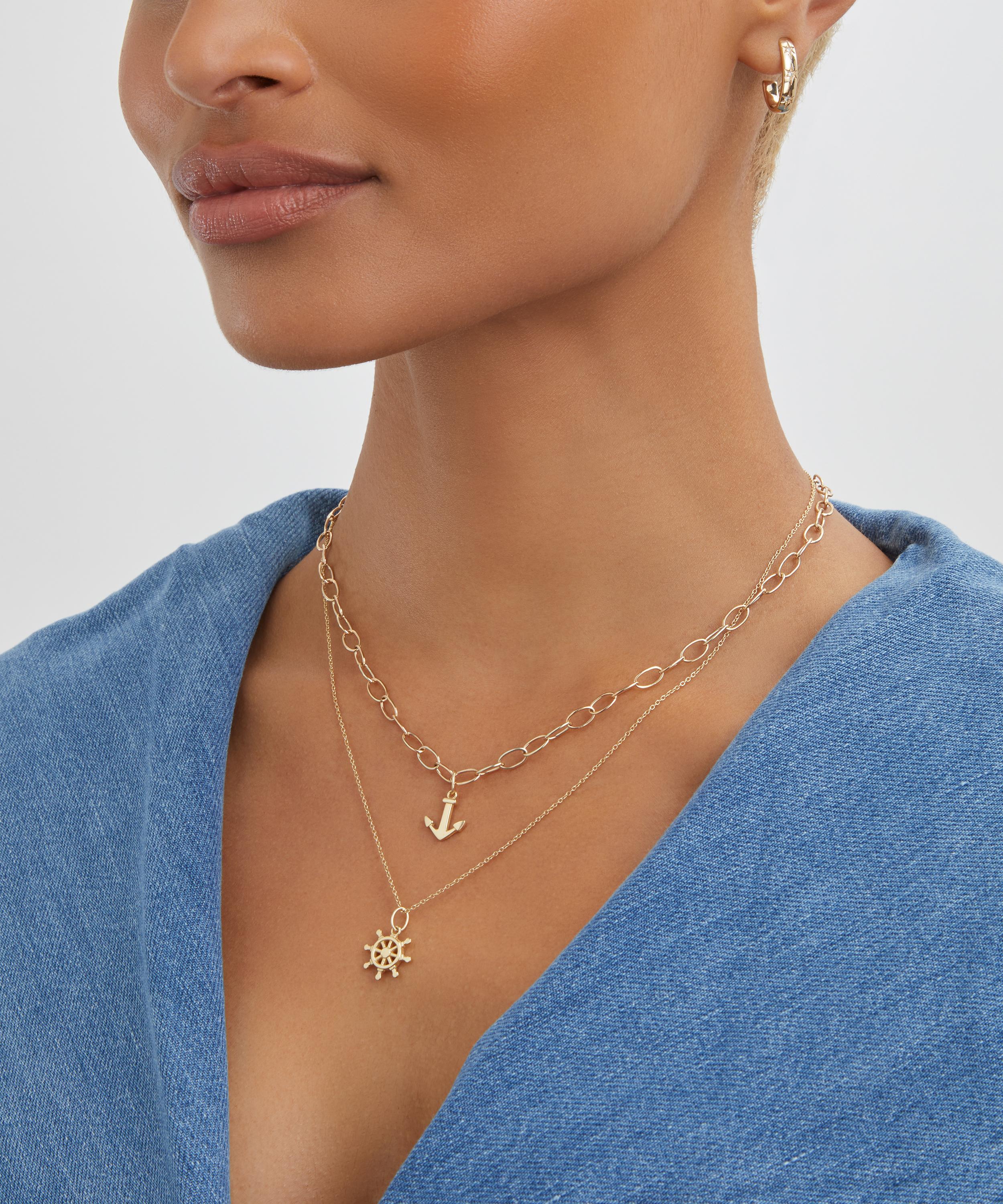 Channel the symbolic power emanating from the ocean with Liberty’s nautical-inspired pendant. Crafted from solid 9ct gold, it takes the shape of an anchor – a representation of hope and stability, and the wearers desire to stay steadfast in a time of trial or doubt. Style it solo or teamed with other pendants from the collection on one of Liberty’s chain bracelets or necklaces.