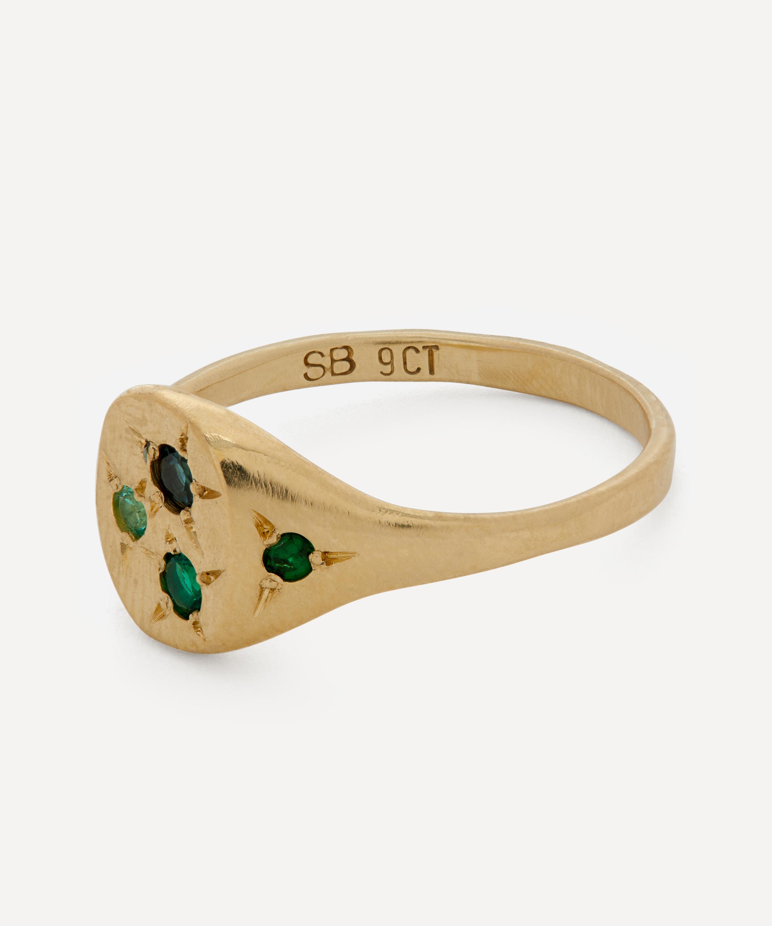 9ct Gold Neapolitan Green Multi-Stone Signet Ring