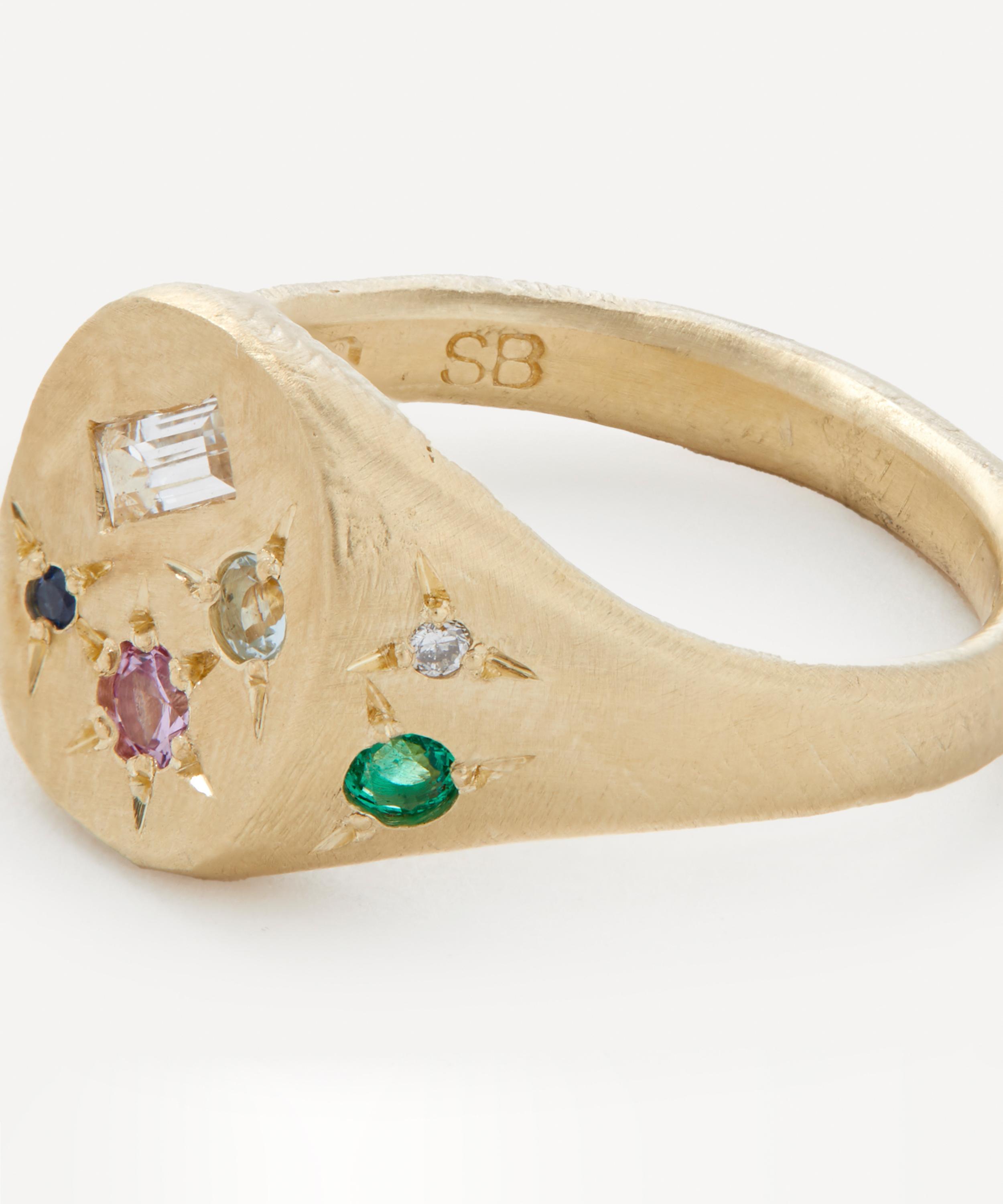 Seb Brown 9ct Gold Neapolitan Pastel Multi-Stone Signet Ring