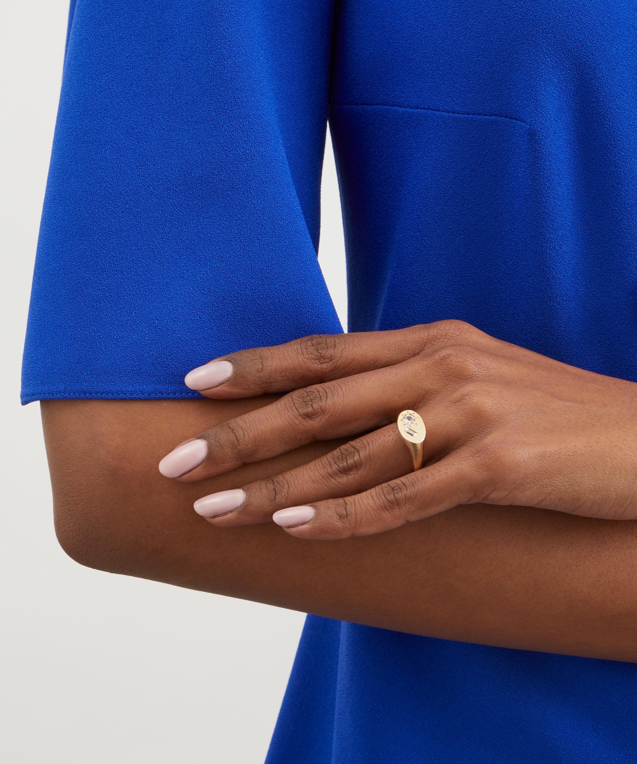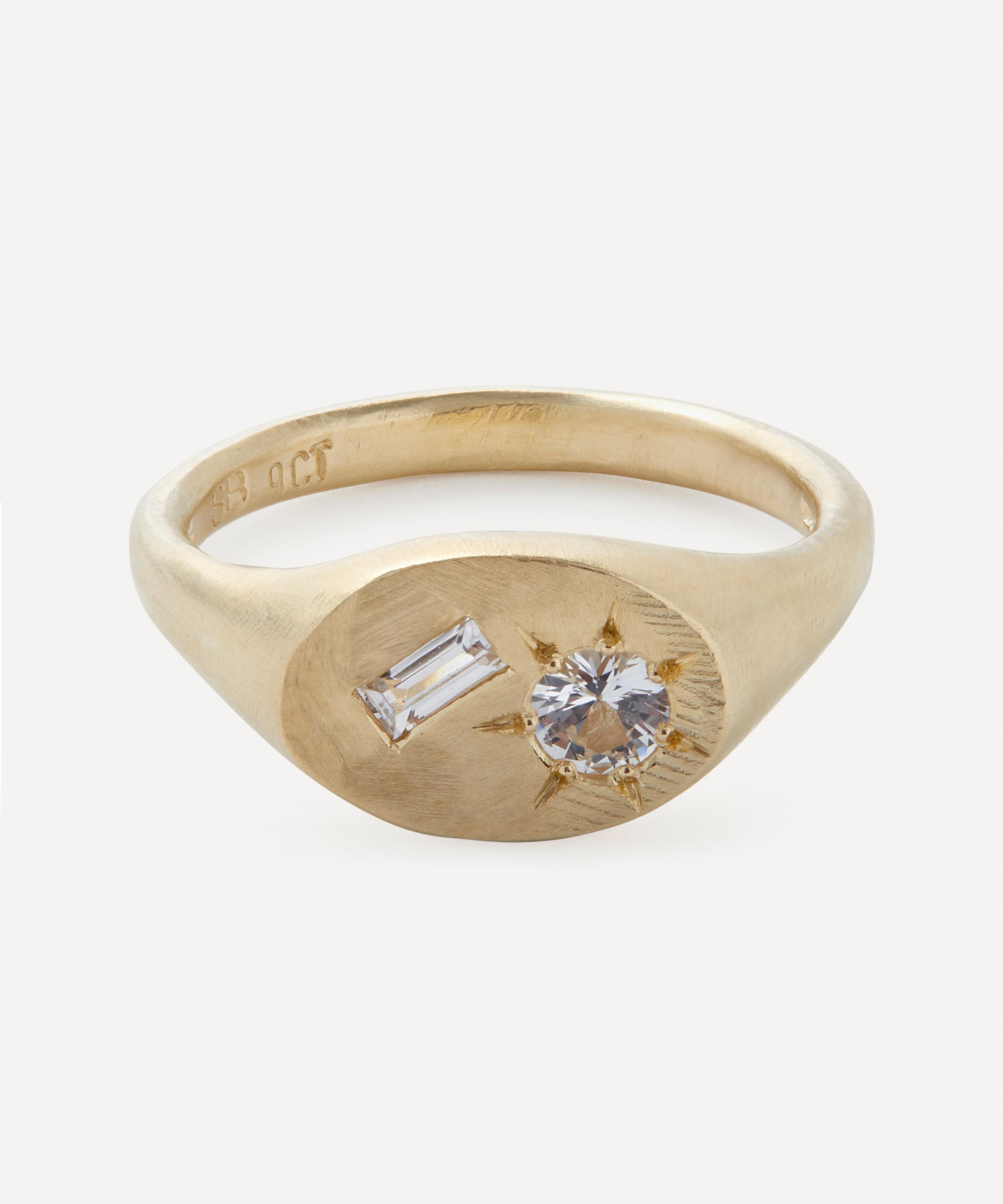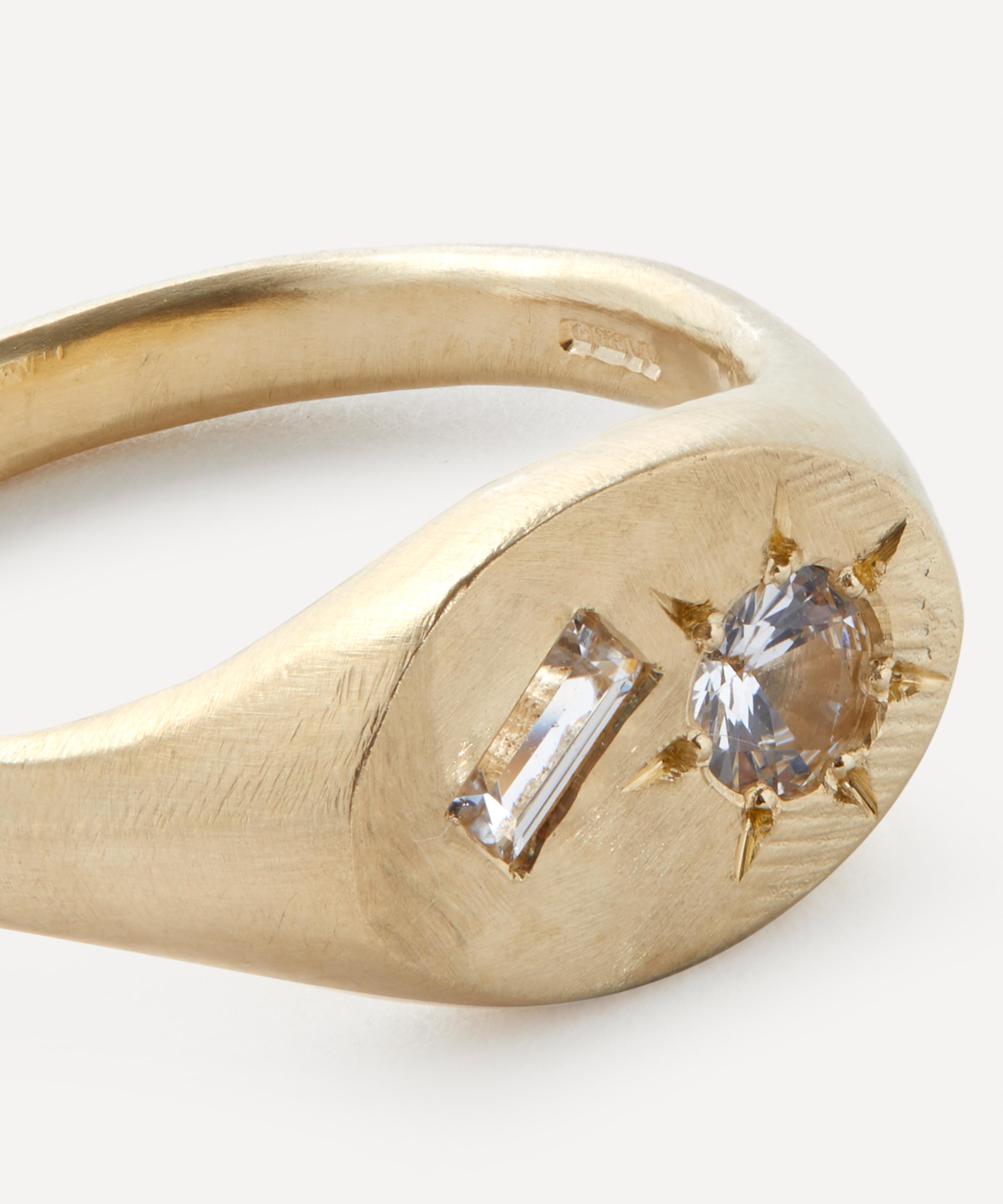 Showcasing the designer's playful, off-beat approach, this signet ring from Seb Brown is set with mixed-cut stones in an uncentred layout to deliver an organic, artisanal finish.