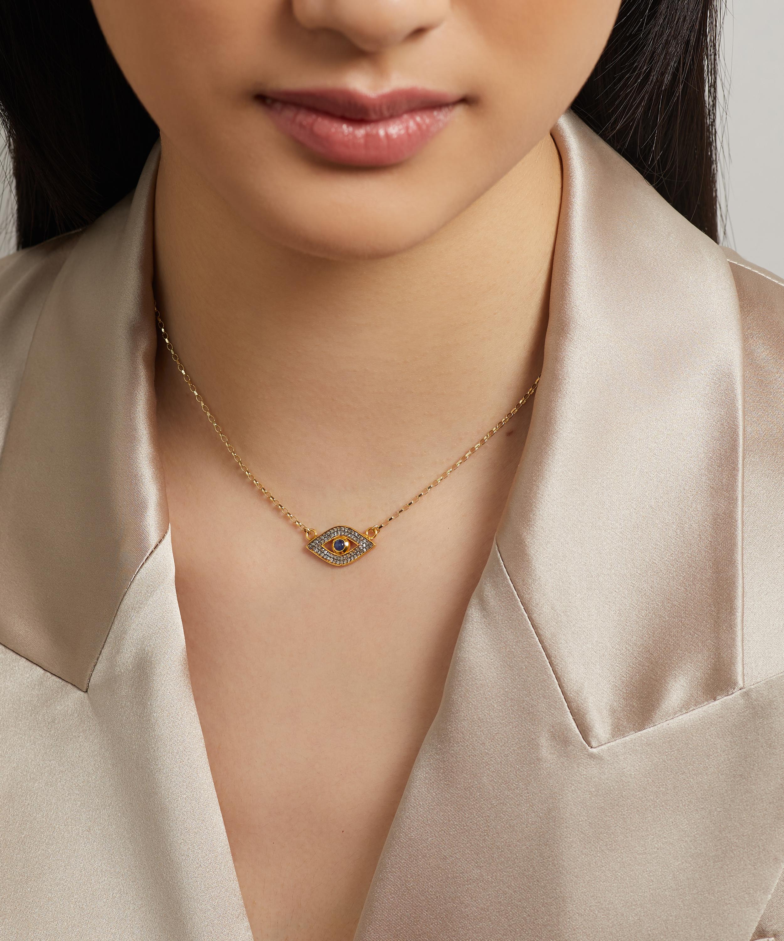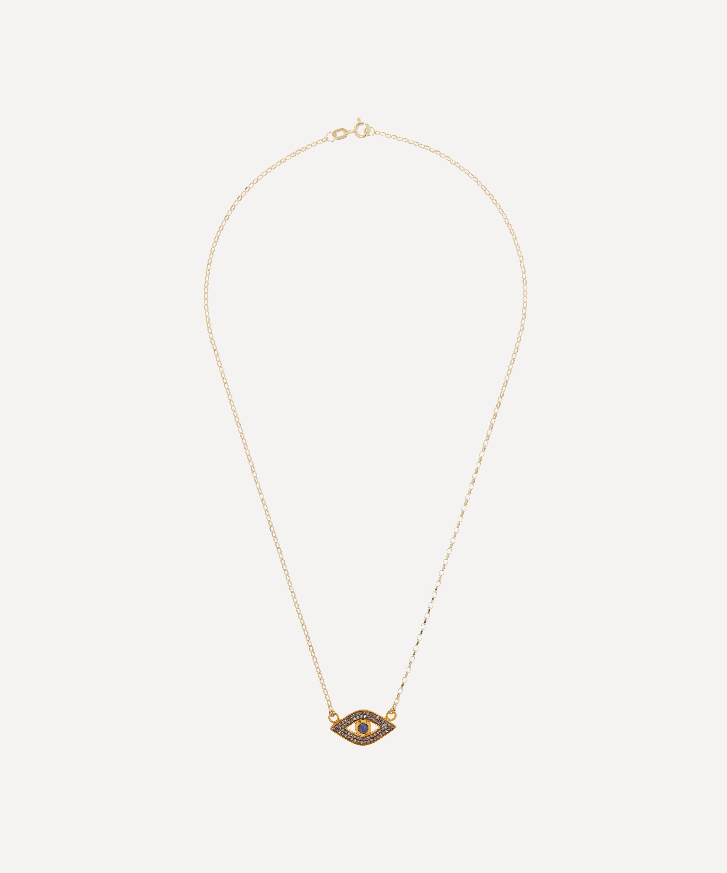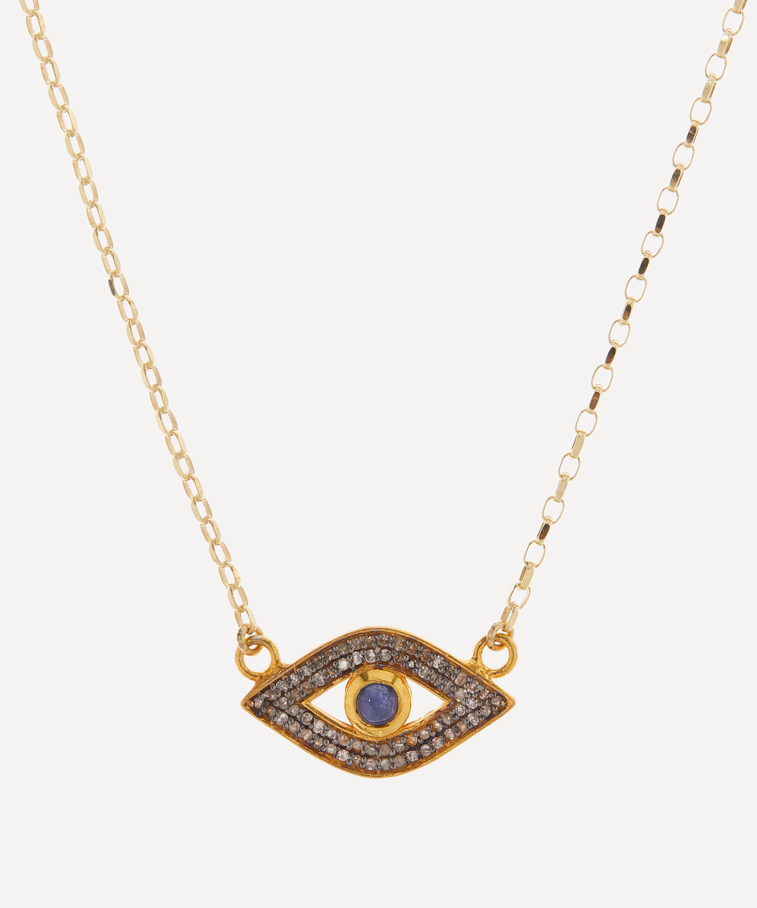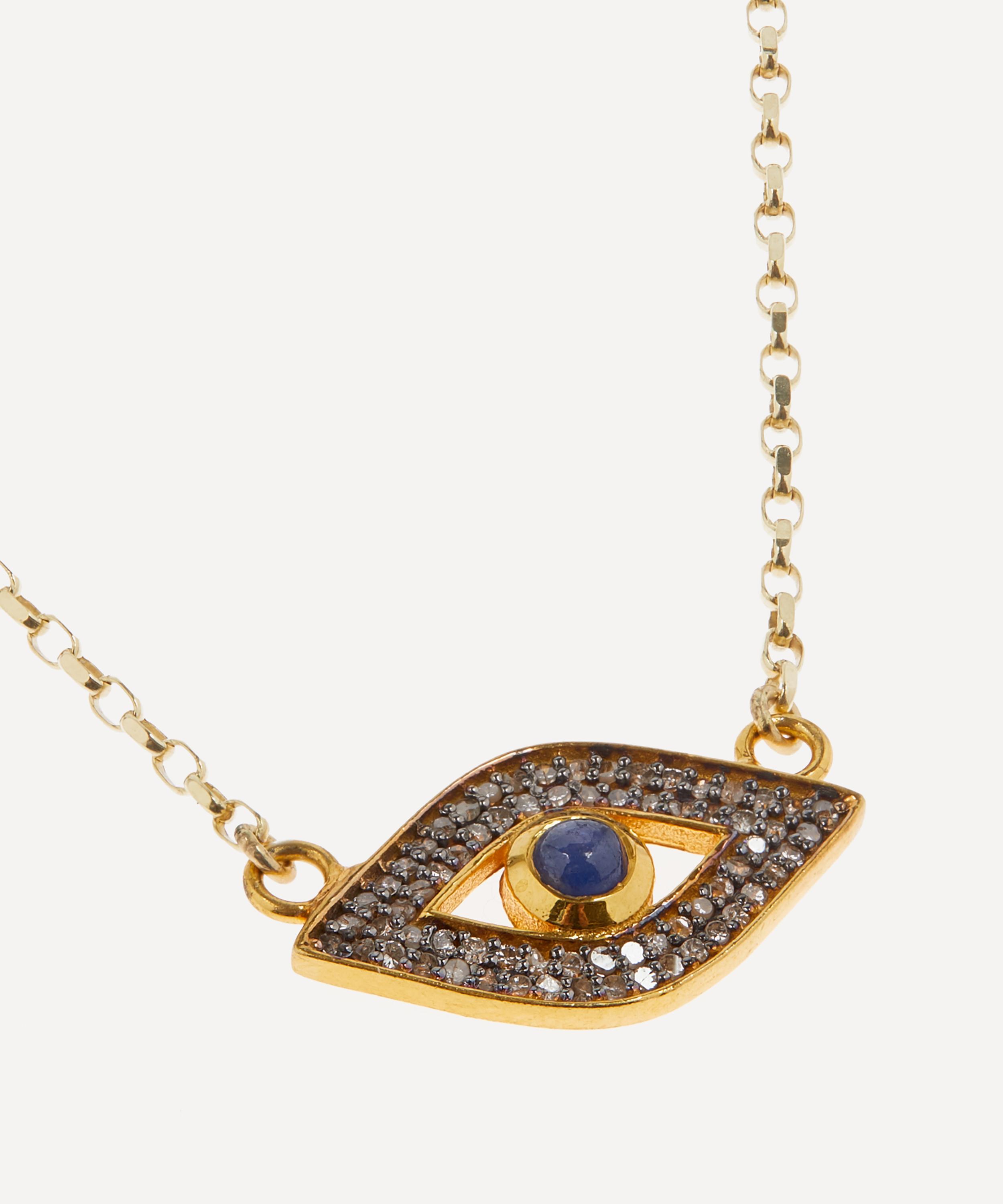 9ct Gold Pavé Diamond and Sapphire Evil Eye Pendant Necklace