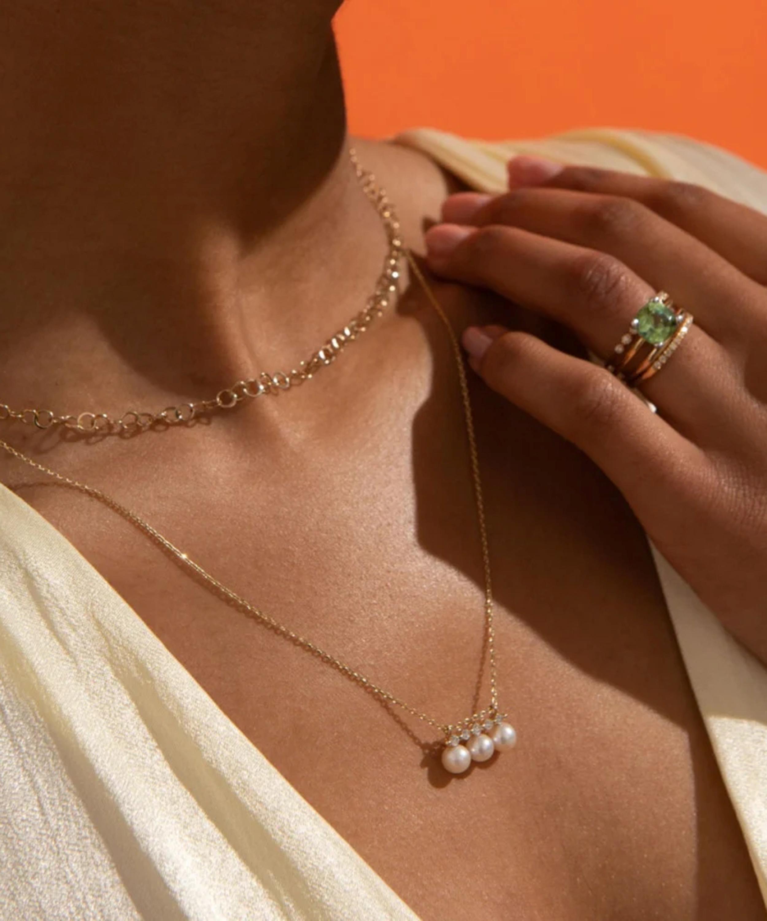 Dinny Hall is a legend of British jewellery design. A Liberty London favourite since her Central Saint Martins graduate collection in 1984, the designer has been developing an elegant, inventive and exquisitely understated aesthetic ever since. Working out of a bustling studio in Notting Hill, the designer – who is involved in each piece, from sketch to store – uses genuine gemstones and the highest quality gold and silver in her jewellery. Informed by an eclectic array of influences – from 20th century furniture design to the domes of Russian orthodox churches – Dinny Hall’s jewellery is a wonderfully vibrant part of the contemporary scene.
