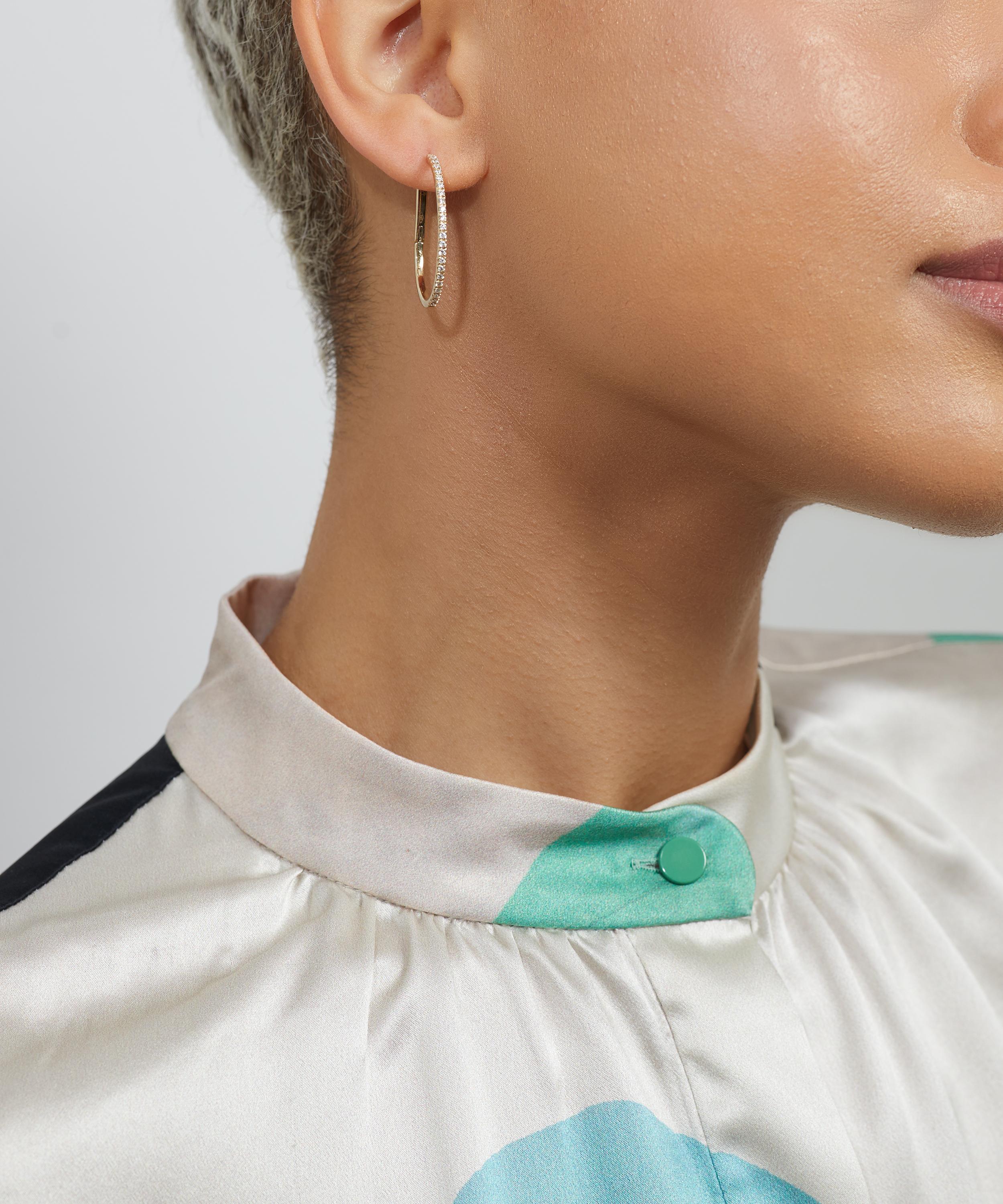 This beautiful pair feature slim, high-polished hoops adorned with round, brilliant cut lab-grown diamonds. Perfect for special occasions or as an anniversary gift.