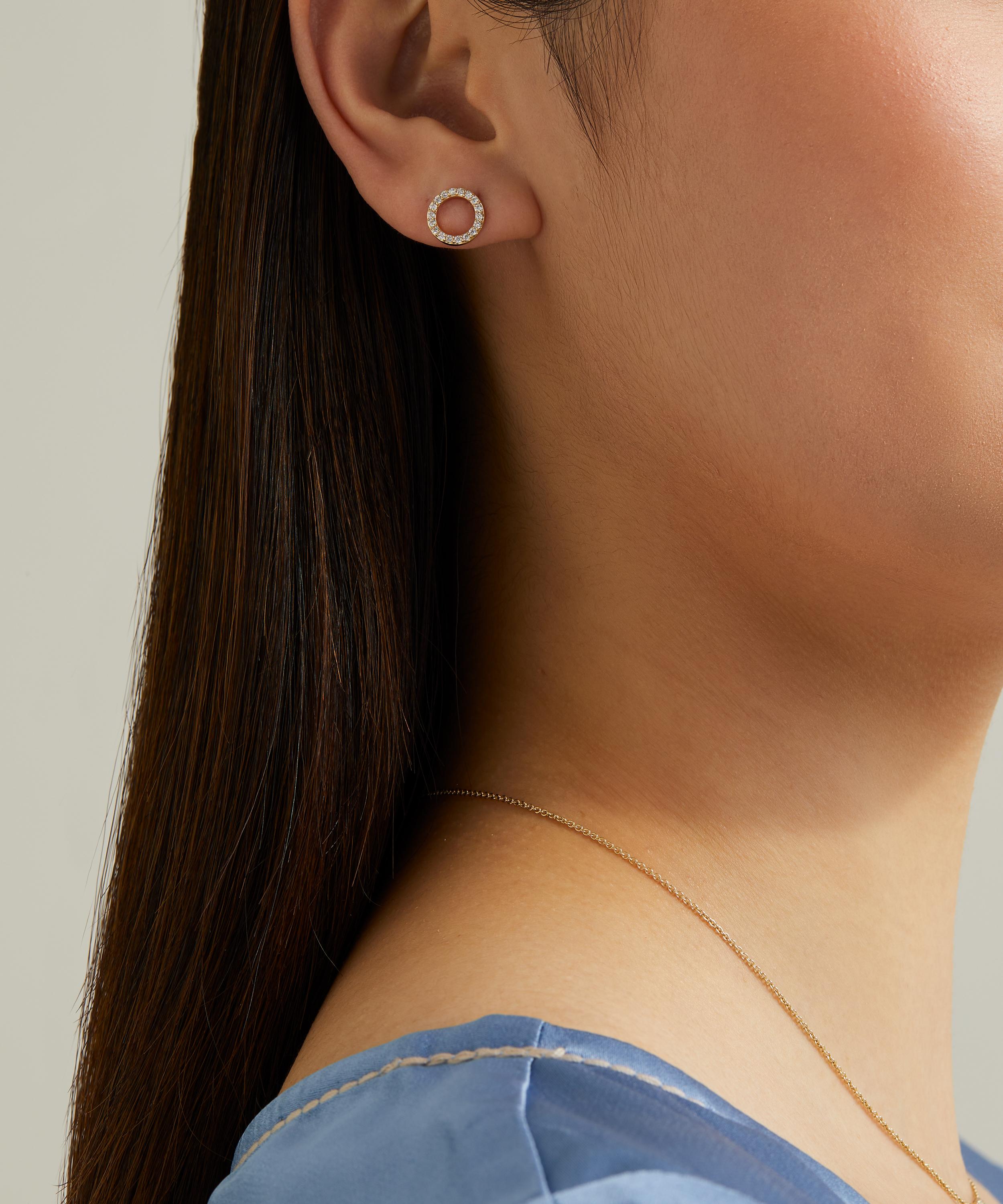 Effortlessly elevate everyday outfits or occasion looks with the elegant, demure sparkle emanating from Liberty’s Rainbow Diamond stud earrings. Crafted in Italy from 9ct gold, each earring features a diamond encrusted circle, finished with a classic post and butterfly fastening. Subtle and versatile, they can be styled both solo, or stacked with other studs, hoops and drops.