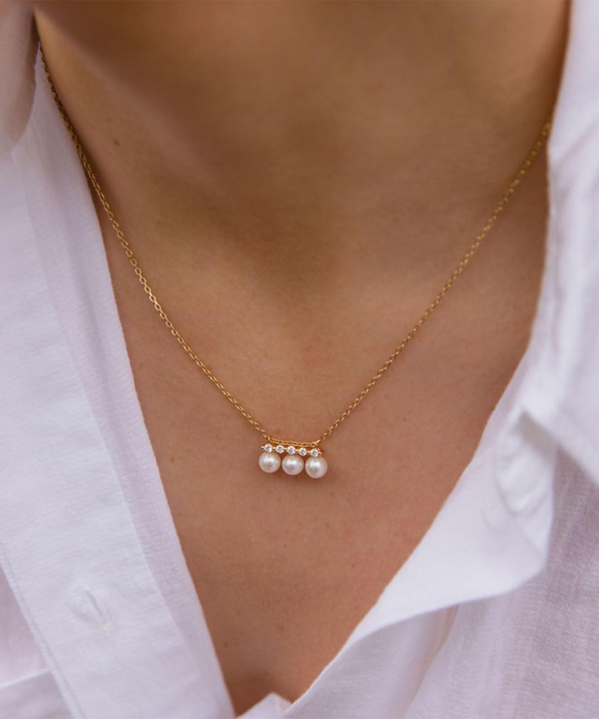 An elegant addition to Dinny Hall's Shuga collection, this triple pearl and five diamond pendant necklace offers a contemporary take on classic pearl jewellery.