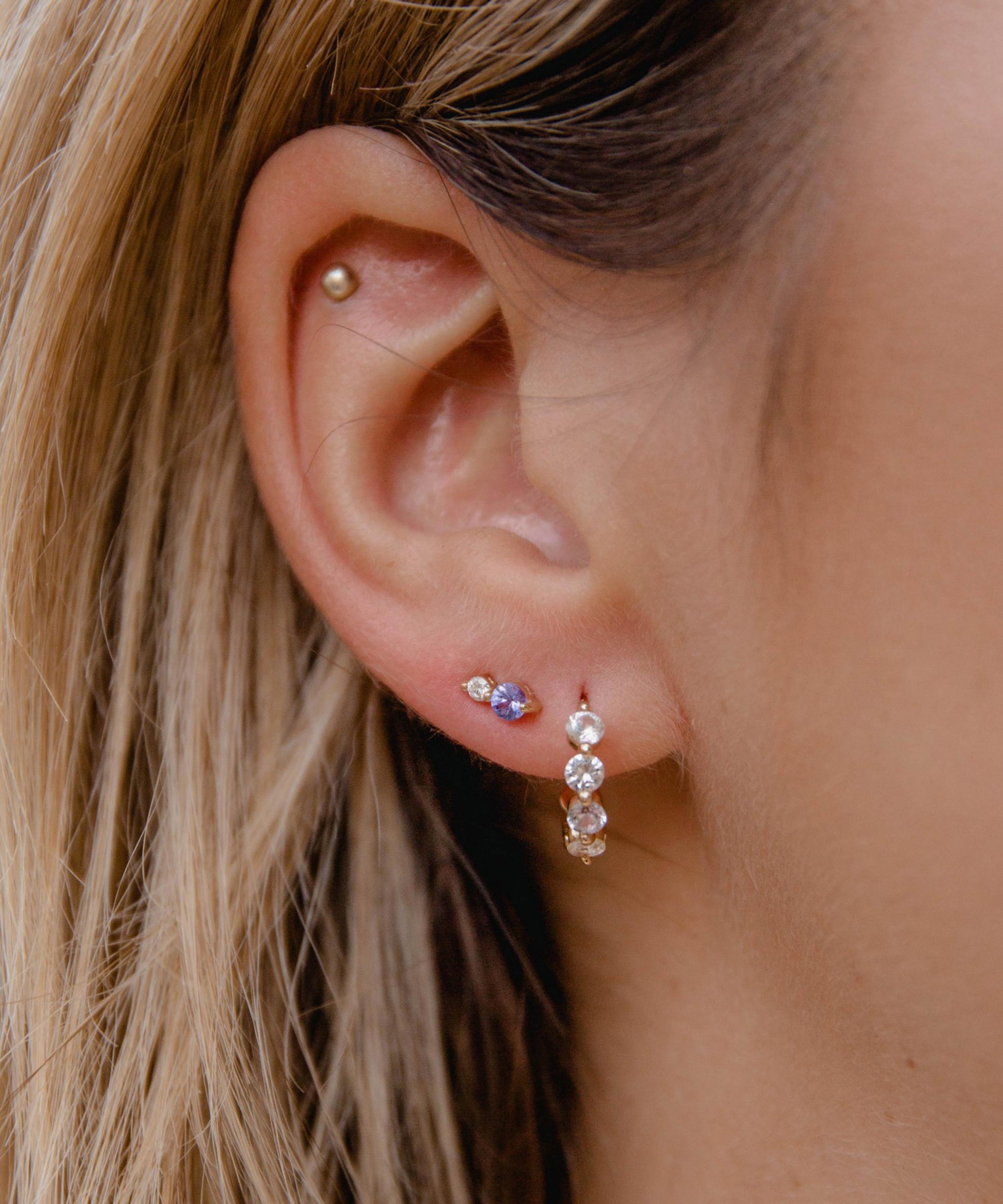 Bring a touch of sparkle to your everyday look with the Shuga white diamond huggie hoop earrings from Dinny Hall.