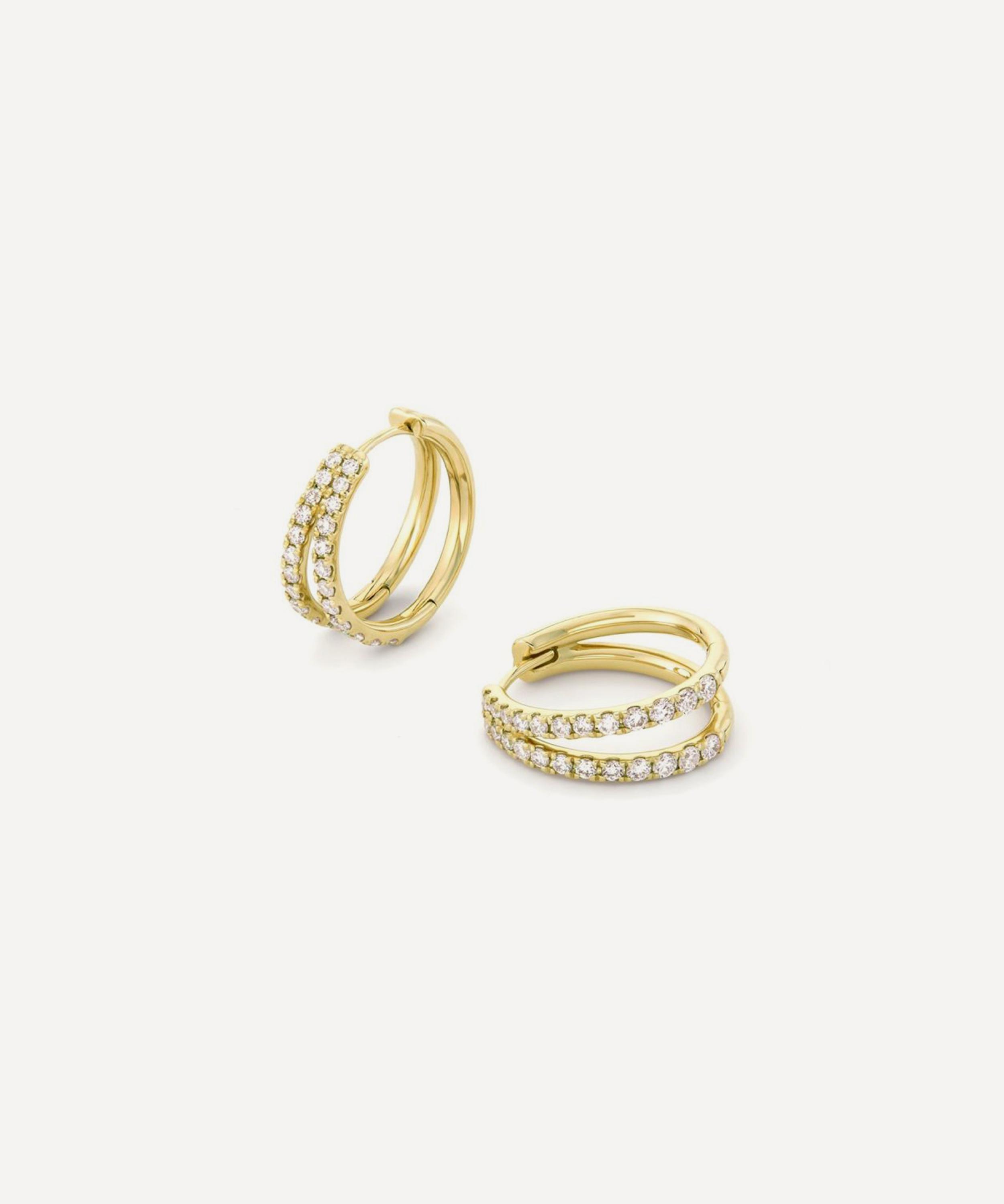 Rendered in solid 9ct gold, each earring features a double hoop silhouette embellished with sparkling diamonds down the front. Boasting a jewellery box essential, make them part of your accessory rotation for effortless daily dressing.