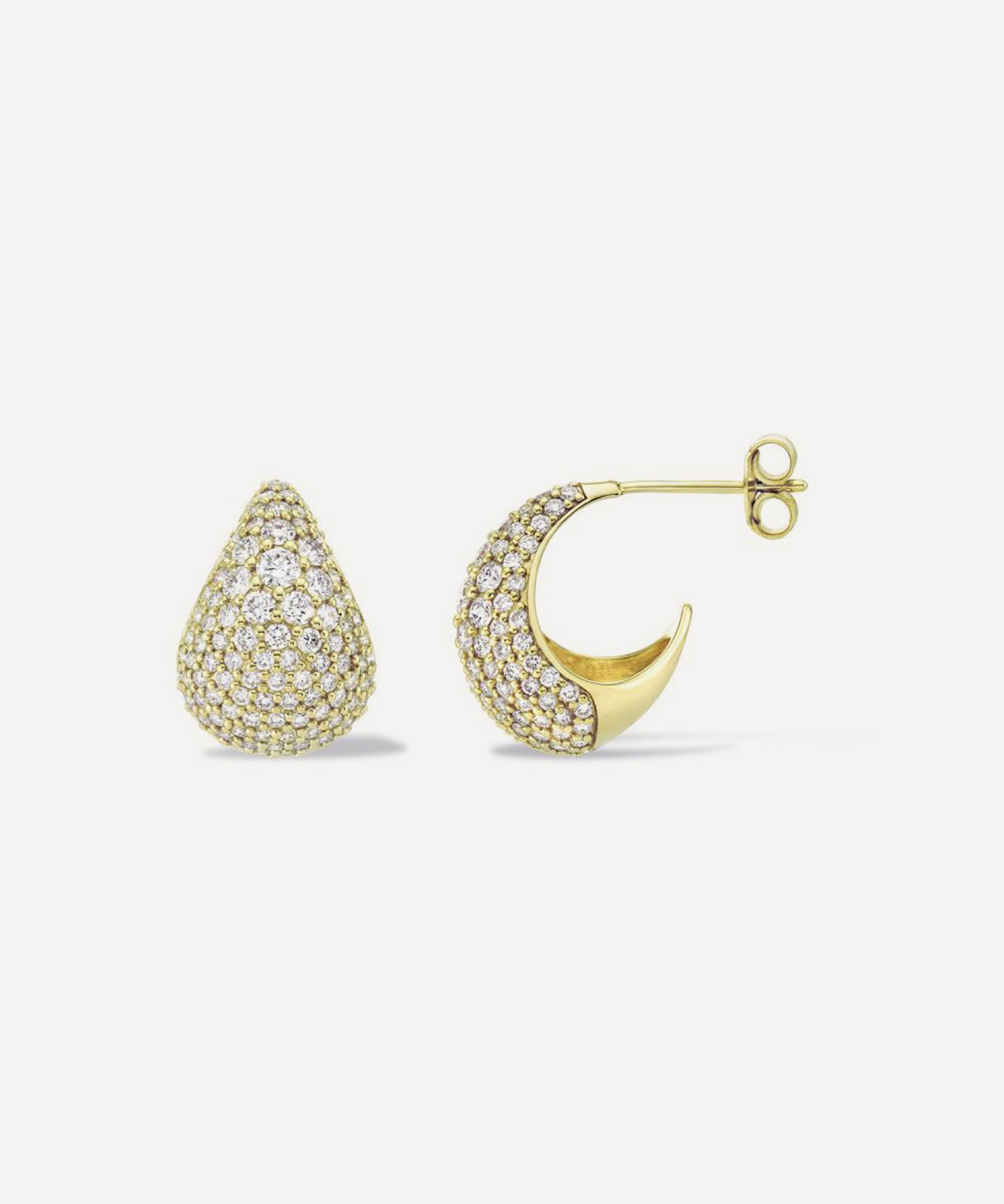 Rendered in solid 9ct gold, each earring features a sculptural, domed silhouette embellished with sparkling pave diamonds. Boasting a jewellery box essential, make them part of your accessory rotation for effortless daily dressing.