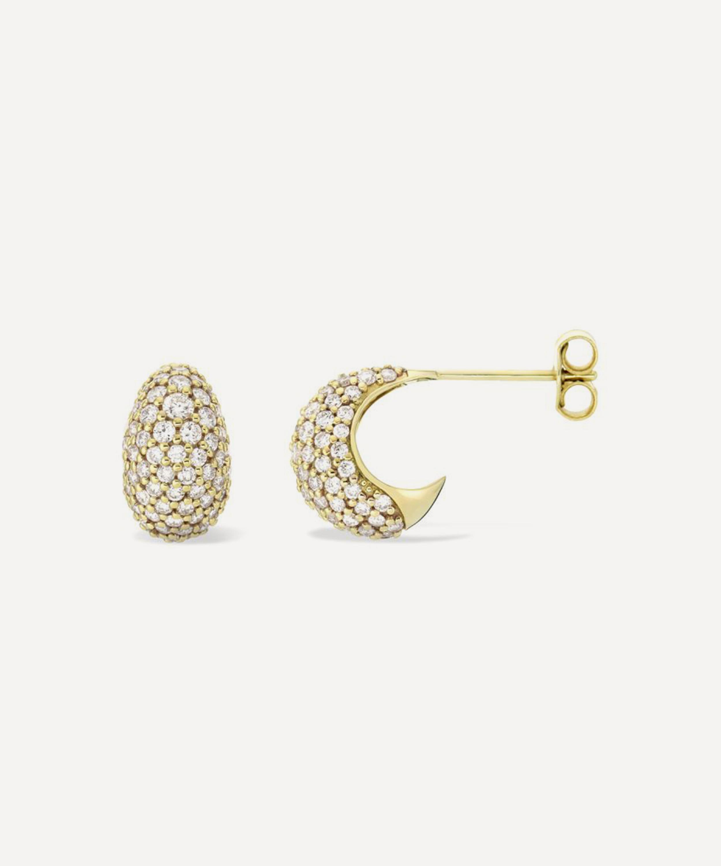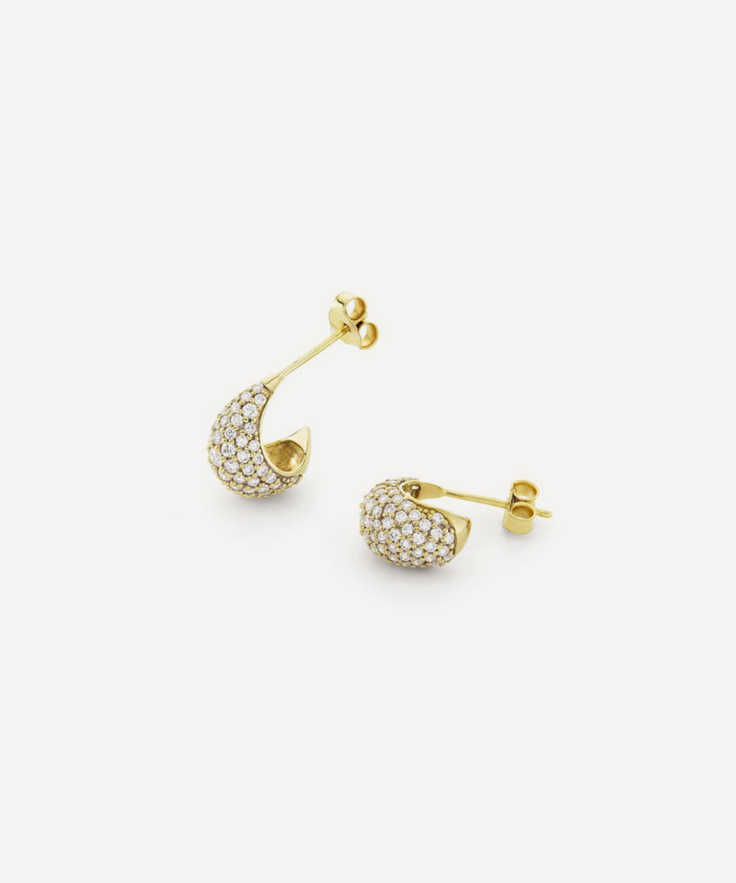 Rendered in solid 9ct gold, each earring features a sculptural, domed silhouette embellished with sparkling pave diamonds. Boasting a jewellery box essential, make them part of your accessory rotation for effortless daily dressing.